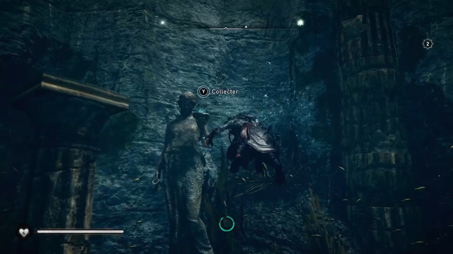 La clé secrète de Cassivellaunos se trouve sur le chemin de la sortie après que vous avez trouvé la tombe. Lorsque vous atteindrez une tyrolienne, descendez au fond de la cascade en dessous pour trouver la clé secrète.