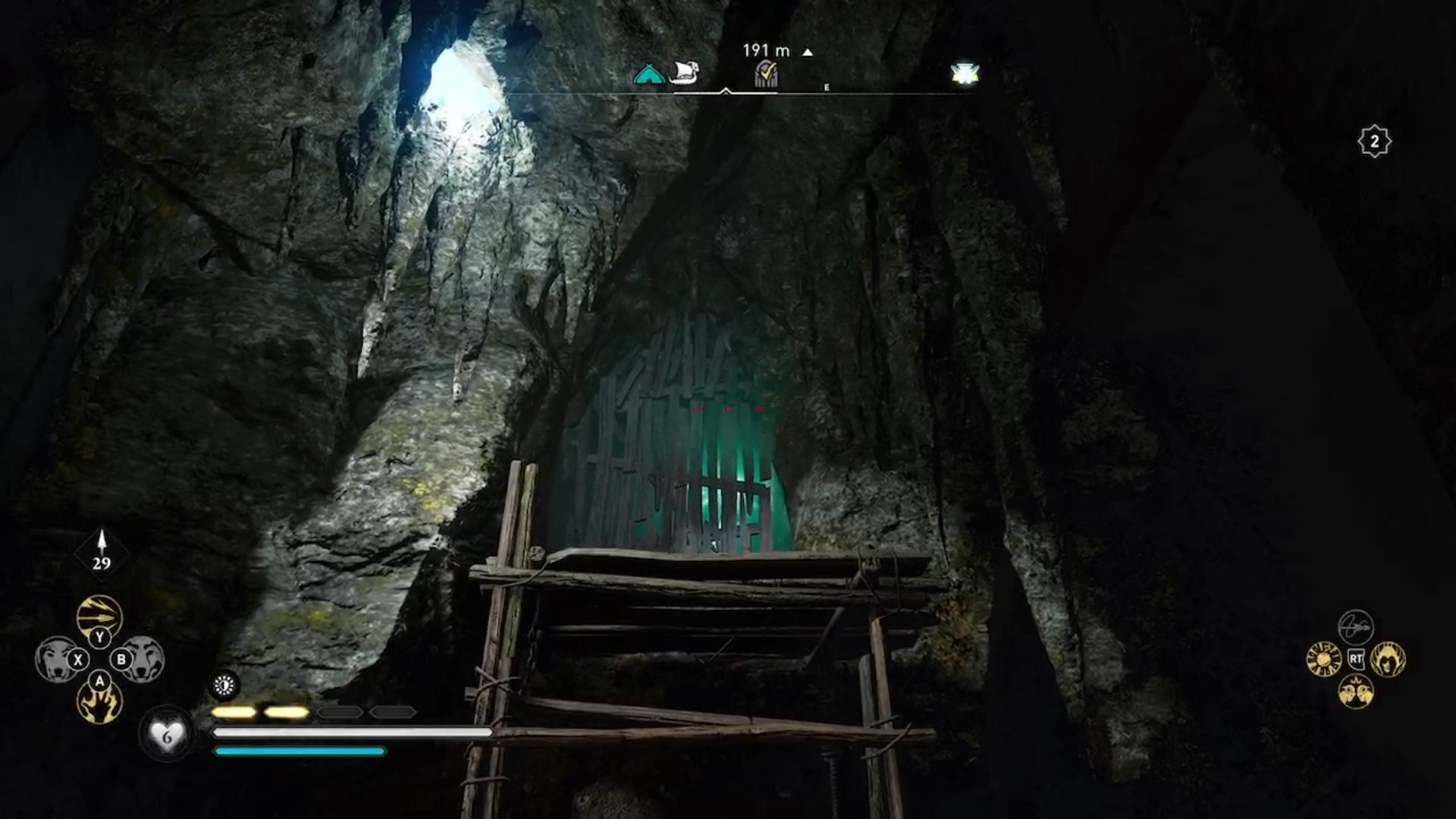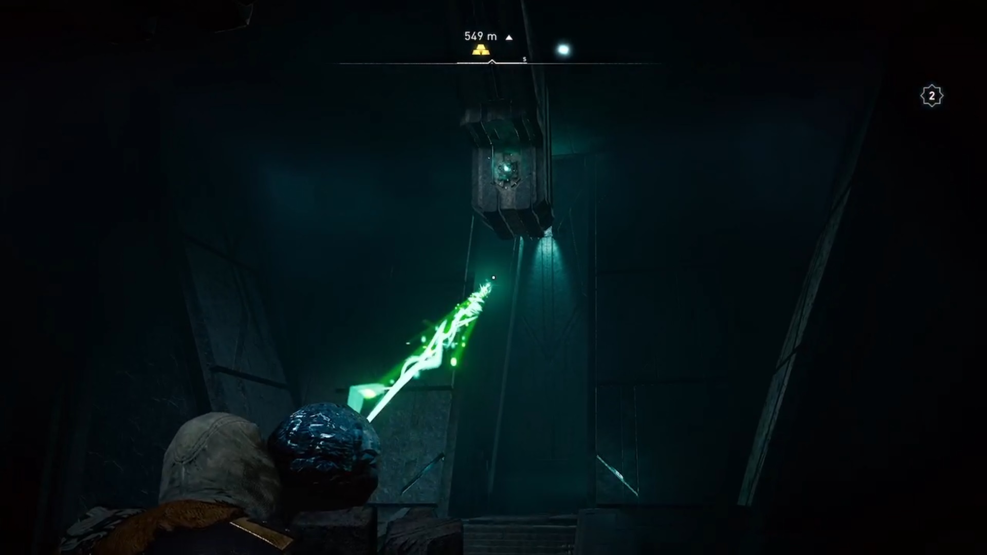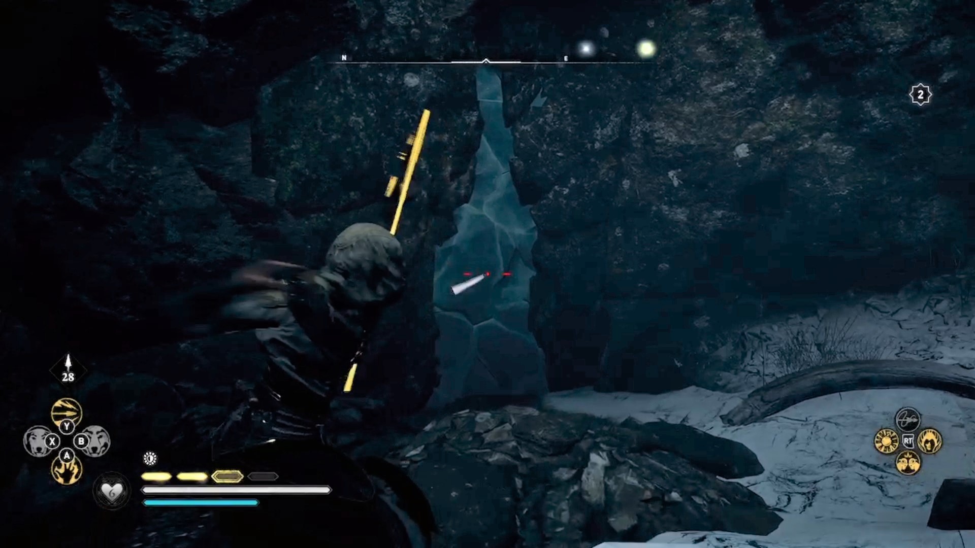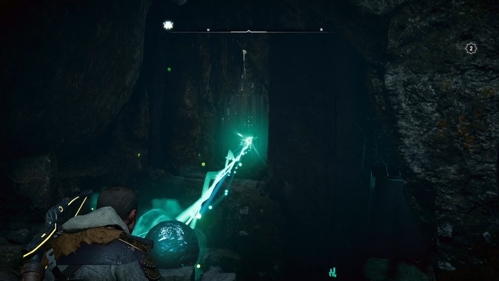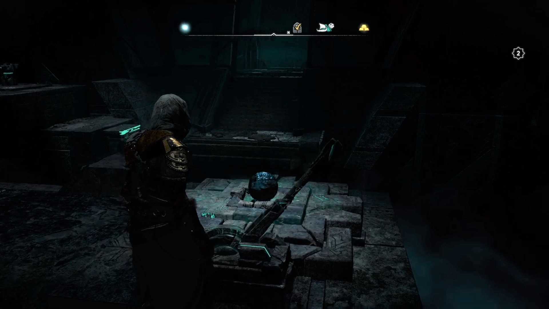 Dans la troisième salle, détruisez les planches de bois et guidez la lumière vers l’interrupteur en déplaçant les obstacles. Eivor tombe à l’étage inférieur où vous devez guider deux faisceaux de lumières vers deux interrupteurs pour déverrouiller une orbe. Le premier faisceau de lumière est caché derrière un mur. Tirez sur les jarres pour faire jaillir la lumière. Suivez-la et déplacez les obstacles l’empêchant d’avancer. Le deuxième faisceau est caché au-dessus d’un échafaudage. Conduisez les lumières vers les interrupteurs pour déverrouiller l’orbe. Avec l’orbe en main, déverrouiller la troisième et dernière porte.