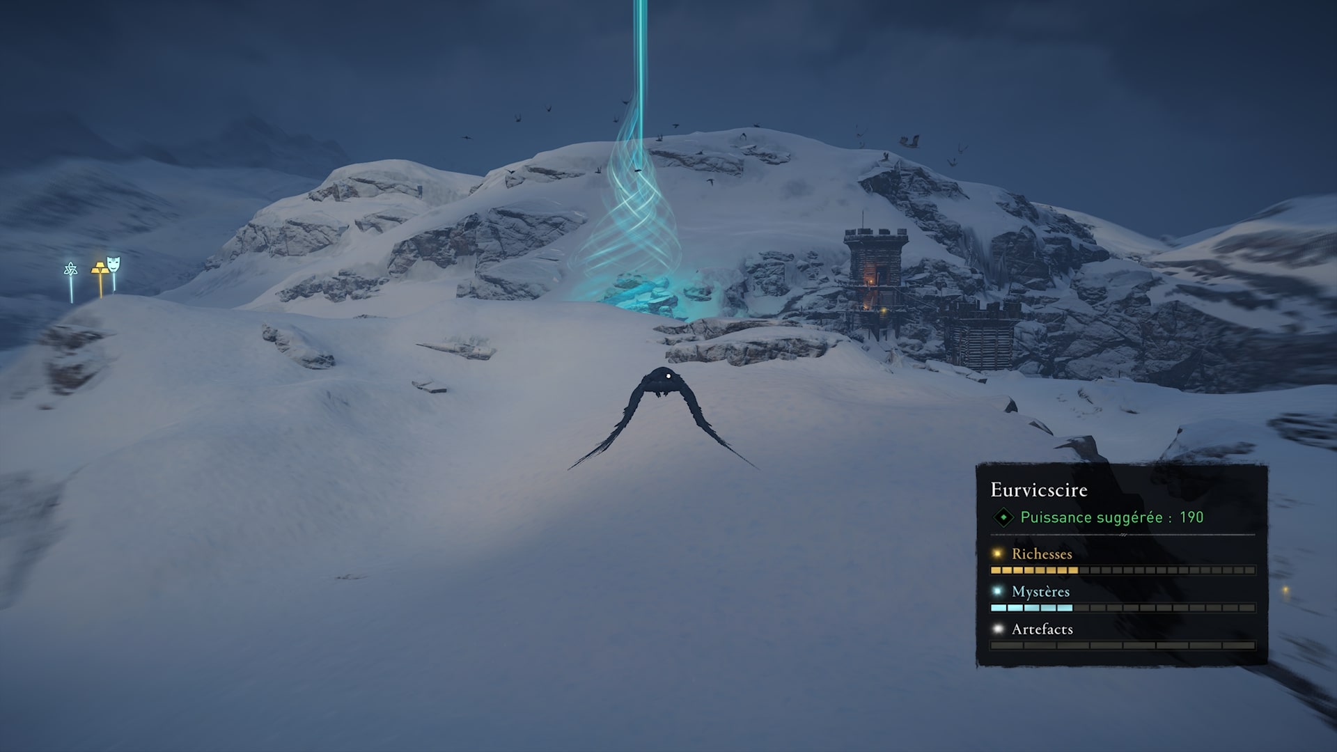 Essaye d’y revenir grâce à une sauvegarde précédente (j’ai fait ça quand je ne pouvais plus appeler mon corbeau peut importe l’endroit où je me trouvais) ou essaye de te « téleporter » sur un des endroits verts de la carte (les oiseaux verts).