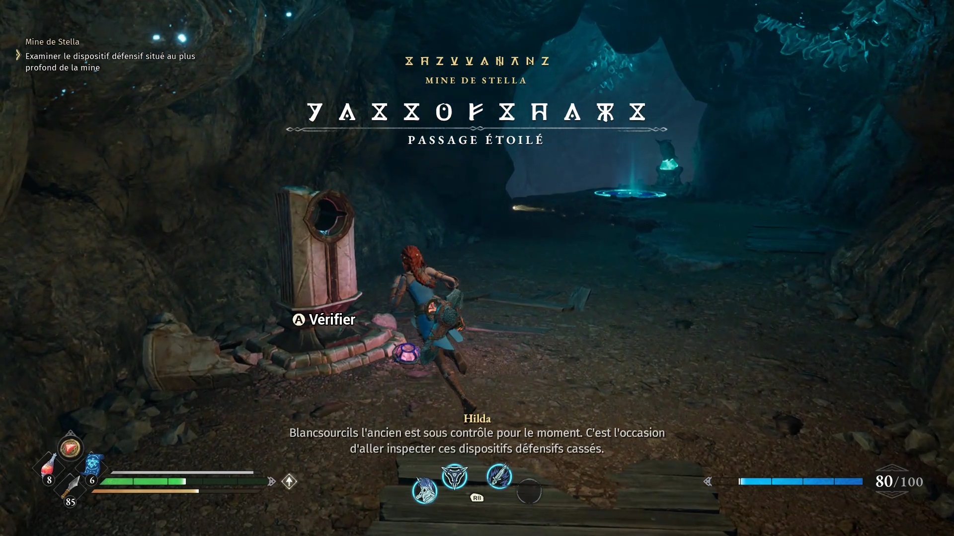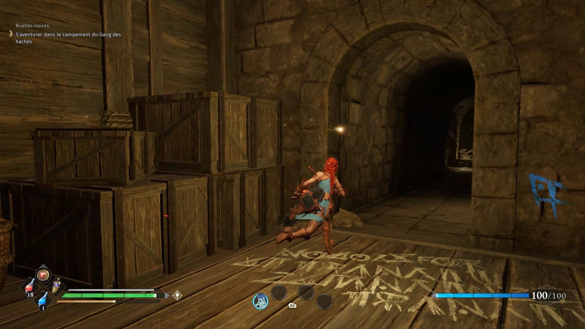 Meet Shaye at the mine entrance to go inside. Take care to activate the checkpoint before. In the mine, the miners will not harm you, do not attack them. At the first intersection, take the right path. Shaye leads the way. Keep moving forward to find a minecart. If you look to his right a barricade is up. Destroy the barricade and sink inside the passage to avoid a confrontation. Be careful, the path is strewn with traps, watch where you are walking. Armadillo-like enemies swoop down on you. Let them bump into the wall to attack and destroy them faster. Continue to find a lever. Activate it to open the door.