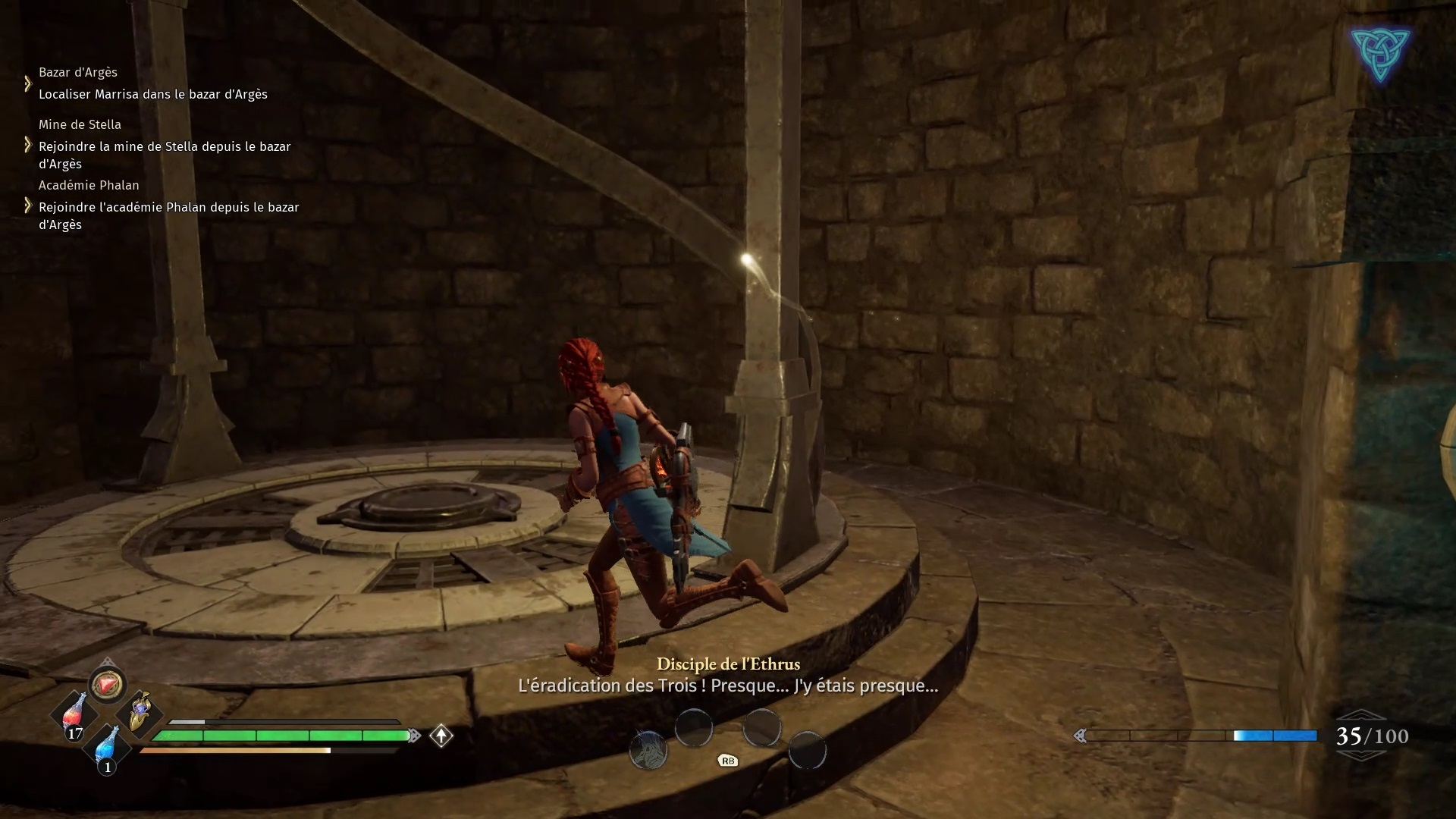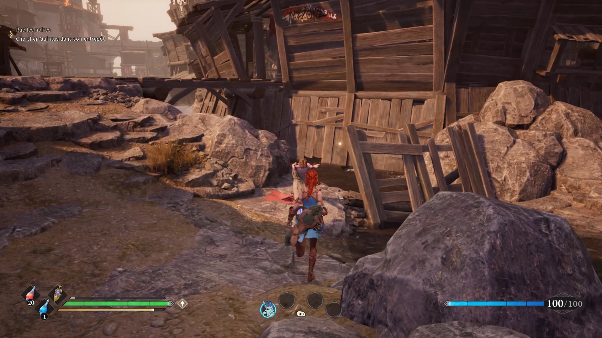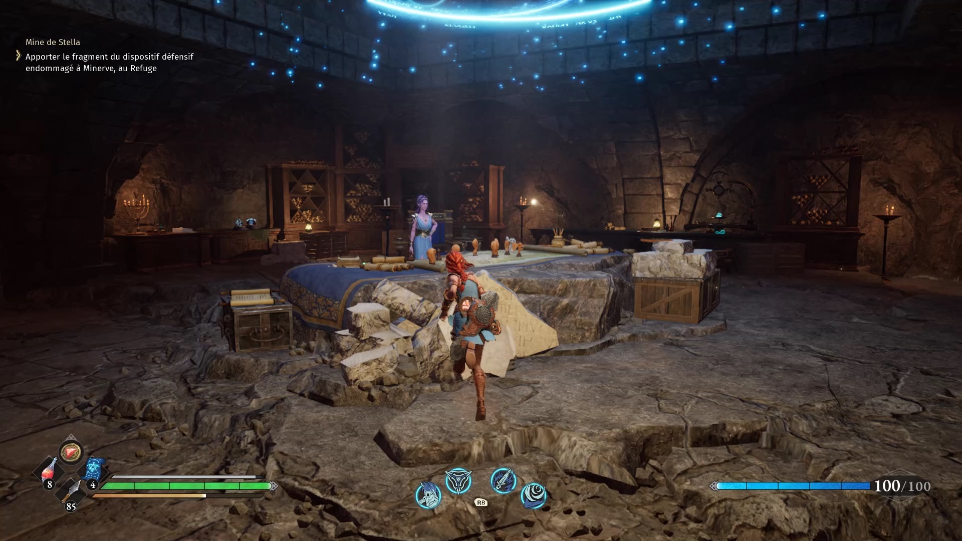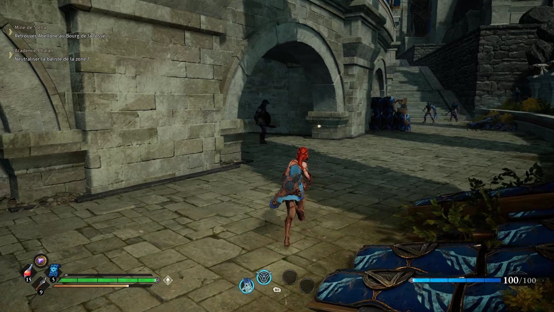 Indicate your intentions to Abellone and descend with the elevator to his right. Clear the square to take a second elevator straight ahead. At the foot of the mine, go under a structure to meet a mysterious character. Take care, it attacks you, defend yourself. The main threats will come from his ranged weapons. Dodge his attacks then attack him to knock him out. After the fight, talk to him to reveal his identity.