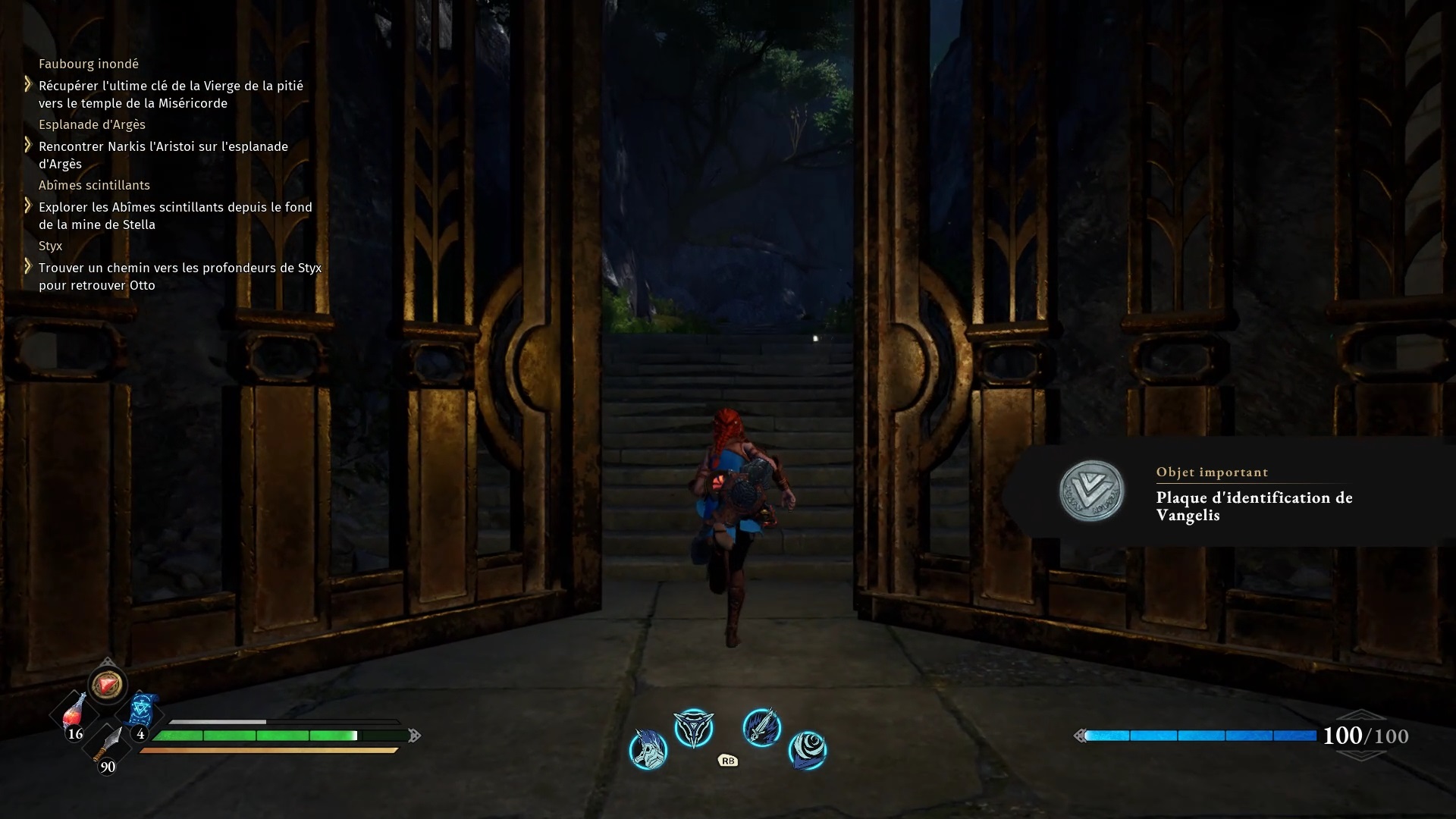 Leave the place then return so that the door of the aegis opens. Fight the invaders. A soldier loses his life in battle, excavate his remains to get the last key. Climb a wall to reach the Temple of Mercy. Place the stones on the statues to unlock the way to the temple. Enter the temple to be confronted with the boss.