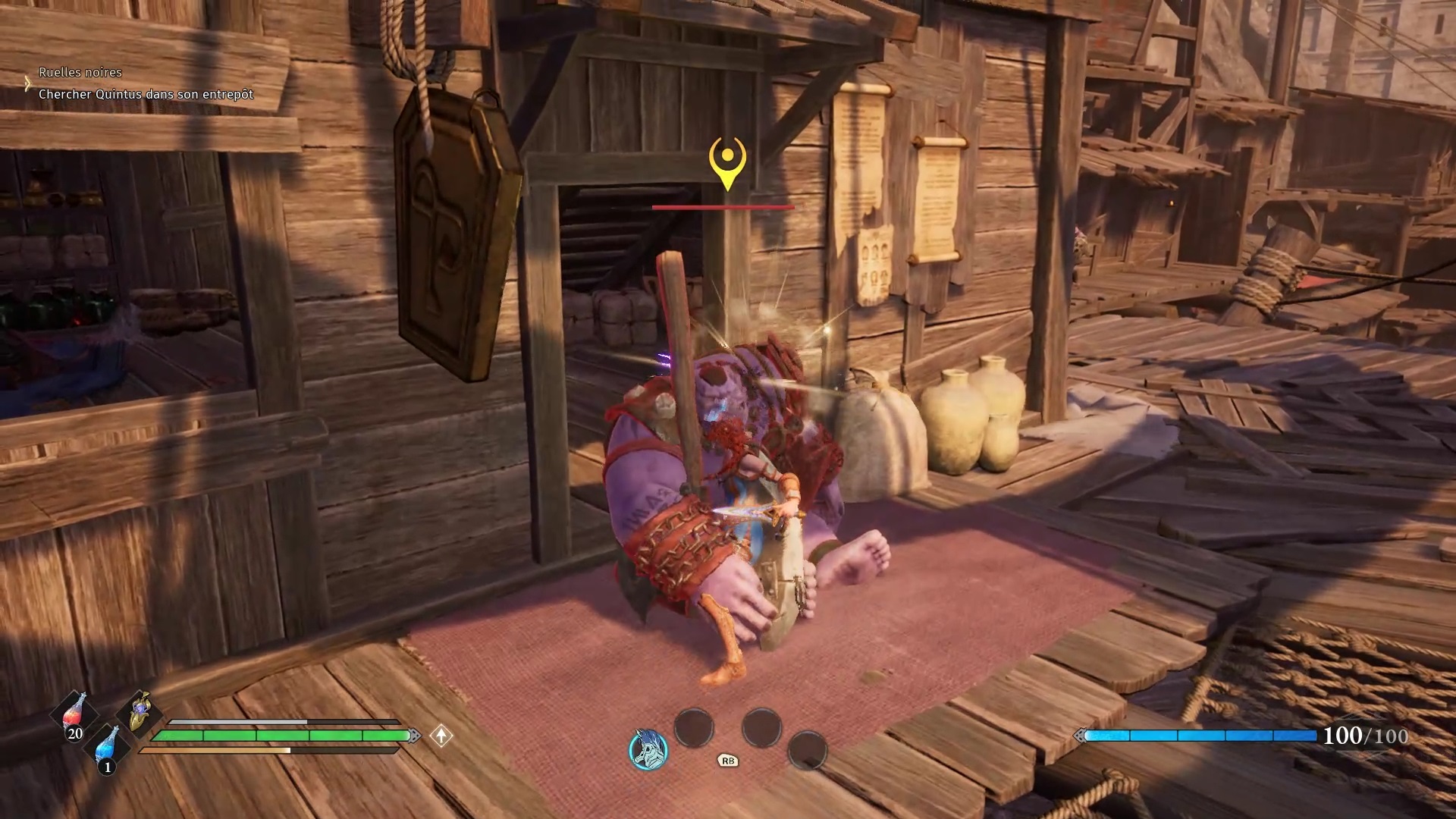 Advance in the building of fortune to find marks registered on the ground. Follow them to find Quintus’ location at the top of the structure. Once Quintus is freed, rush into his warehouse. Unblock the passage using your weapons and activate the checkpoint straight ahead.