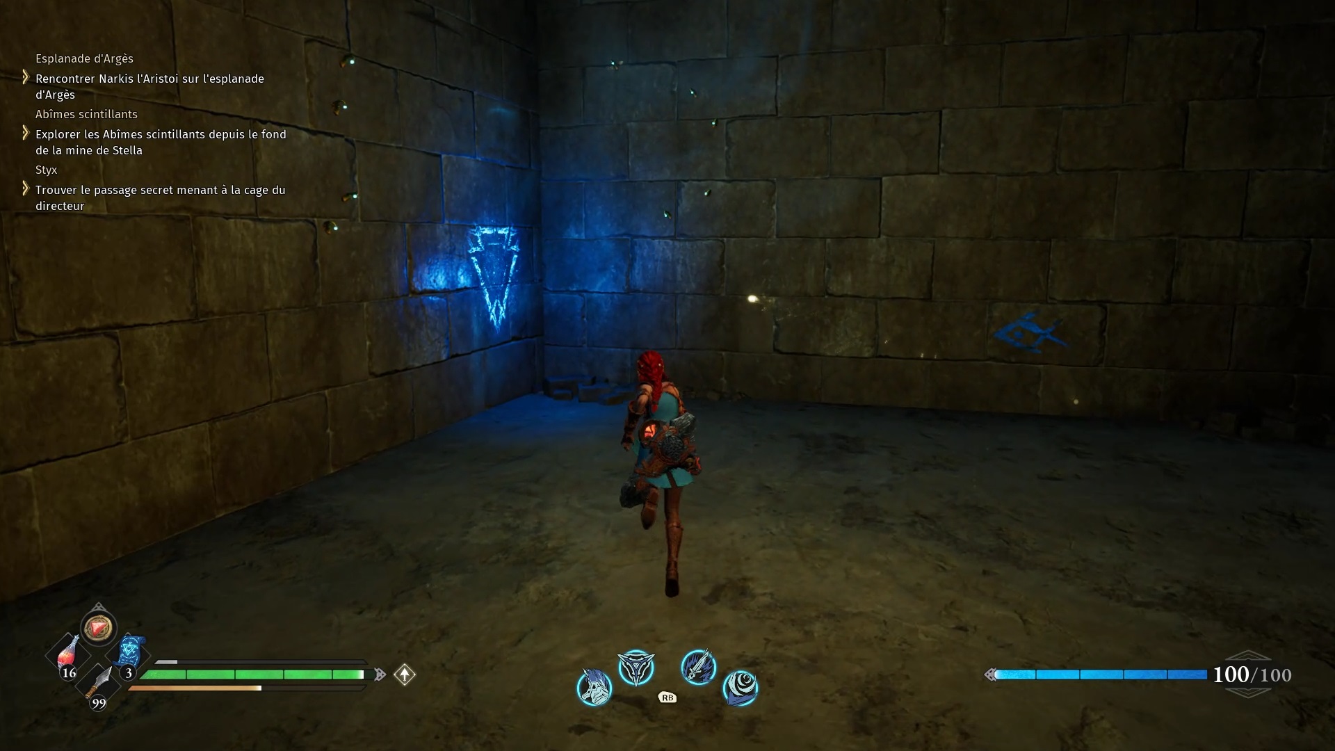 The area unlocks. Enter the cave to find a passage. Climb along a wall to exit and find the city of Aphes. Activate a new checkpoint and reach the city through the sewers. Once in the city activate an echo. Proceed to find a mysterious Strong Man.