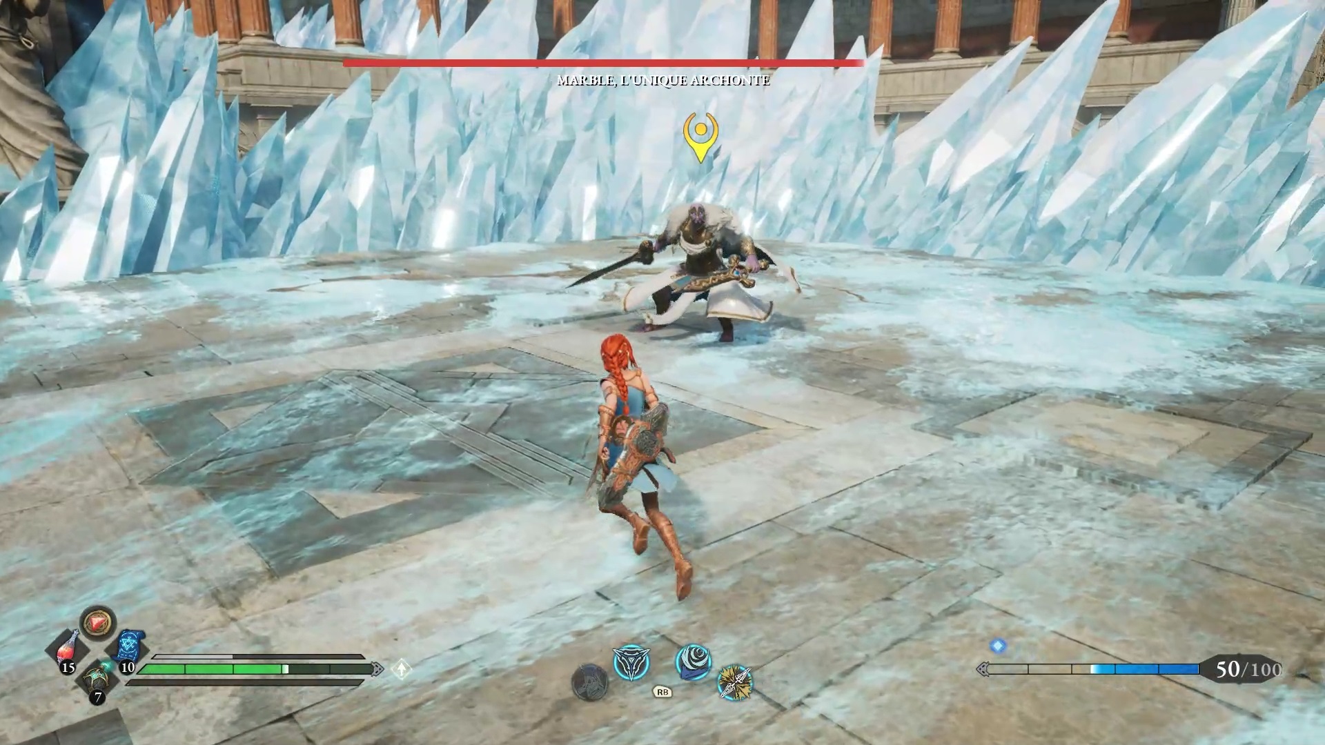 Talk to Minerva to start the challenge. Waves of enemies follow one another all along the climb. Minerva lends you a hand, but you’ll have to do three-quarters of the work.