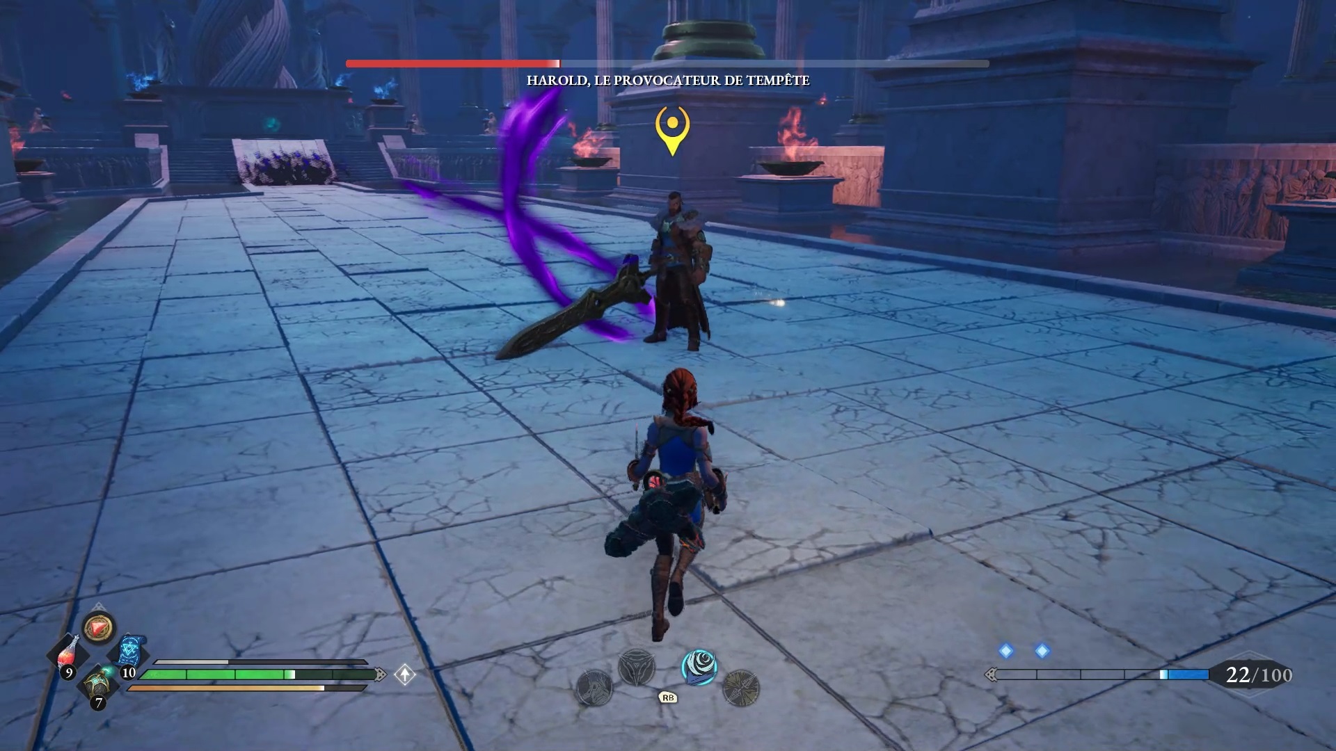 As mentioned before, we recommend the use of daggers for this fight. Velocity is an advantage against Harold who is rather slow. Aim for his back to try and dodge most of his attacks. Use the blade dance which is an ability that recharges very quickly to cause great damage. To temporize the fight, use the storm breaker ability. Juggle between dodges and attacks to quickly end the fight.