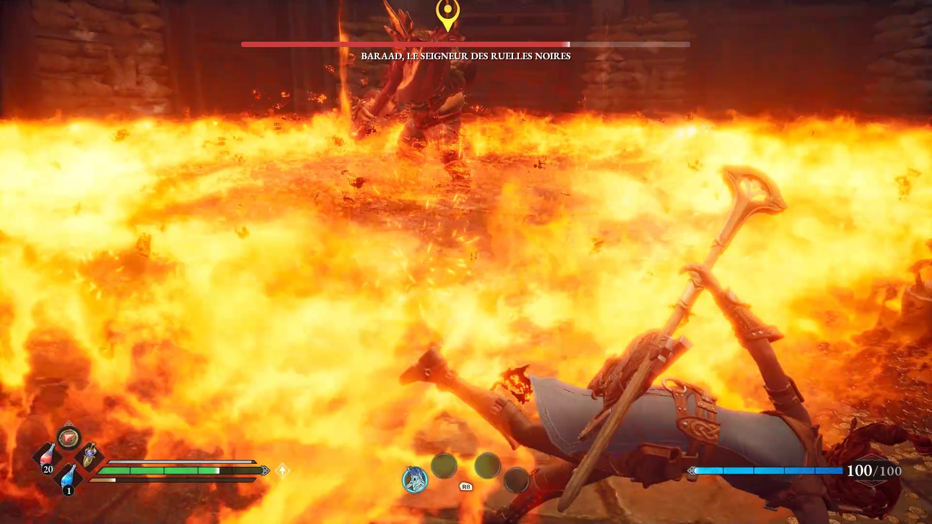 Baraad is the second boss of Asterigos Curse Of The Stars. He is far more formidable than any enemy you have encountered before. Armed with a huge axe, Barad strikes hard. Use your dodges before he attacks you to avoid taking damage. Cause him any damage as soon as he finishes his attacks. You can take a little distance to attack it with your staff and your fireballs. From a distance, Baraad retaliates with a charge that you must dodge to unleash a cloud of powder against the wall. Use your staff and fire ability to create a blast to knock Baraad out. Take this opportunity to smack him. Use sprint or dodge to avoid his fireballs in the second phase. In the event of an area attack, use the protection key to counter his attack.