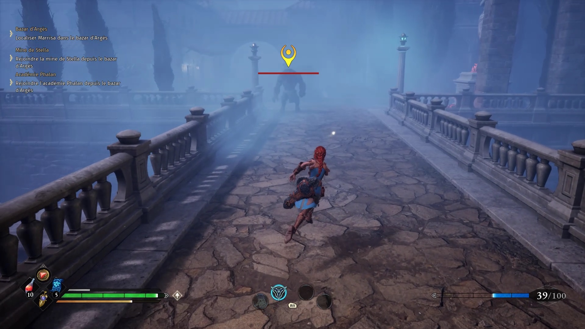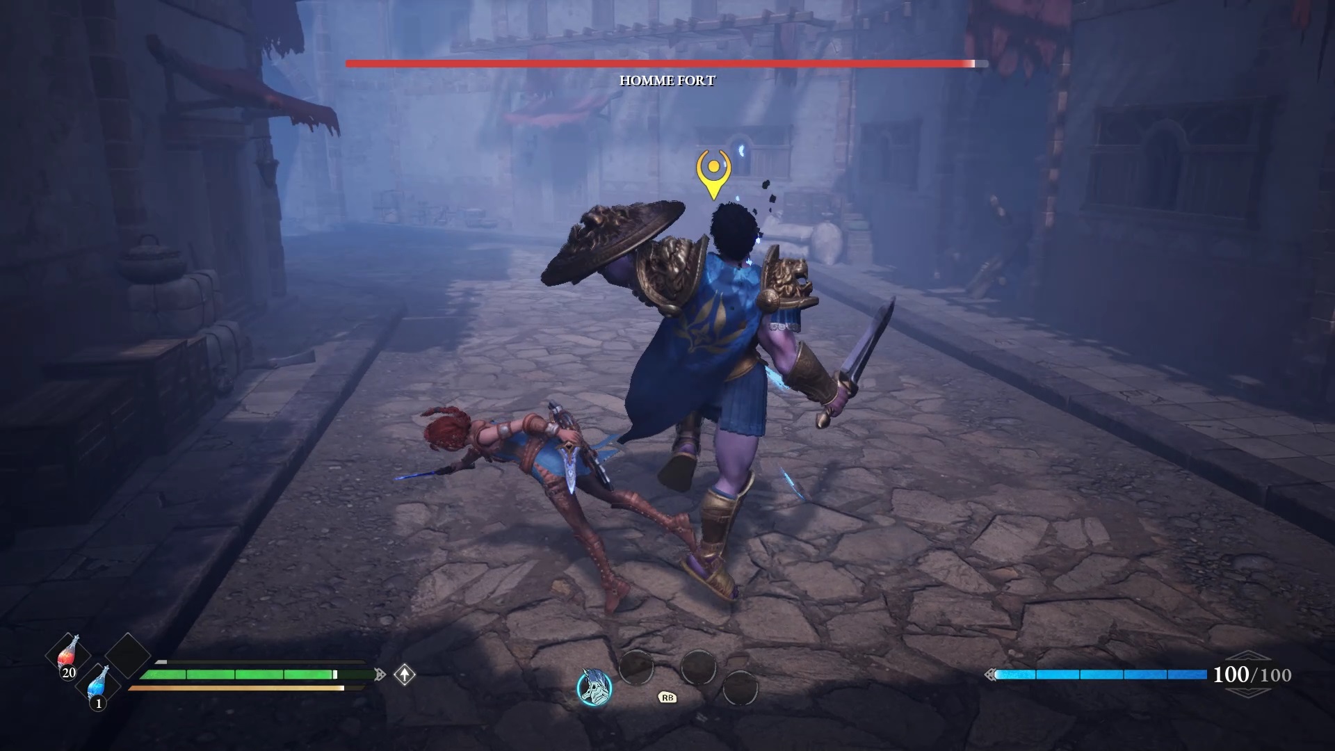 In the first part, Strong Man uses a sword and a shield against you. He usually performs a combo where you can immediately reply. Use your shield or your dodges to escape him. In the second part Strong Man sends you his shield to add some magic. You must dodge its magic attacks to avoid taking damage. In the third and final part, Strong Man wields a gigantic sword against you. His attacks are getting stronger. Prefer to use dodges to better escape. Hit him until the endgame. Strong Man uses lightning to render you unconscious. You regain consciousness in an HQ. Speak with Minerva the woman in front of the war table to choose your new mission.