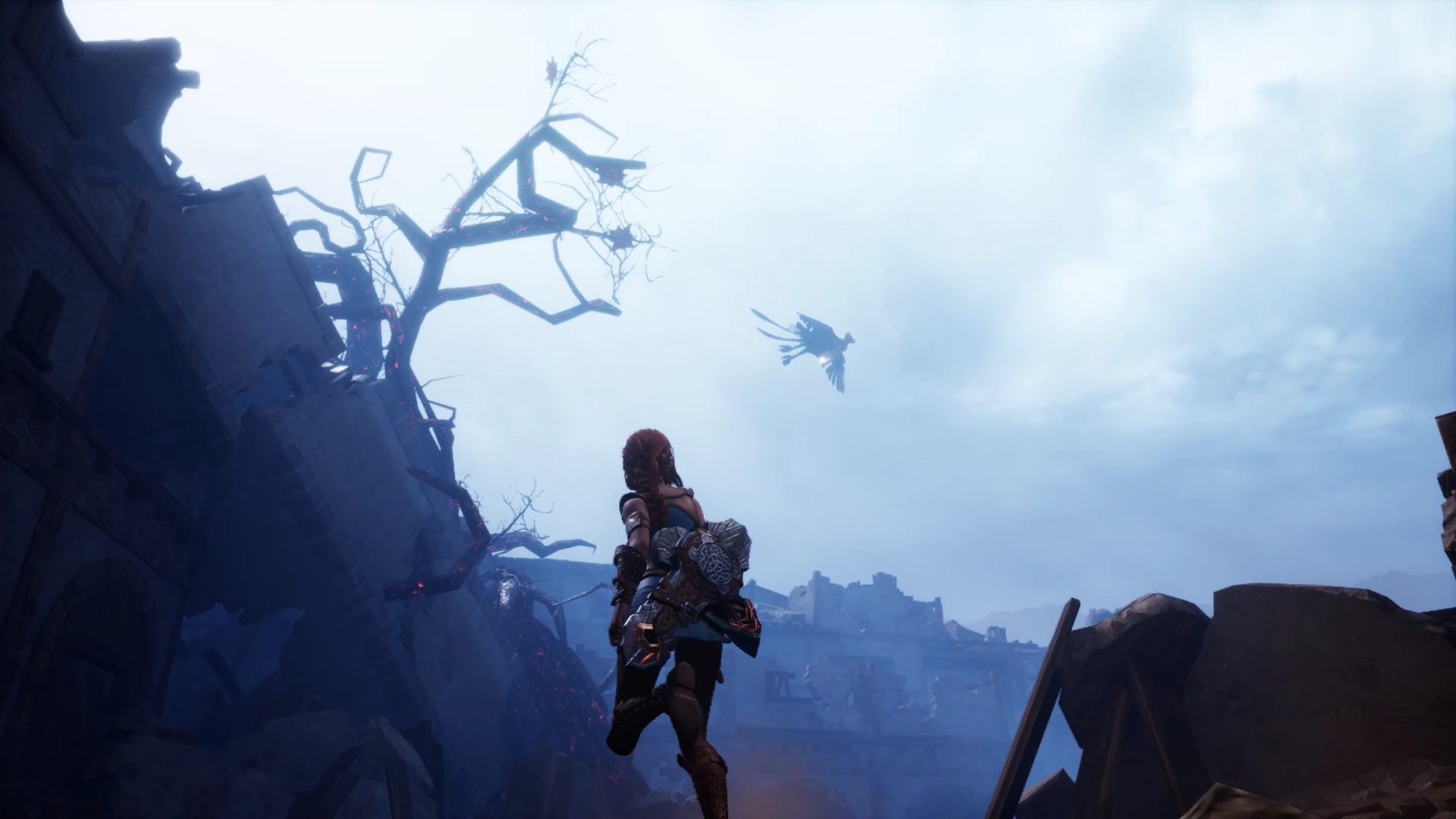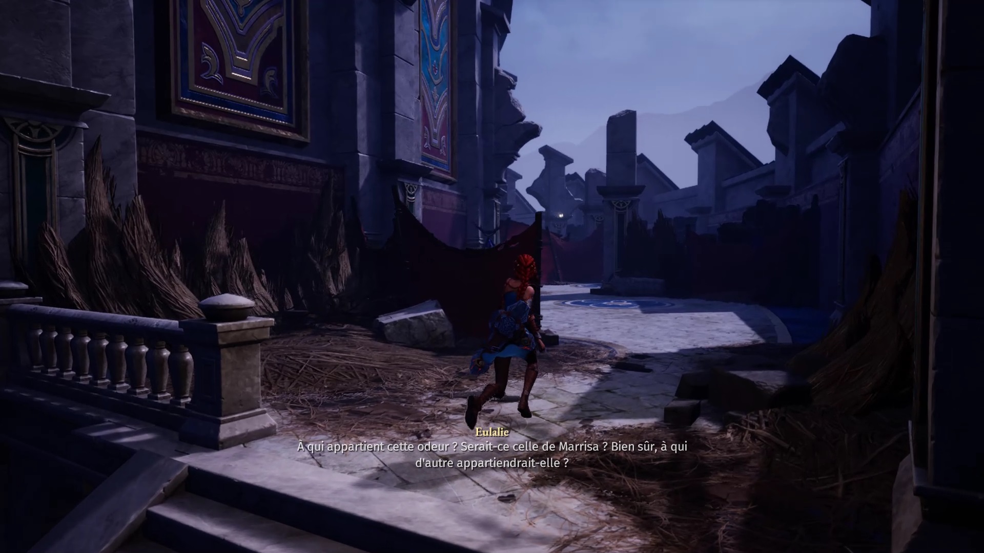 Get out and continue east. A threat is watching you from the sky. Move forward while protecting yourself from sharp feathers thanks to the shelters to reach a path to the east of the square. Watch out for the second ambush. Continue to reach the outer streets. Climb the stairs eliminating the enemies to find Marissa. Interact with the bubble of darkness in the lower right of the statue to release her.