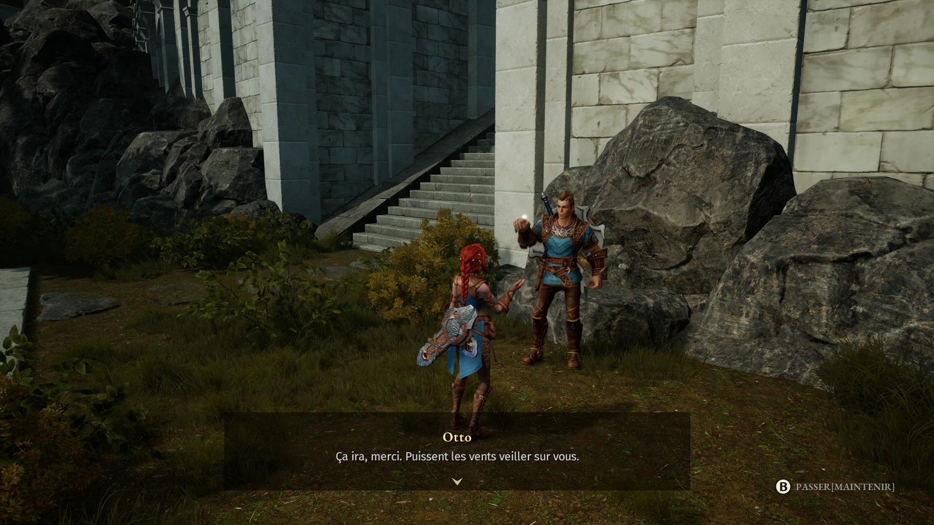 Now join the pond of the camp and get closer to the waterfall. A centurion is hiding behind a rock, go talk to him to find out the last position of his key. To find his key, go to the checkpoint at the entrance to the Outskirts. Take the left path this time. Descend into the Gorge aux Dracovignes. On site, climb to the heights to find the key on one of the rocks. Drop down and continue east.