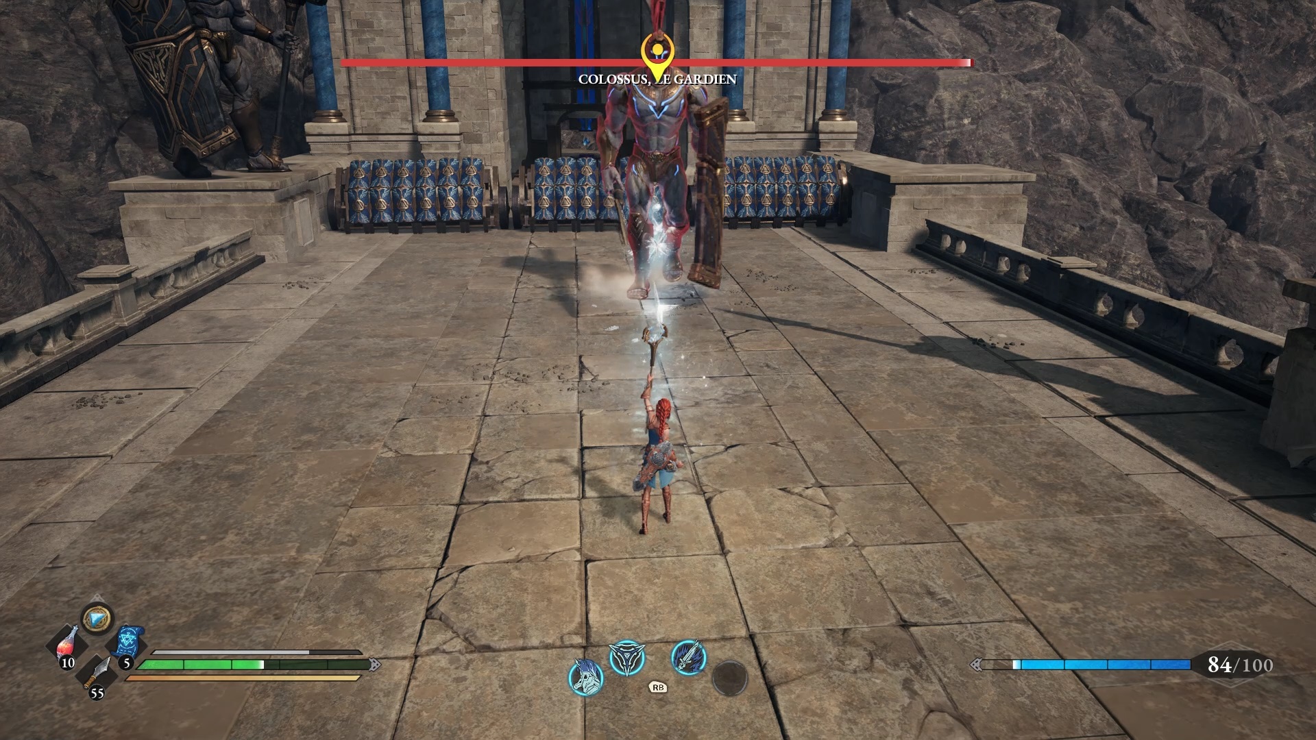 Colossus the Guardian quickly becomes the twin colossi at the start of the fight. Use your staff to gain distance and not put yourself in danger. When an opening presents itself use your close range weapons to cause more damage. Always check the shards of the guardians so as not to find yourself on top and take a shock. In the event of an area attack, take refuge below the colossus’ abacus and chain it with blows. Dodge their hammer attacks with your dodges and beat them as soon as they finish. With a little bit of patience, you will be able to defeat the two Colossi.