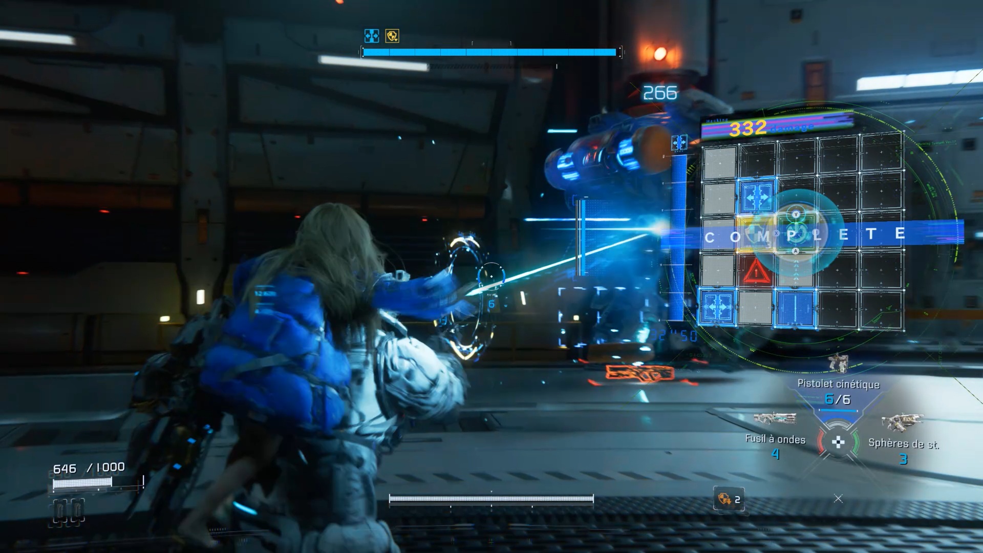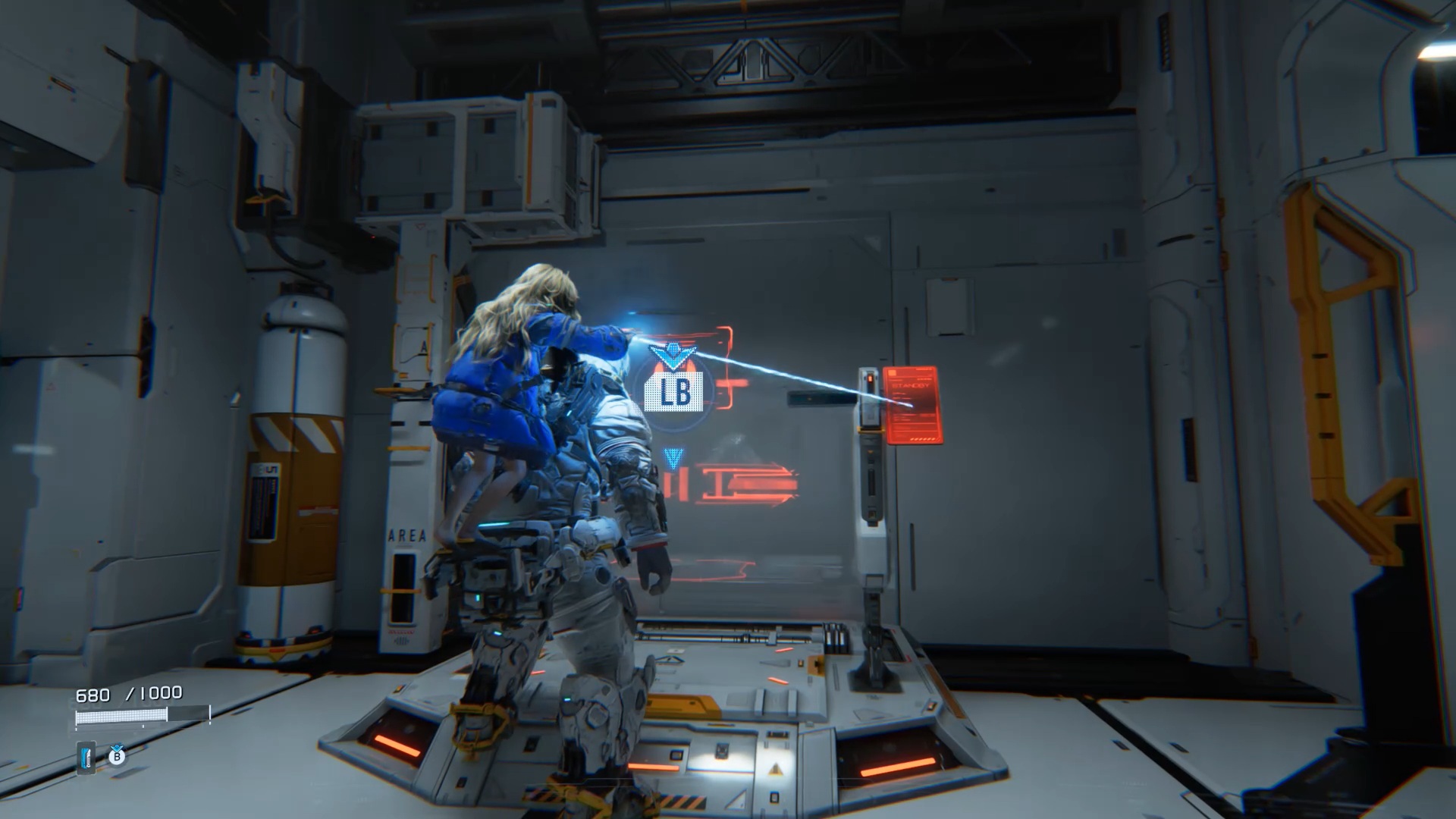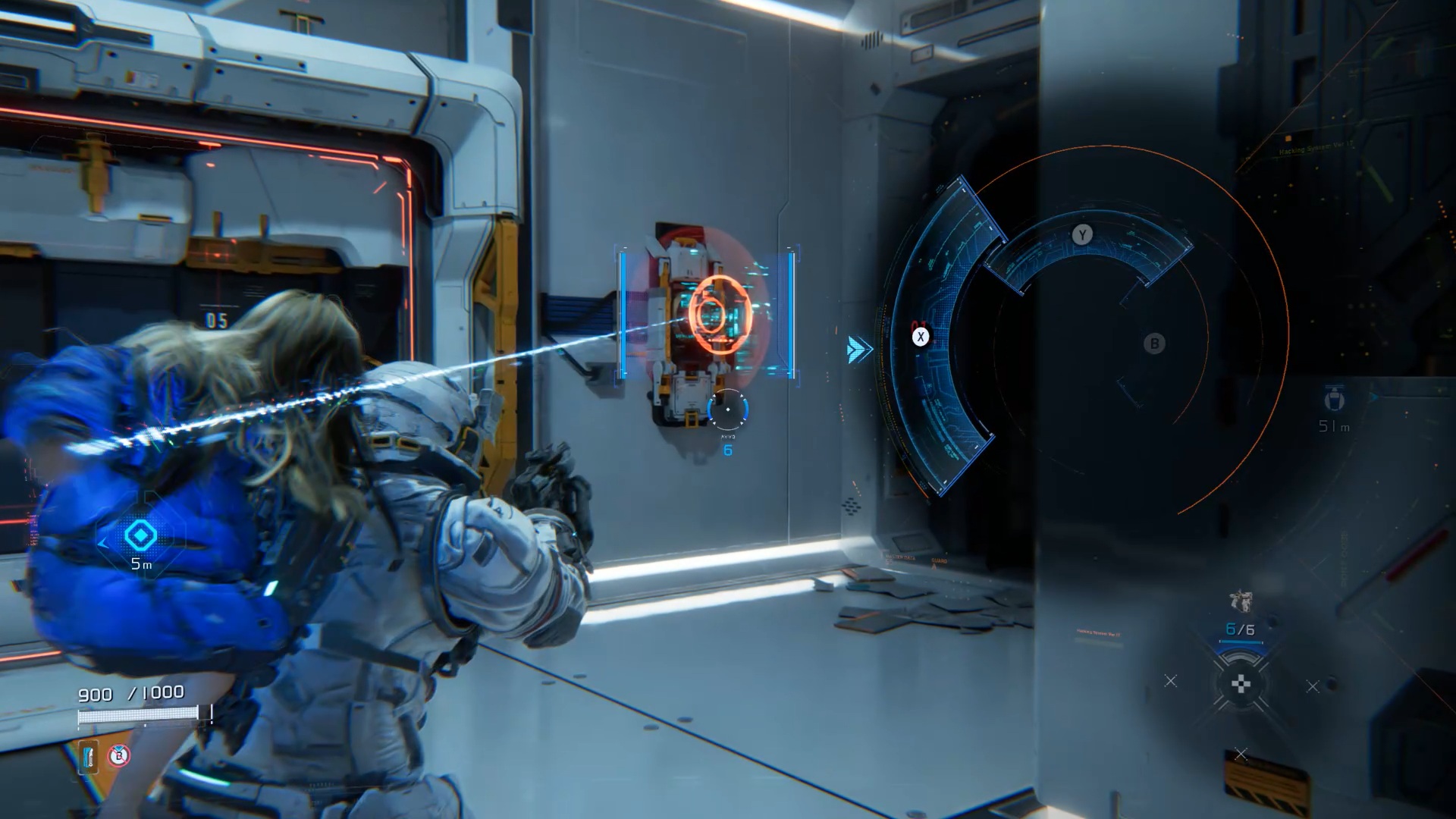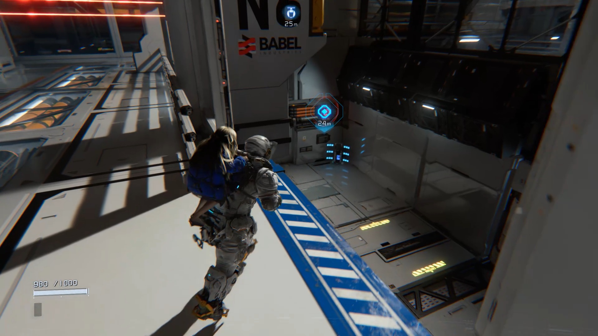 Au début de l’aventure Pragmata, suivez votre équipe afin de vous familiariser avec les commandes de saut Utilisez ensuite les caisses pour atteindre un couloir en hauteur. Après la cinématique, Diana vous rejoint. Utilisez ses capacités de hack pour rendre vulnérable le marcheur, puis le neutraliser. Ensuite, interagissez avec la porte à proximité afin que Diana l’ouvre et vous permette de continuer votre progression.