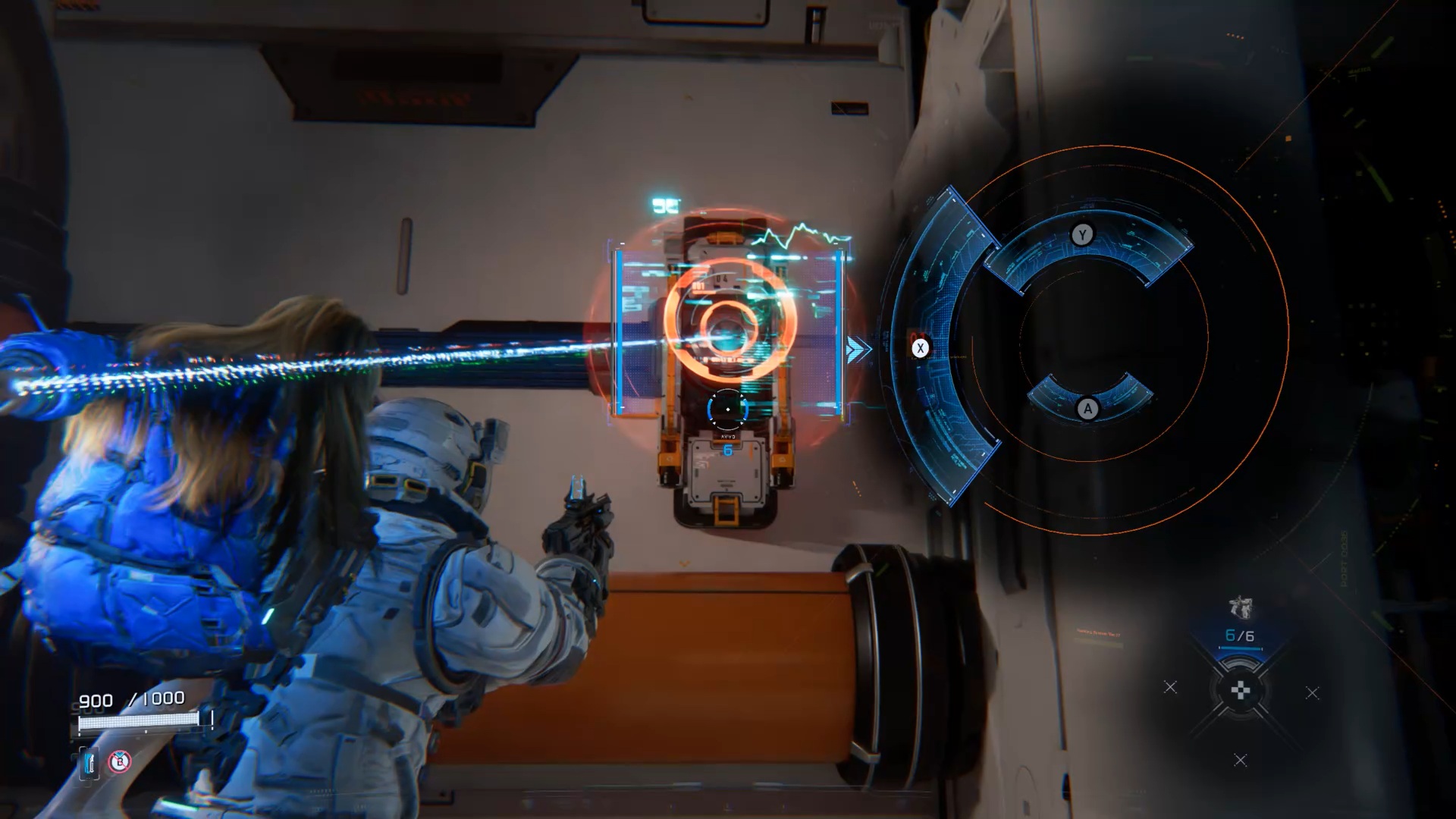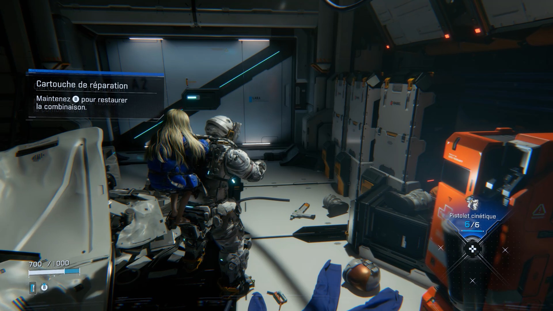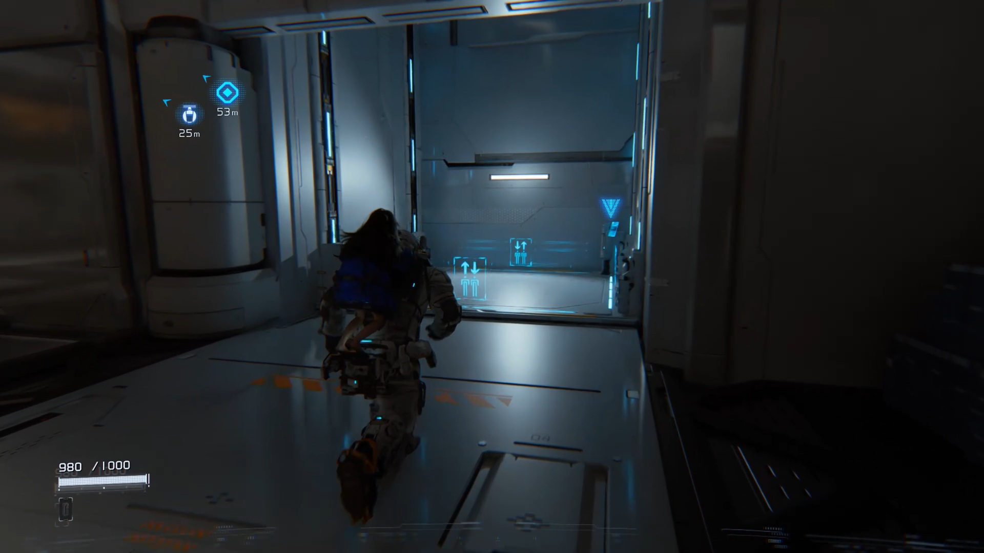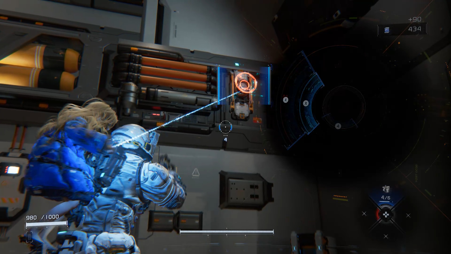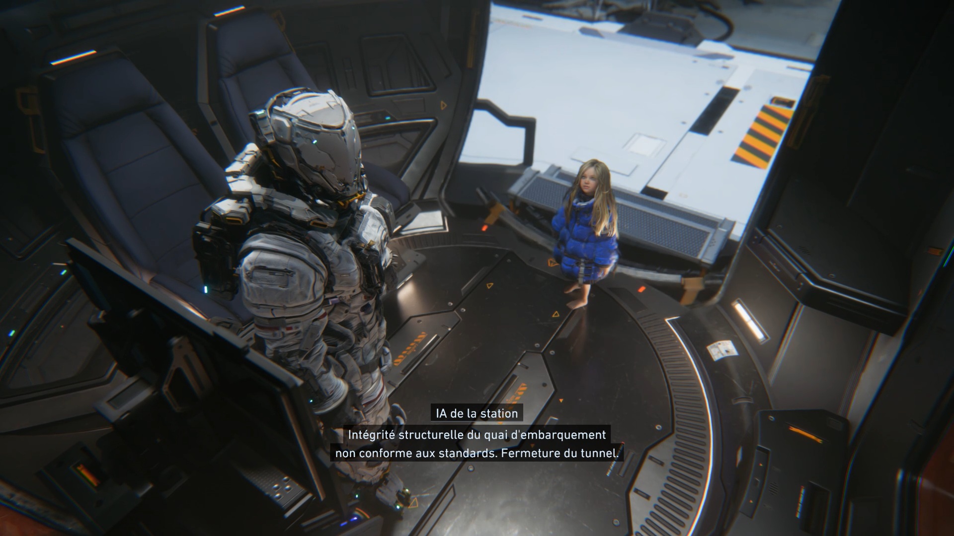 Au début de l’aventure Pragmata, suivez votre équipe afin de vous familiariser avec les commandes de saut Utilisez ensuite les caisses pour atteindre un couloir en hauteur. Après la cinématique, Diana vous rejoint. Utilisez ses capacités de hack pour rendre vulnérable le marcheur, puis le neutraliser. Ensuite, interagissez avec la porte à proximité afin que Diana l’ouvre et vous permette de continuer votre progression.