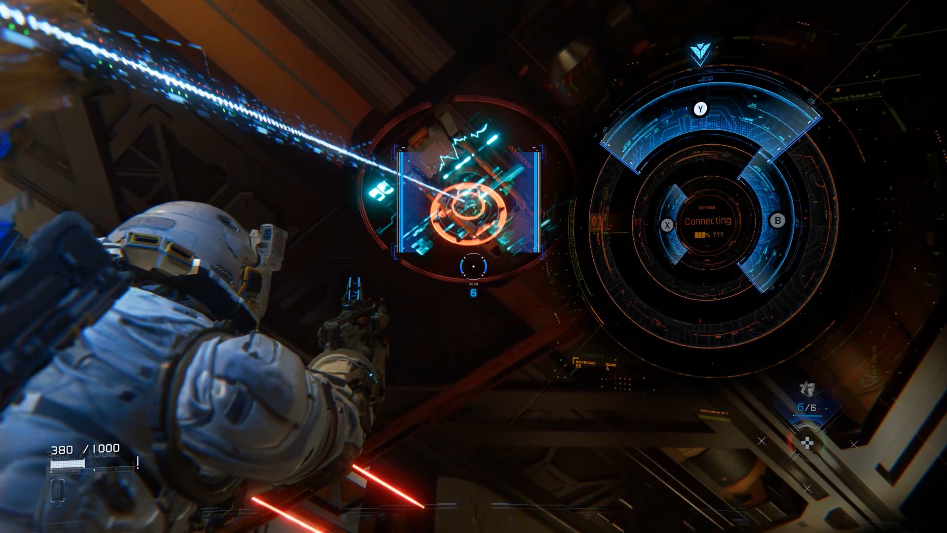 De l’autre côté, récupérez une cartouche de réparation, puis utilisez-la pour déverrouiller la porte en face. Poursuivez en hackant les conteneurs vous faisant obstacle et éliminez les menaces afin de rejoindre le tram et finir le prologue.