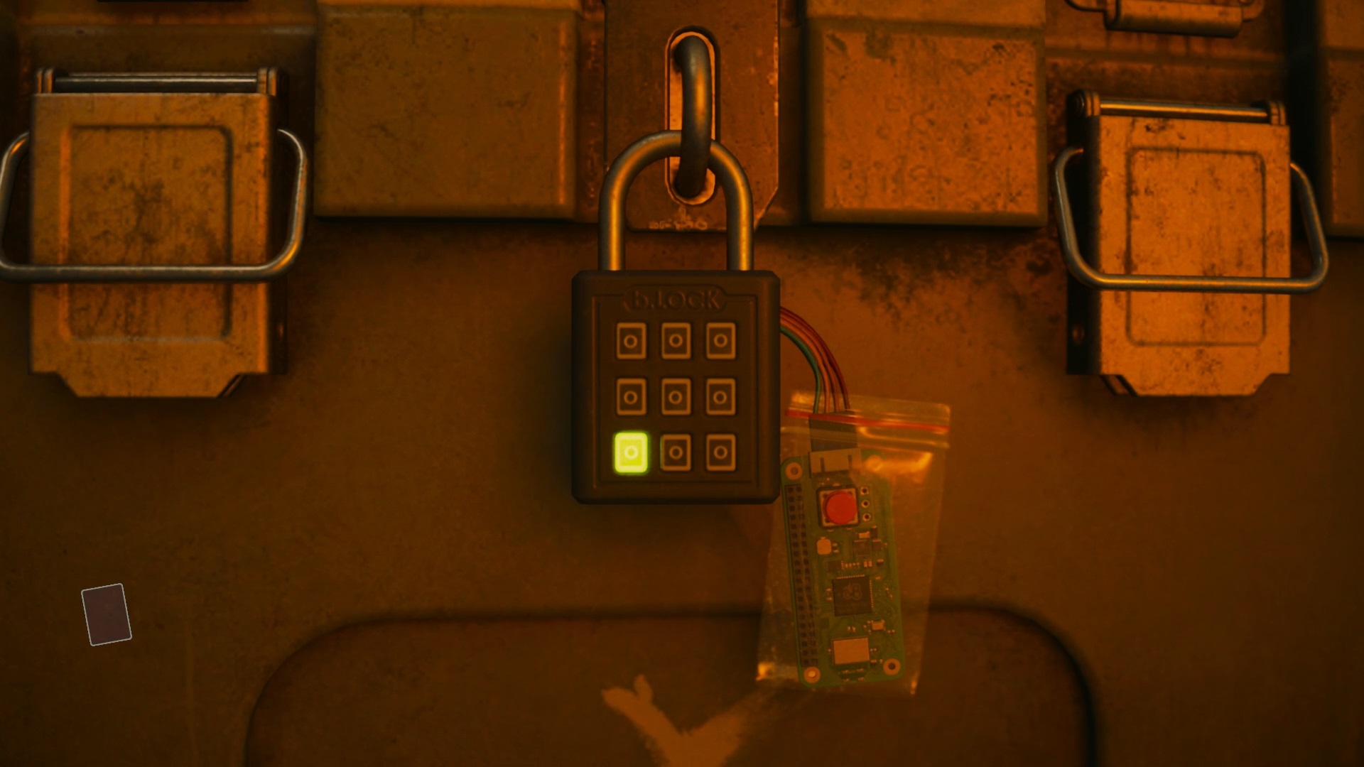Interagissez avec la cache pour voir un dispositif illuminer certaines touches du pavé. Appuyez sur les touches dans l’ordre indiqué pour ouvrir le coffre.
