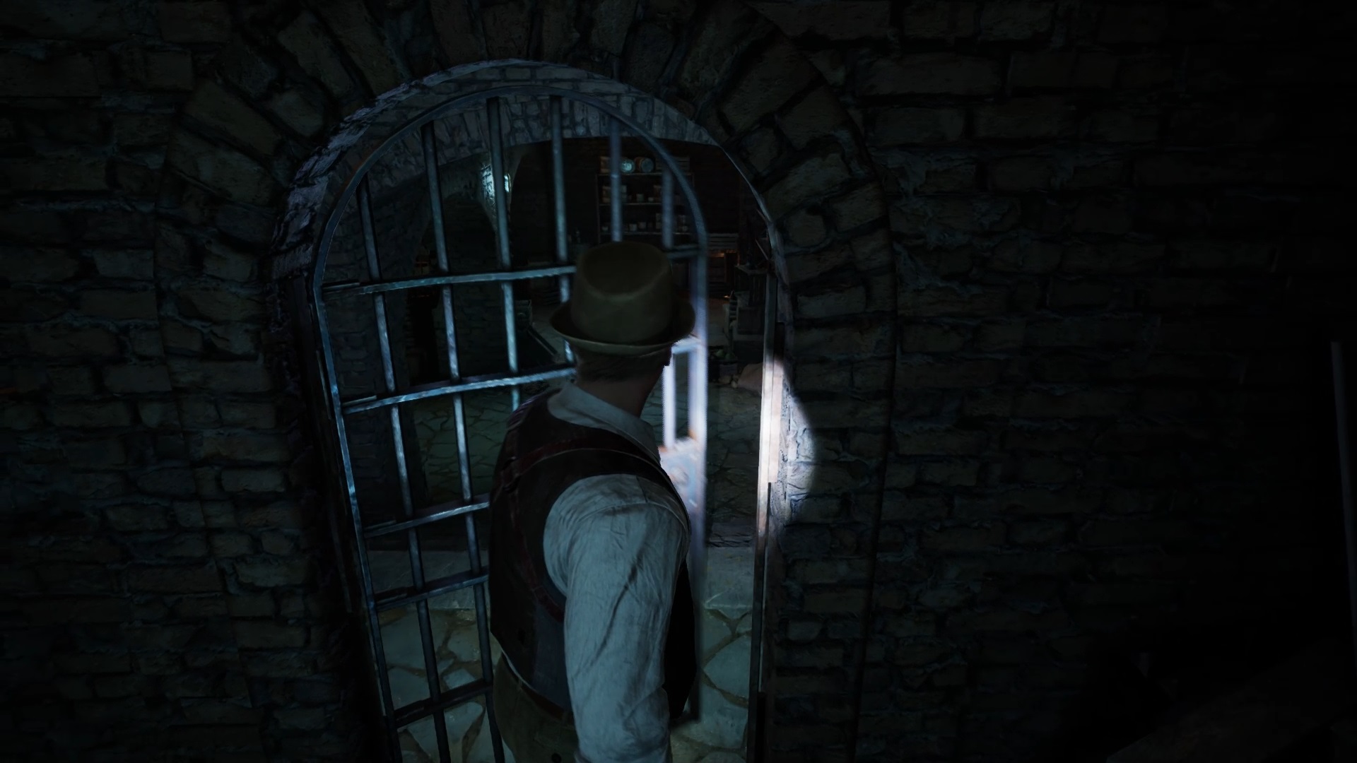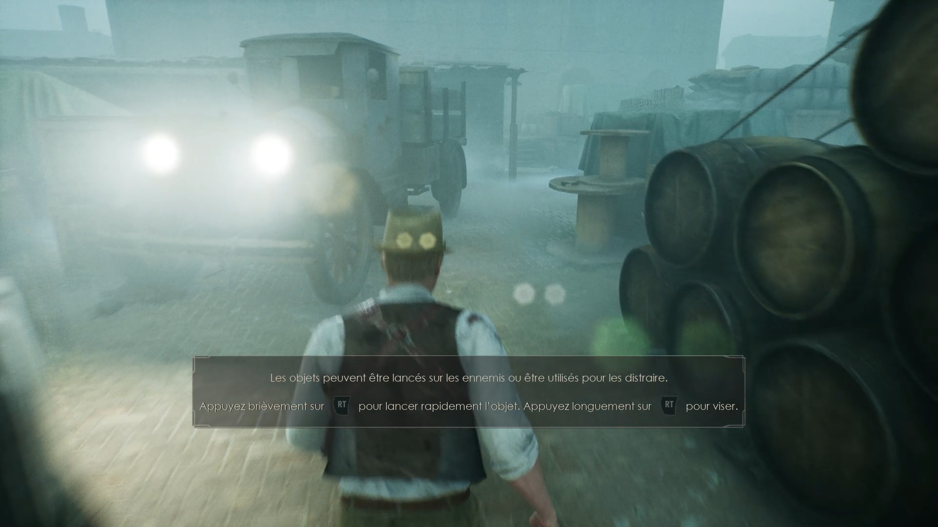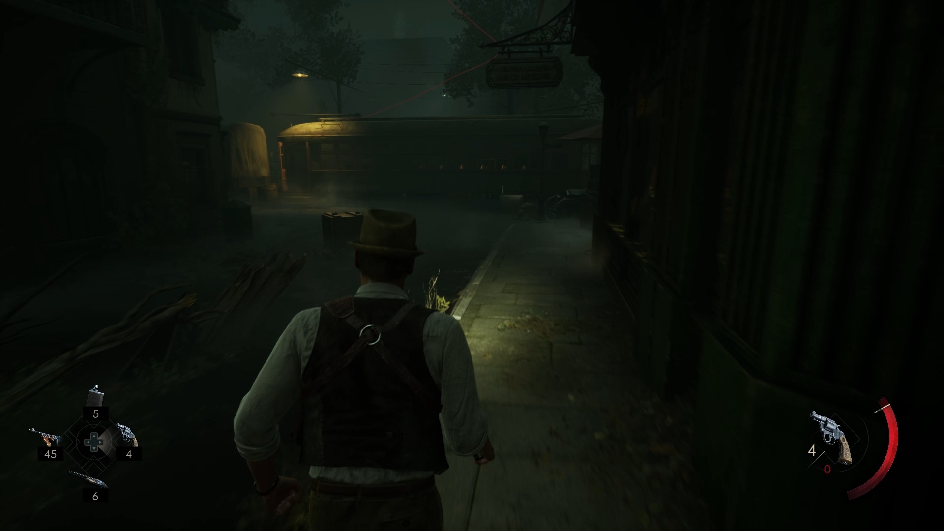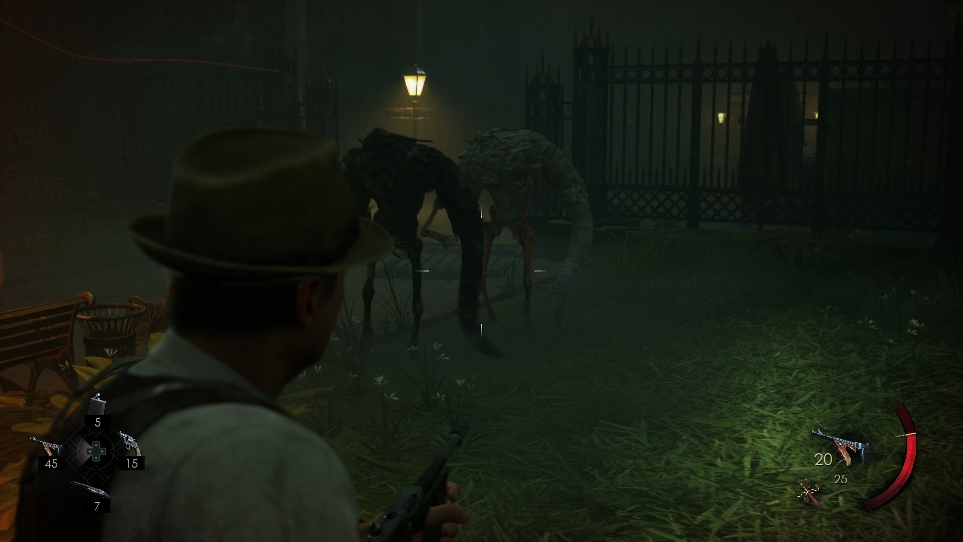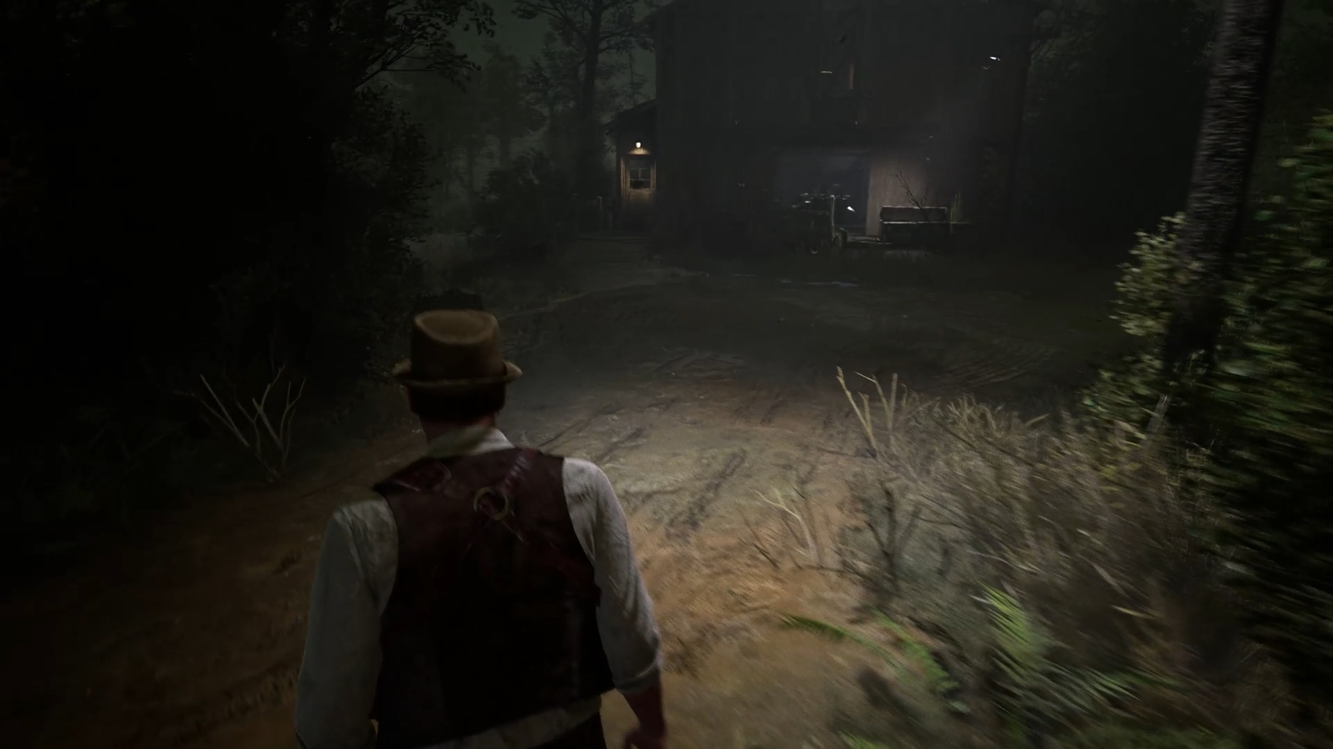 Au début de votre aventure, vous avez le choix de votre personnage, et nous avons opté pour Edward Carnby. En progressant dans la grange, vous remarquerez une lumière dans une étable. Interagissez avec elle pour récupérer une lampe de poche et une clé. Avancez ensuite dans l’obscurité et éclairez le chemin avec votre nouvelle lampe. Utilisez la clé pour ouvrir le portail, puis continuez à travers la cour pour accéder à une porte menant au jardin.