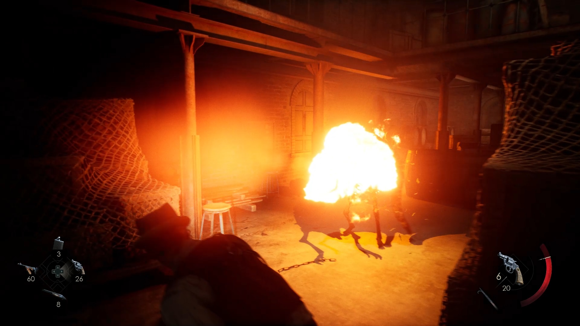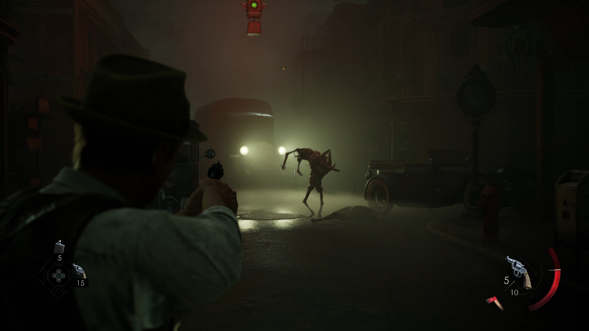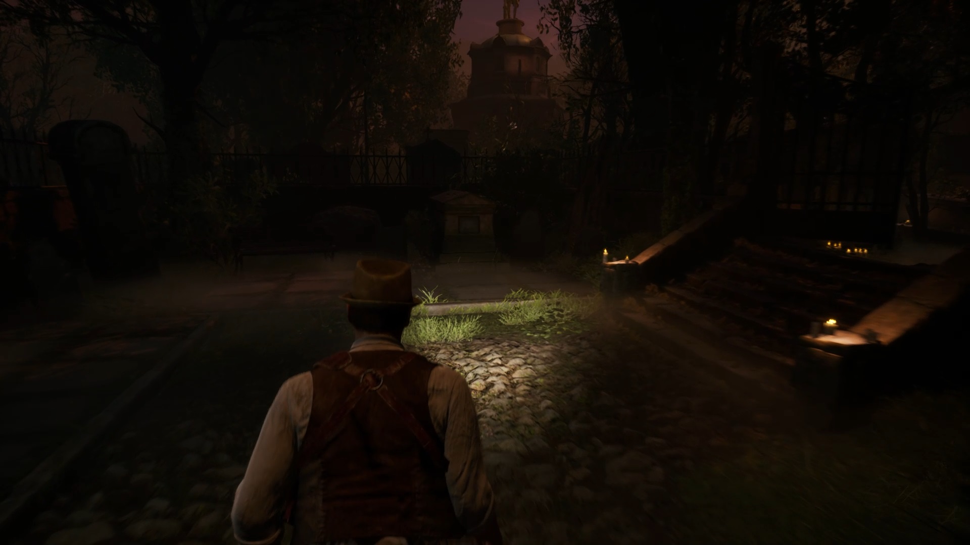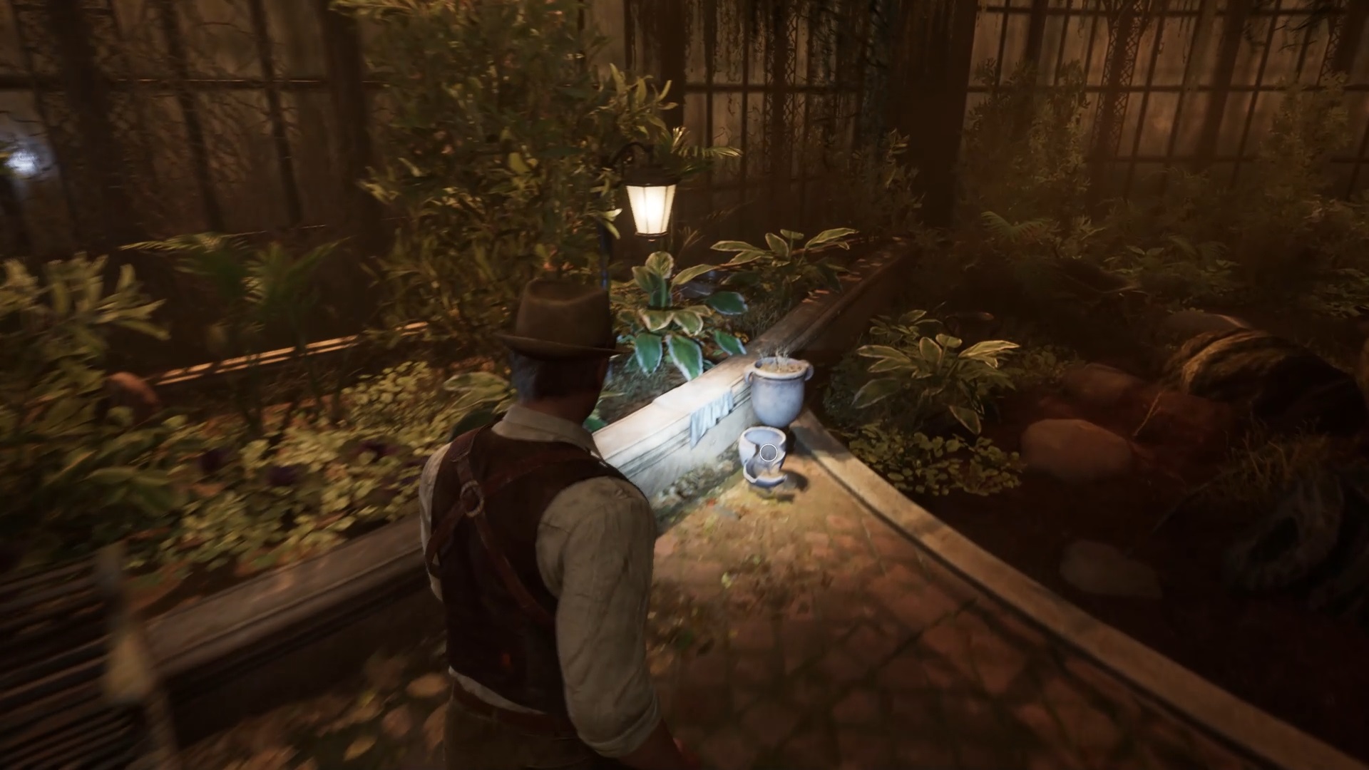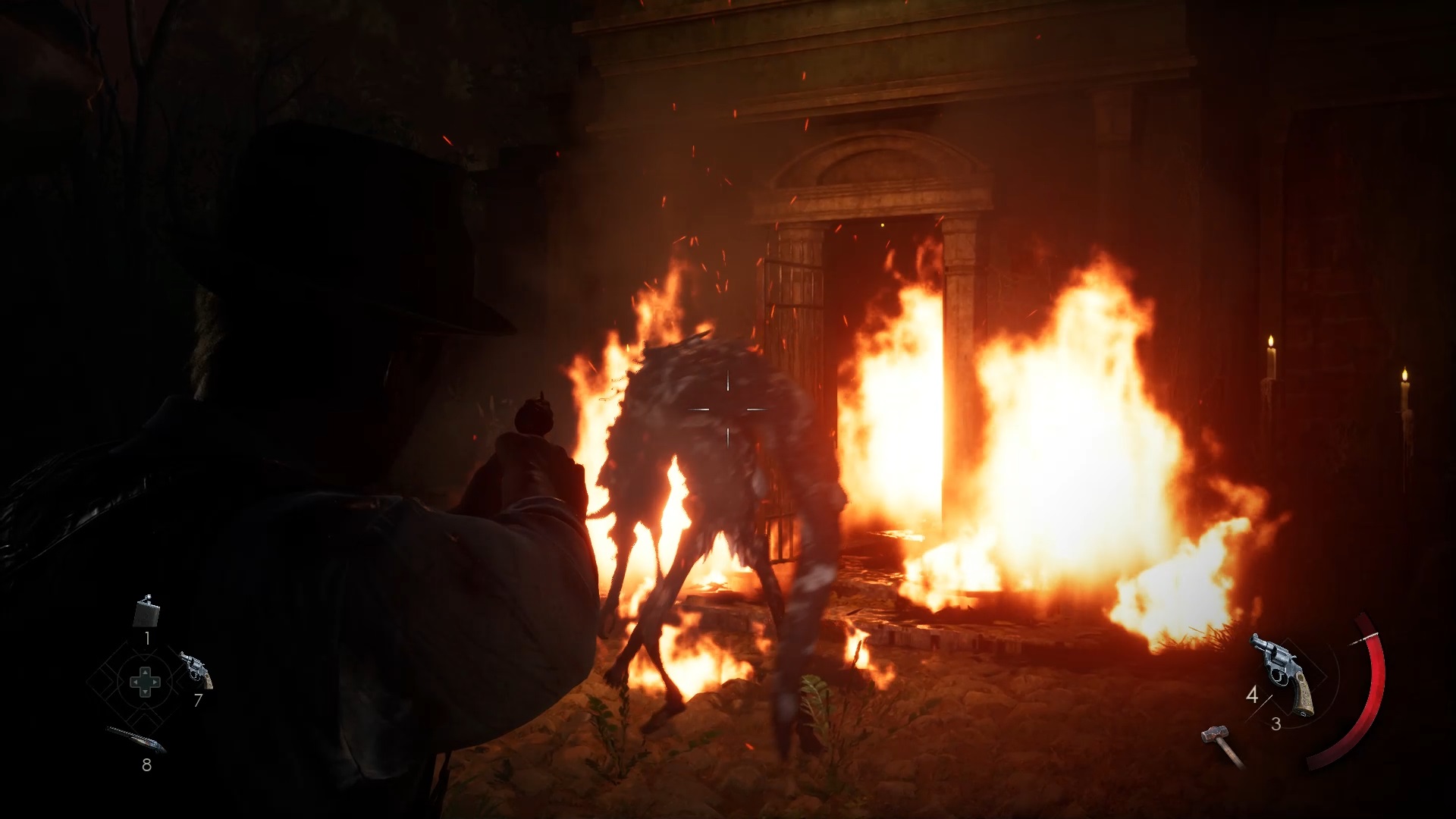 Au début de votre aventure, vous avez le choix de votre personnage, et nous avons opté pour Edward Carnby. En progressant dans la grange, vous remarquerez une lumière dans une étable. Interagissez avec elle pour récupérer une lampe de poche et une clé. Avancez ensuite dans l’obscurité et éclairez le chemin avec votre nouvelle lampe. Utilisez la clé pour ouvrir le portail, puis continuez à travers la cour pour accéder à une porte menant au jardin.