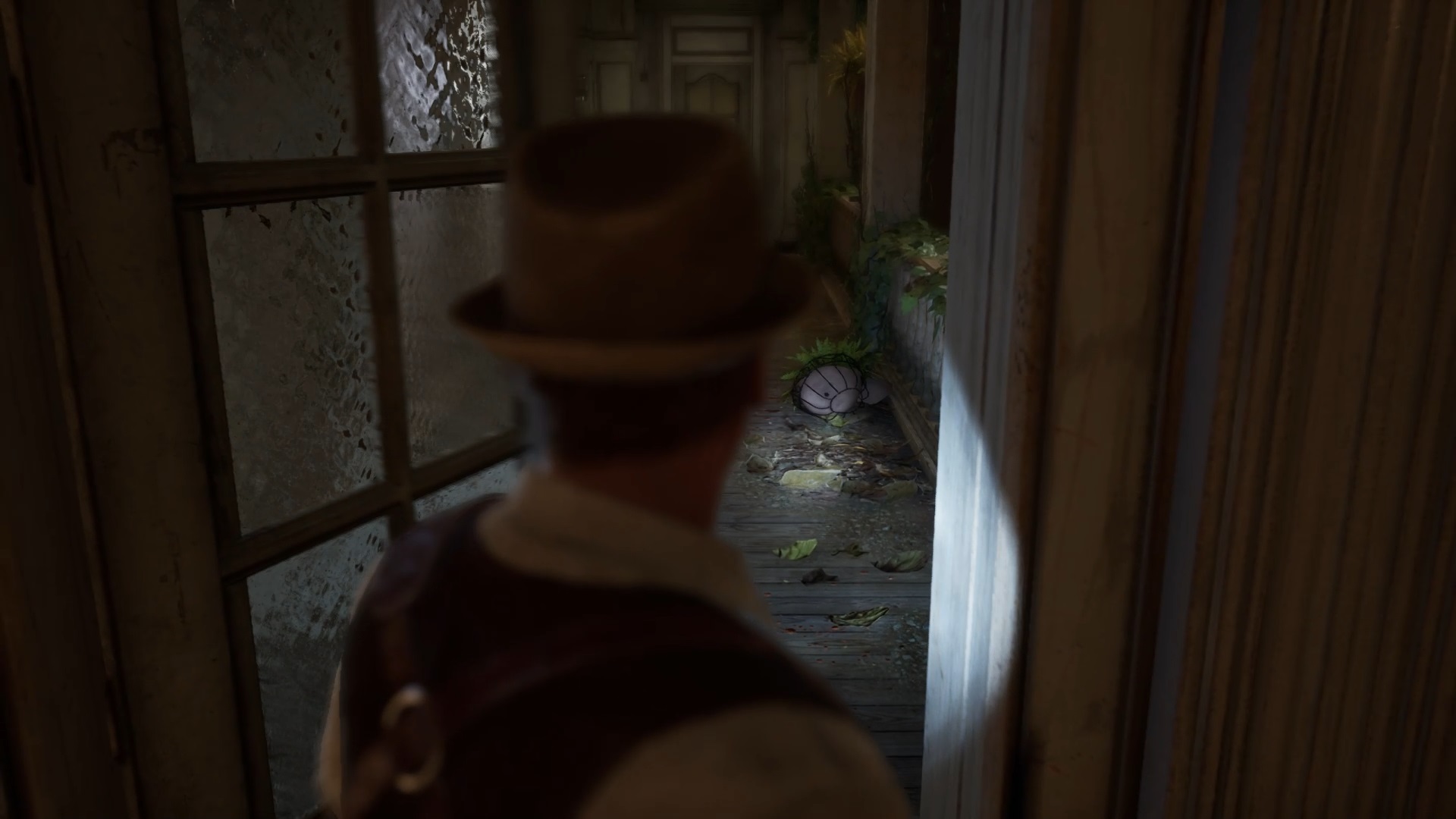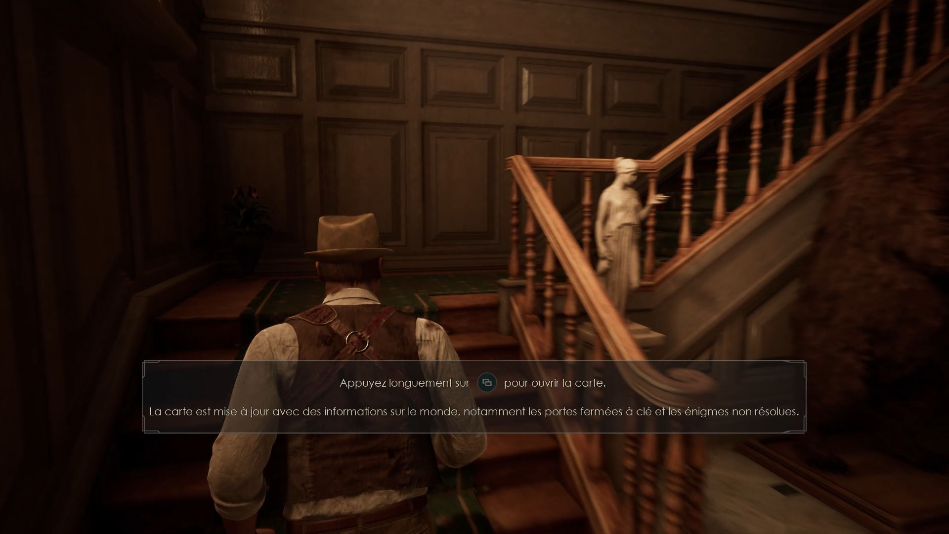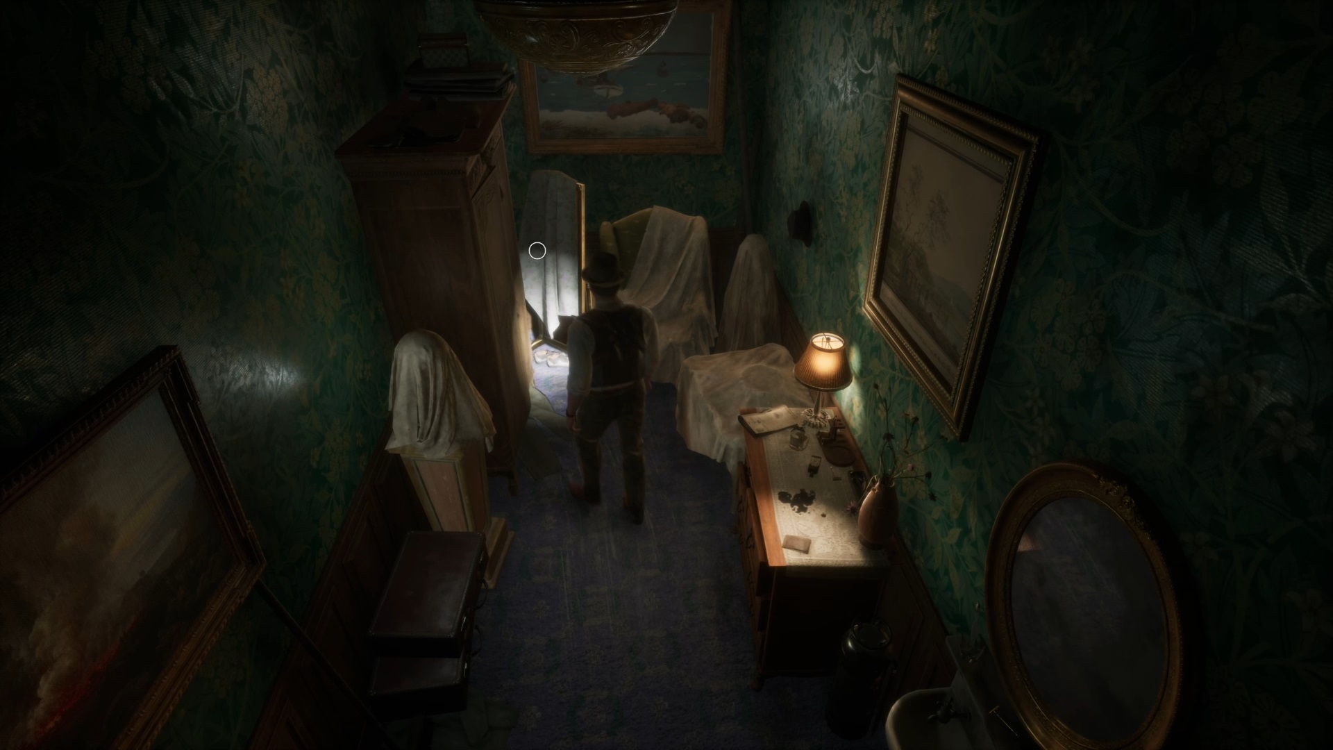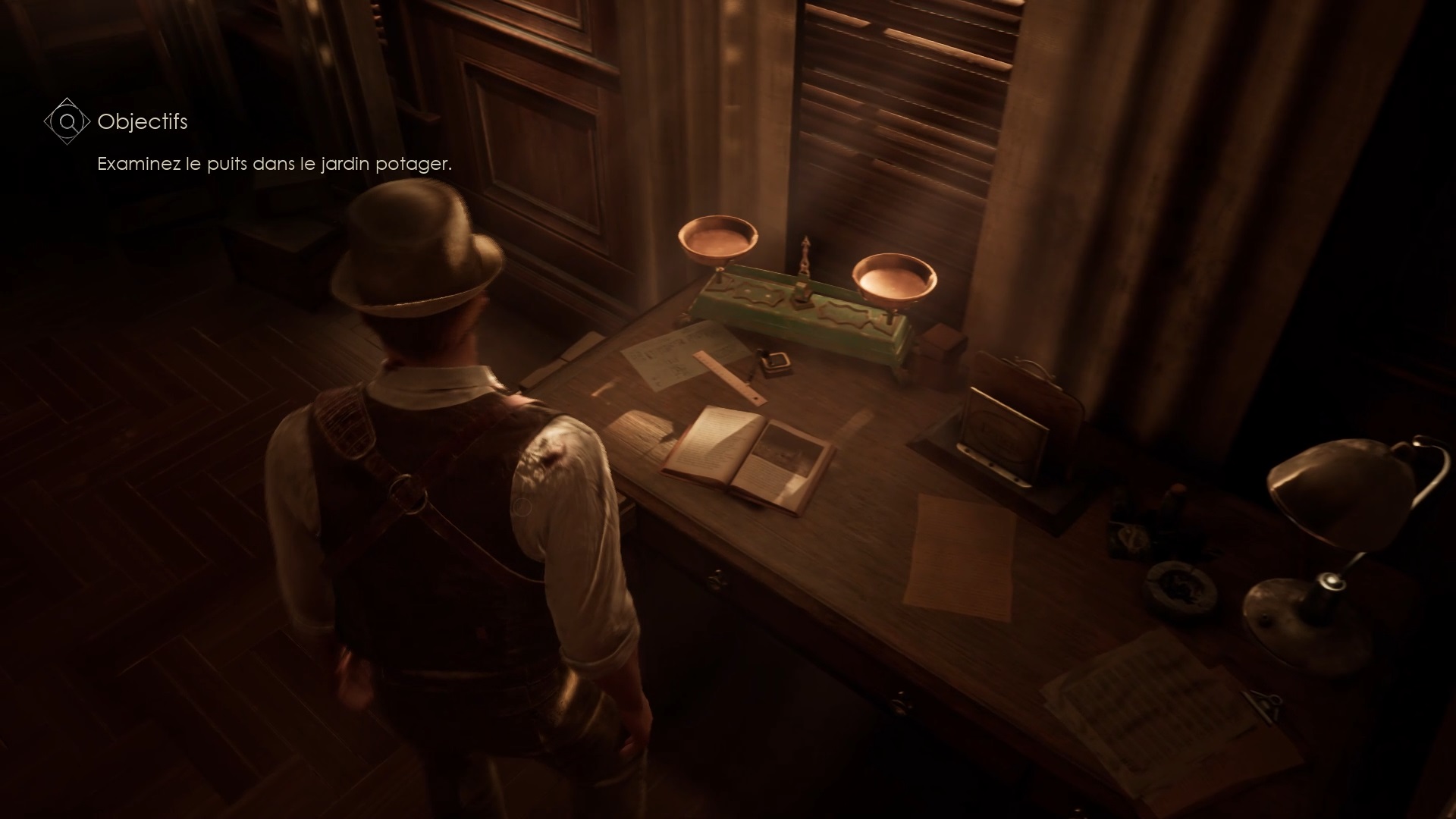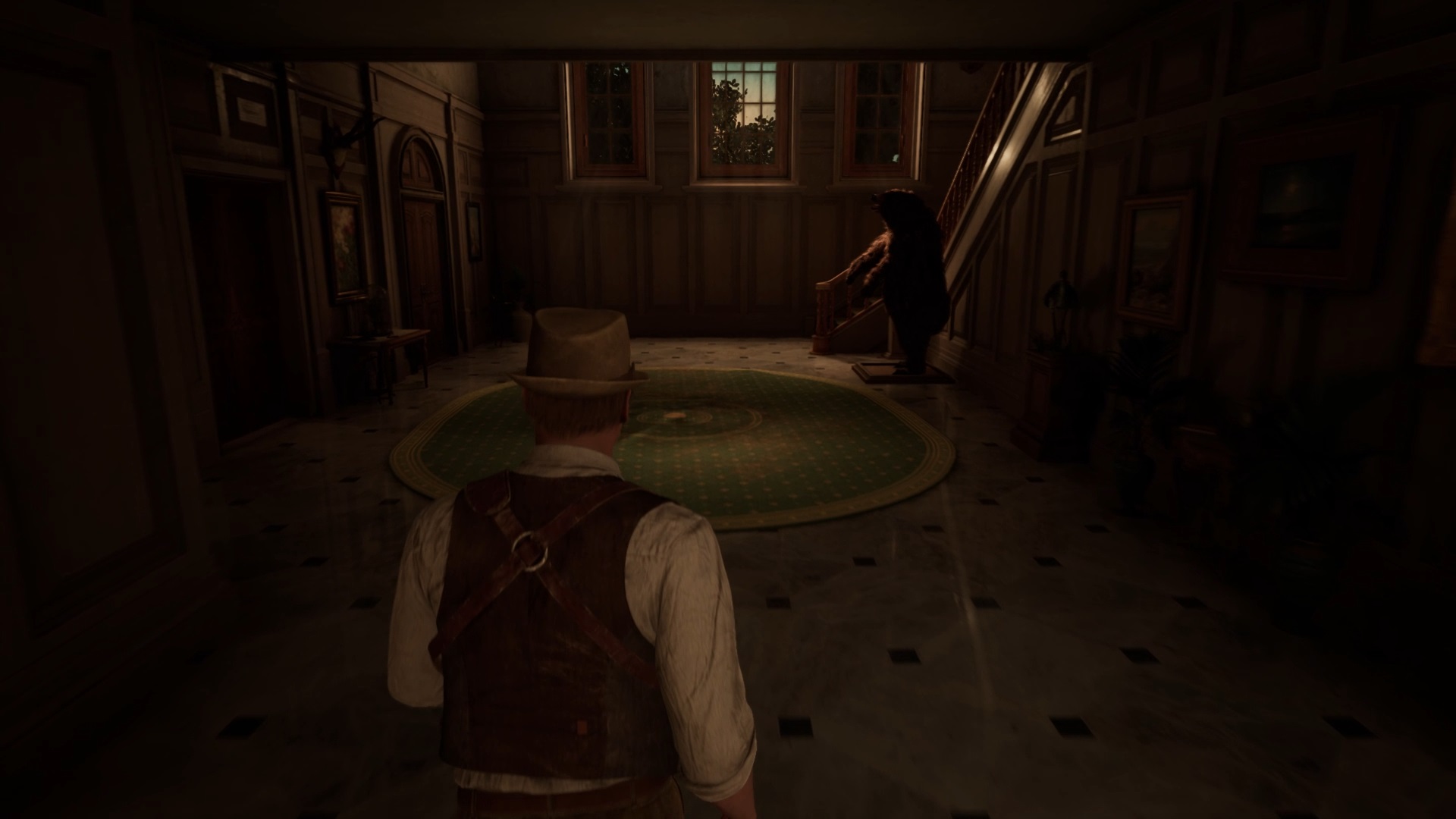 Enfoncez-vous dans le bayou pour faire une mystérieuse rencontre. De retour au manoir, fouillez la valise dans le petit parloir pour obtenir un couteau et une clé. Utilisez la clé sur la porte à proximité pour dégager l’accès au salon et entrez. Récupérez une autre clé sur la table au centre.