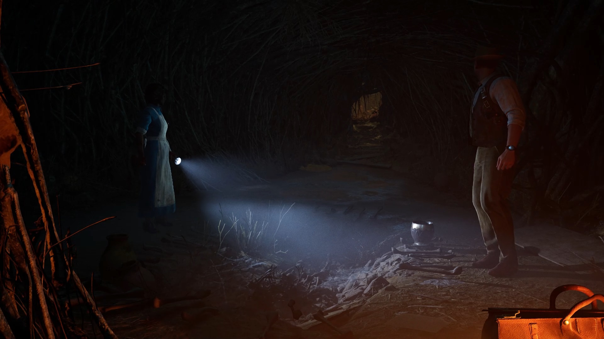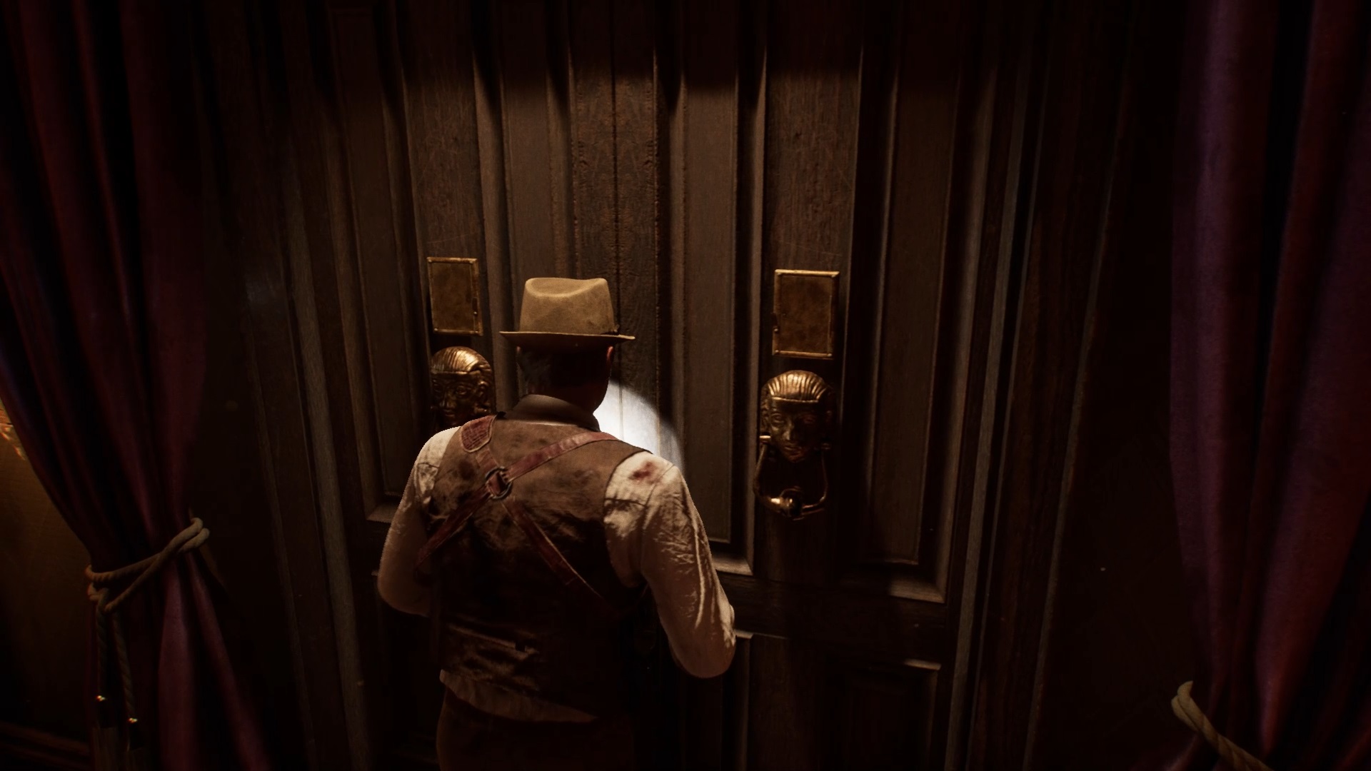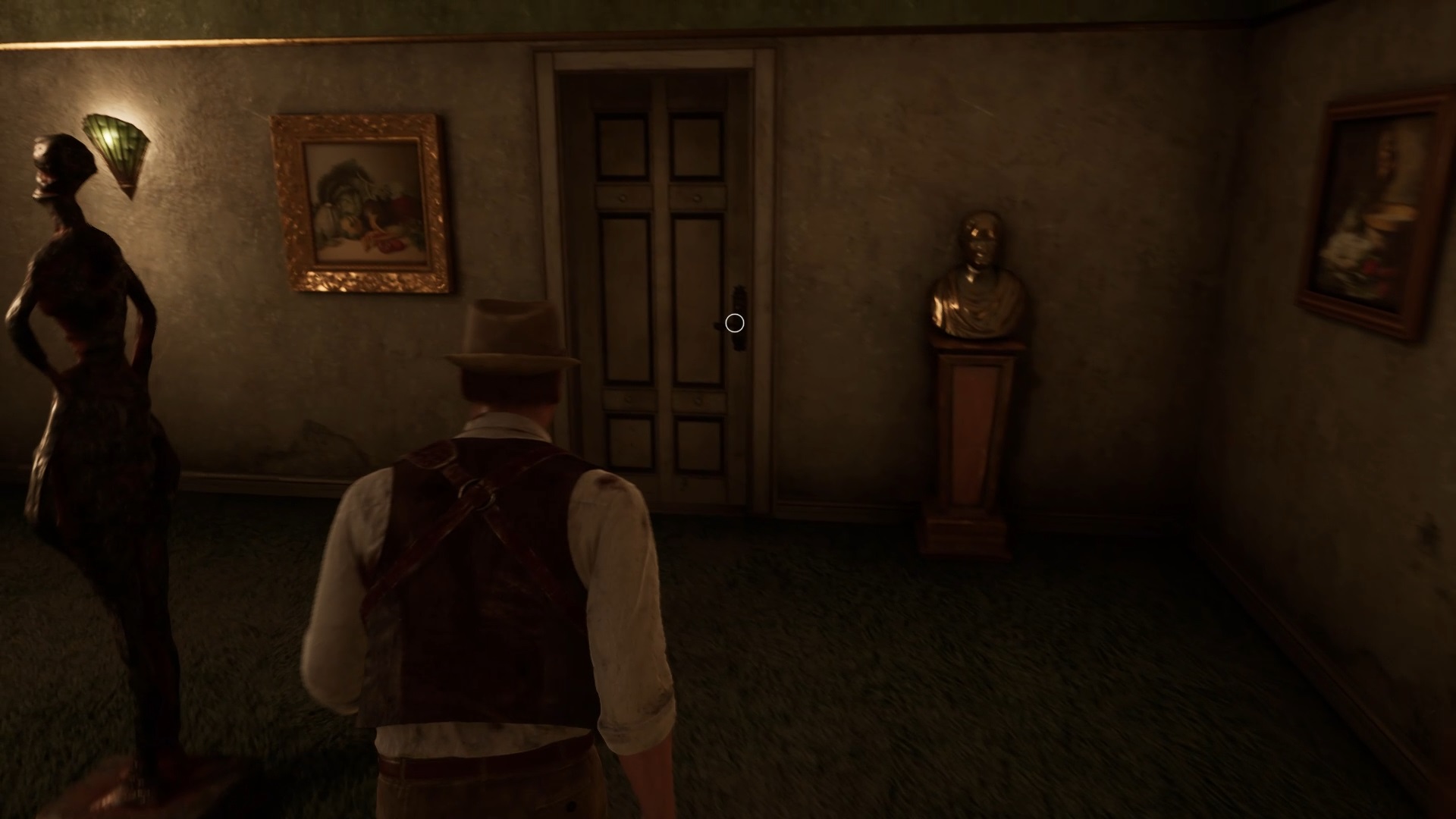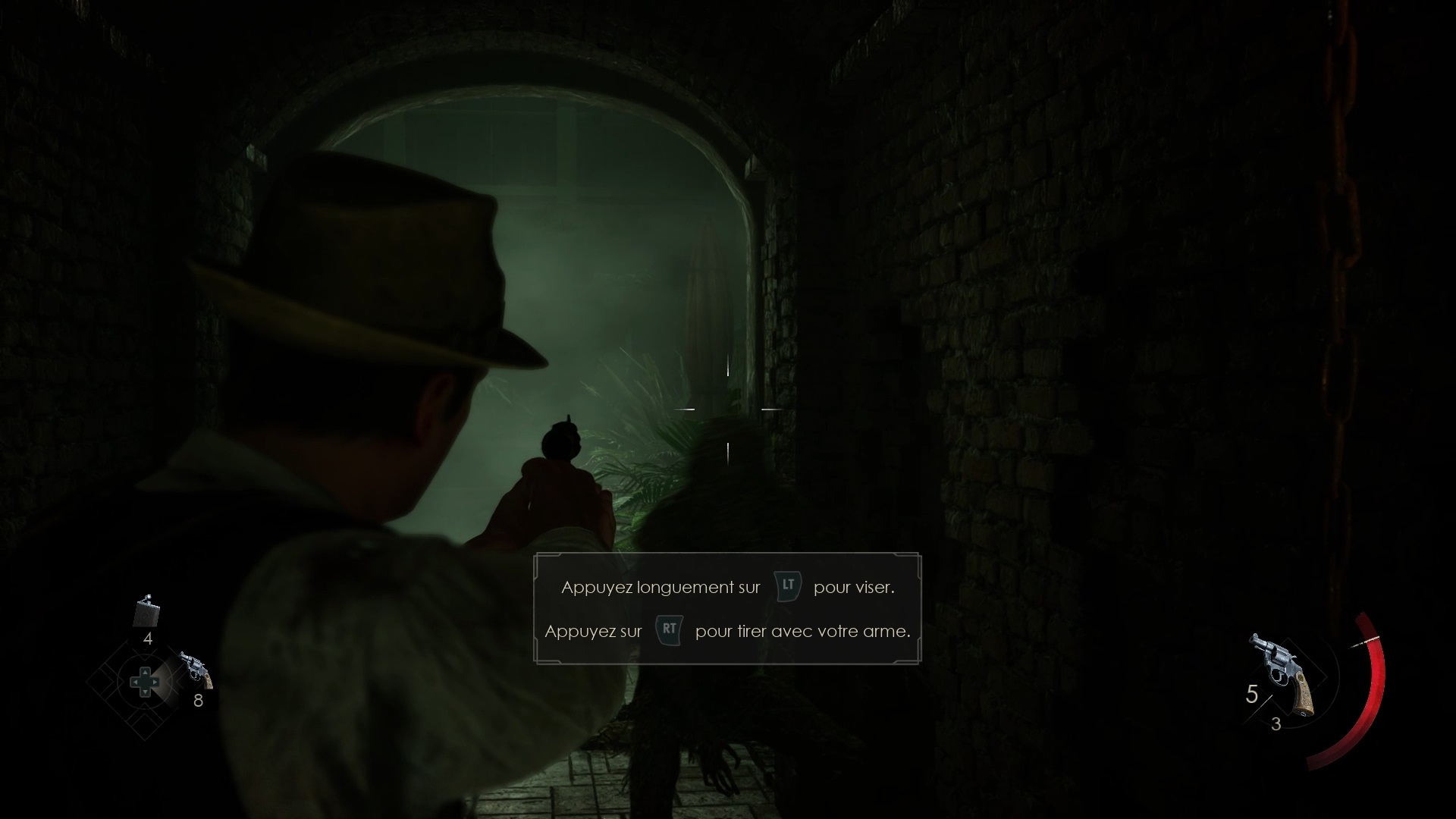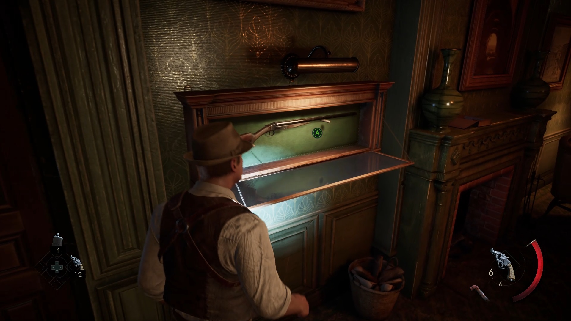 Enfoncez-vous dans le bayou pour faire une mystérieuse rencontre. De retour au manoir, fouillez la valise dans le petit parloir pour obtenir un couteau et une clé. Utilisez la clé sur la porte à proximité pour dégager l’accès au salon et entrez. Récupérez une autre clé sur la table au centre.