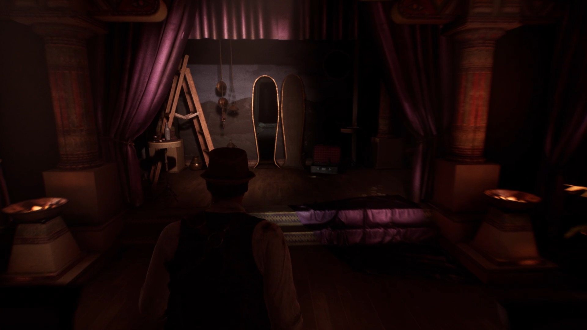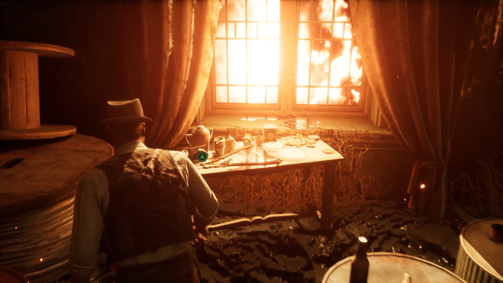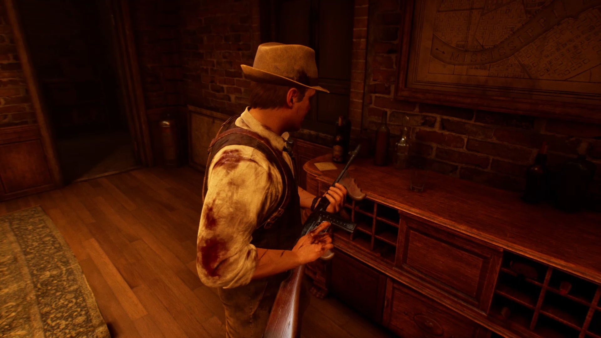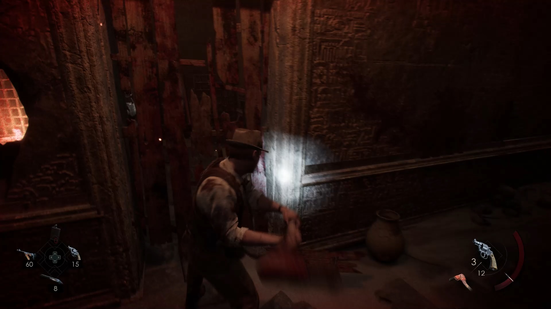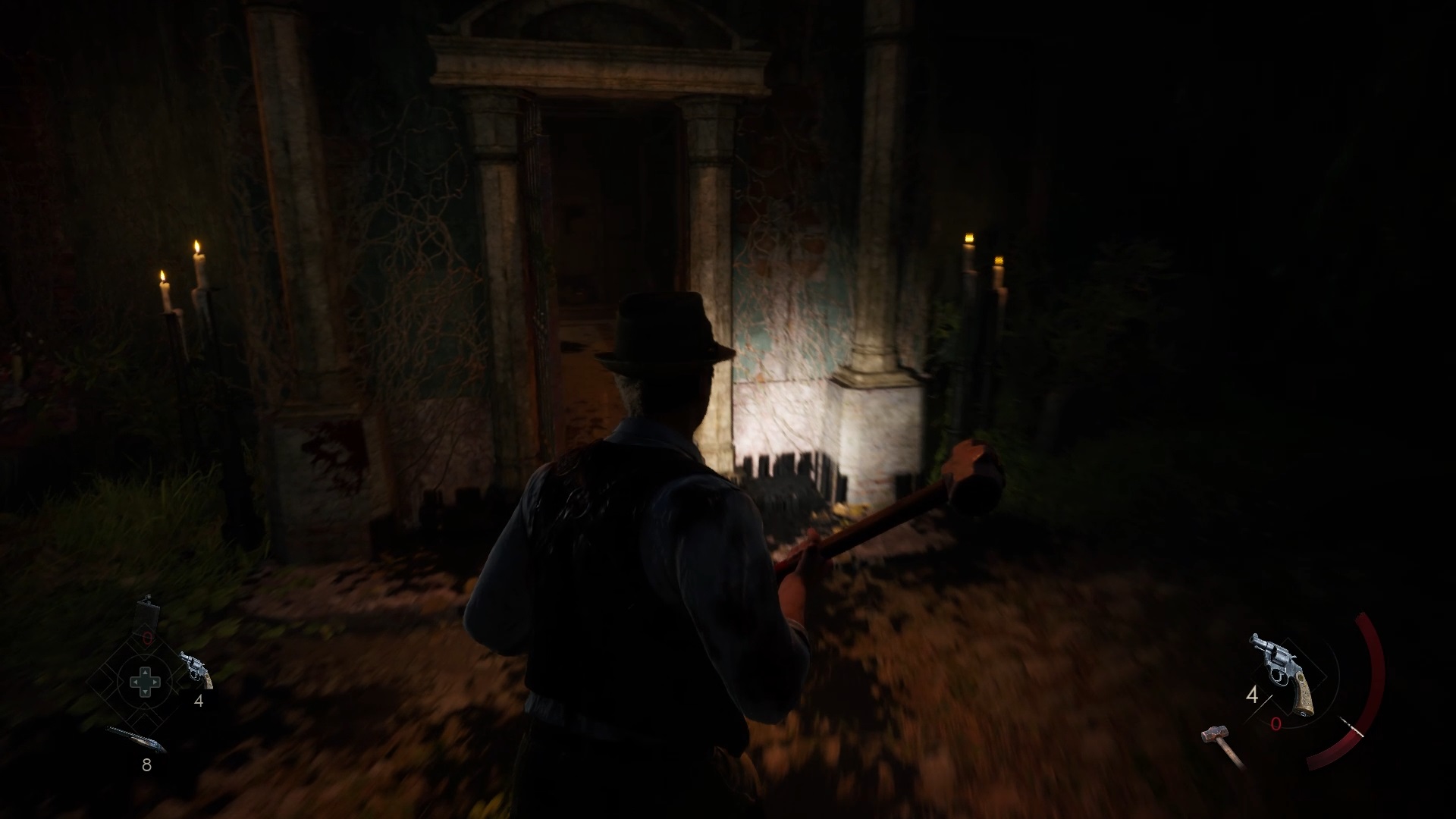 Enfoncez-vous dans le bayou pour faire une mystérieuse rencontre. De retour au manoir, fouillez la valise dans le petit parloir pour obtenir un couteau et une clé. Utilisez la clé sur la porte à proximité pour dégager l’accès au salon et entrez. Récupérez une autre clé sur la table au centre.