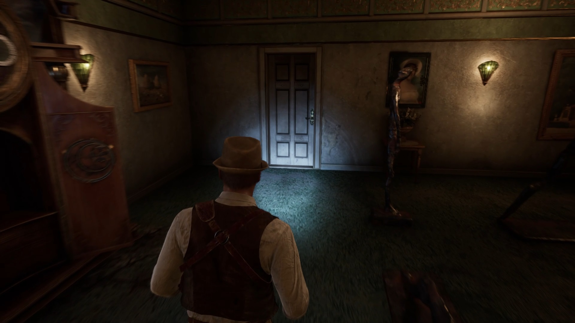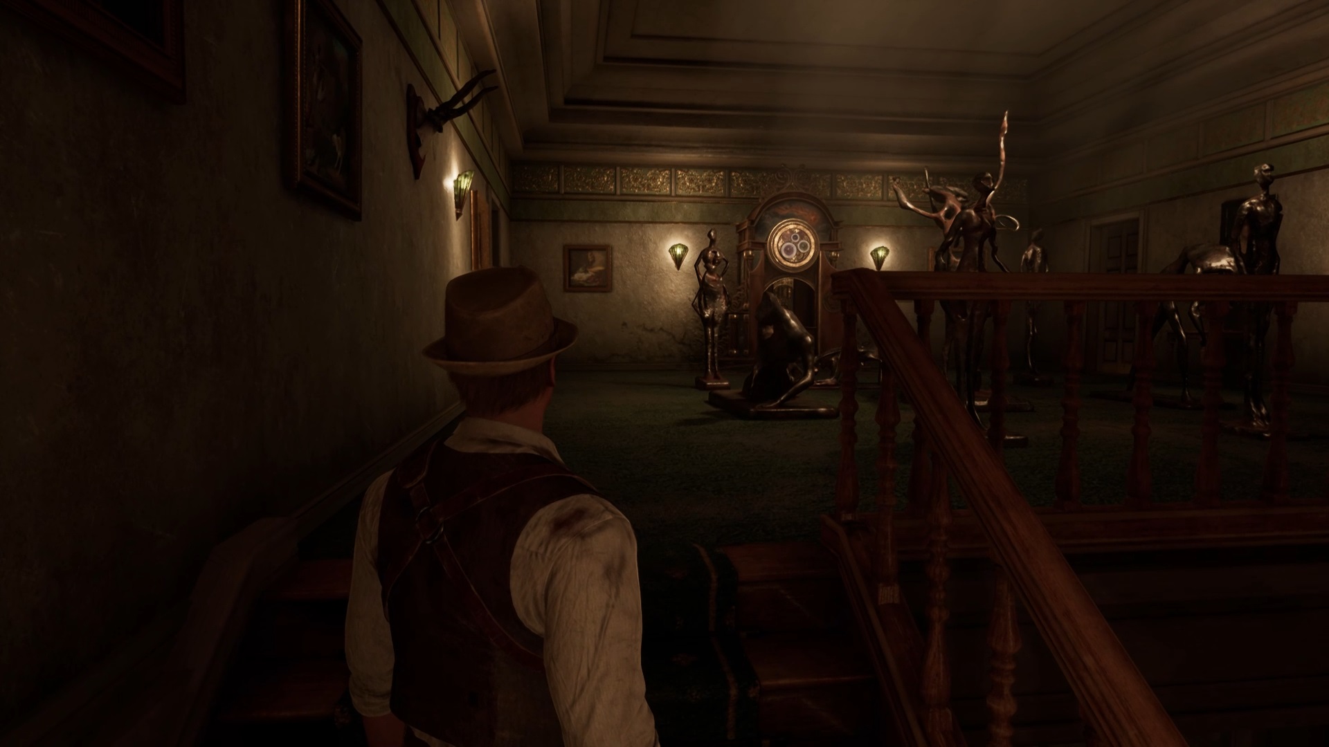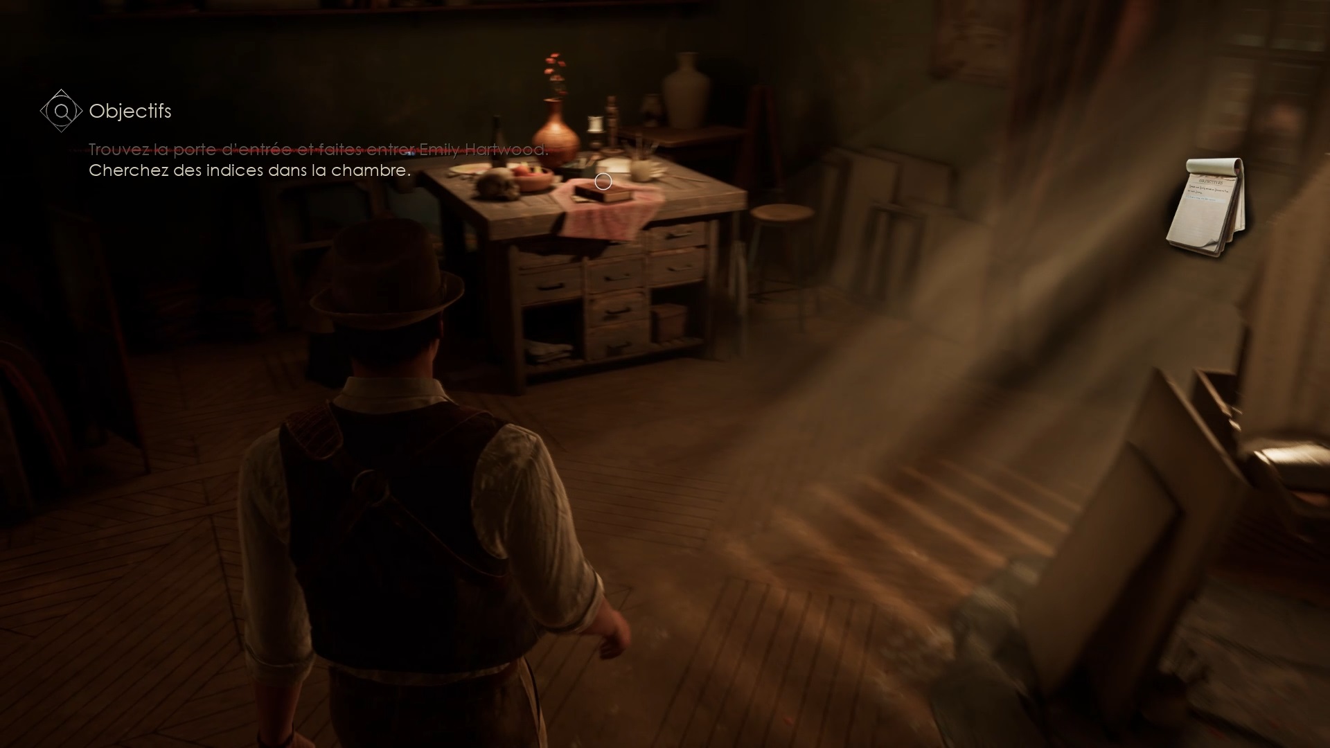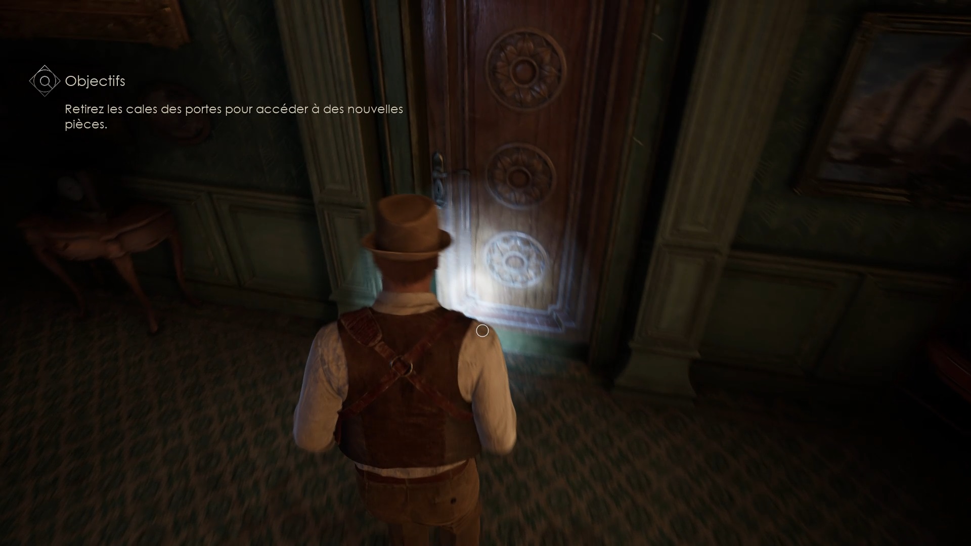 Rejoignez le hall et montez l’escalier. Vous trouverez l’horloge dans la galerie située au-dessus. Passez ensuite la première porte à gauche pour déclencher une cinématique dans le couloir. Enfin, ouvrez la porte de la chambre de Perrosi située au bout du couloir.