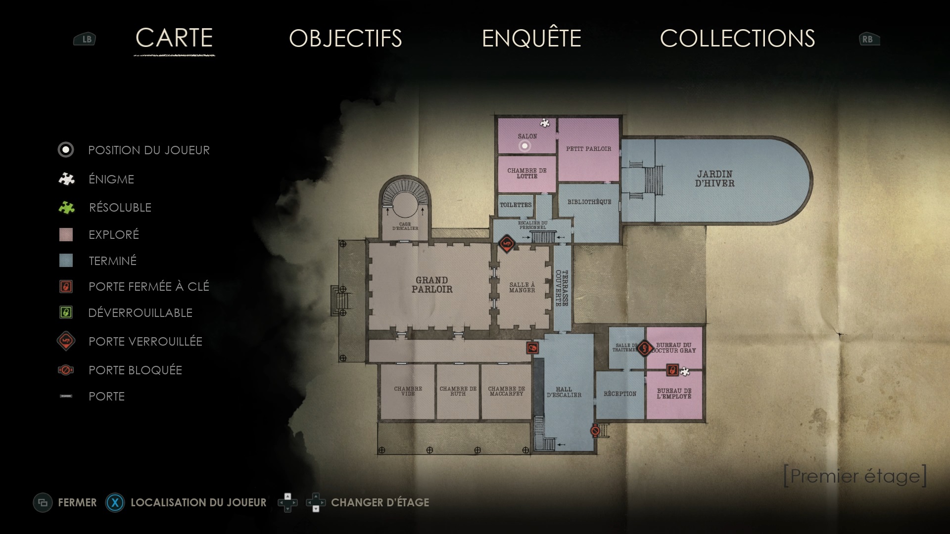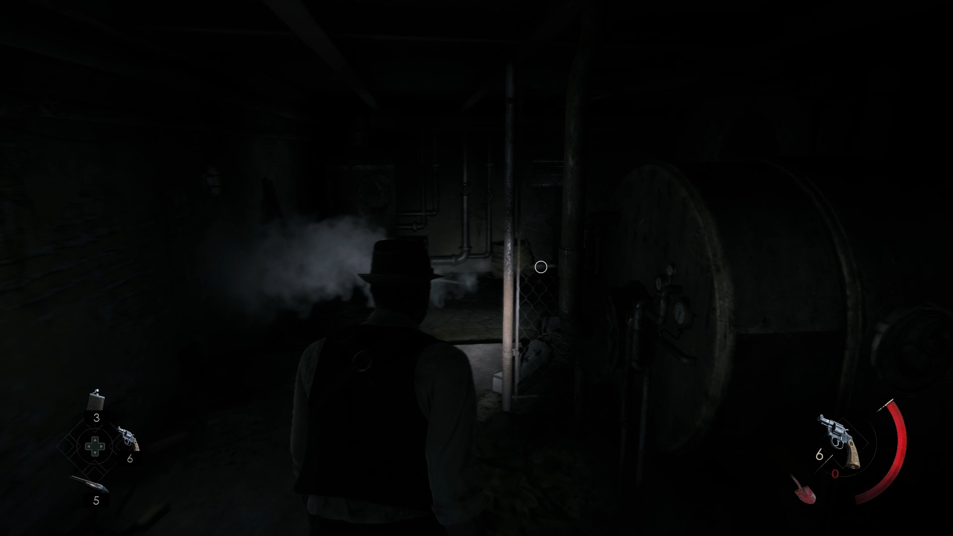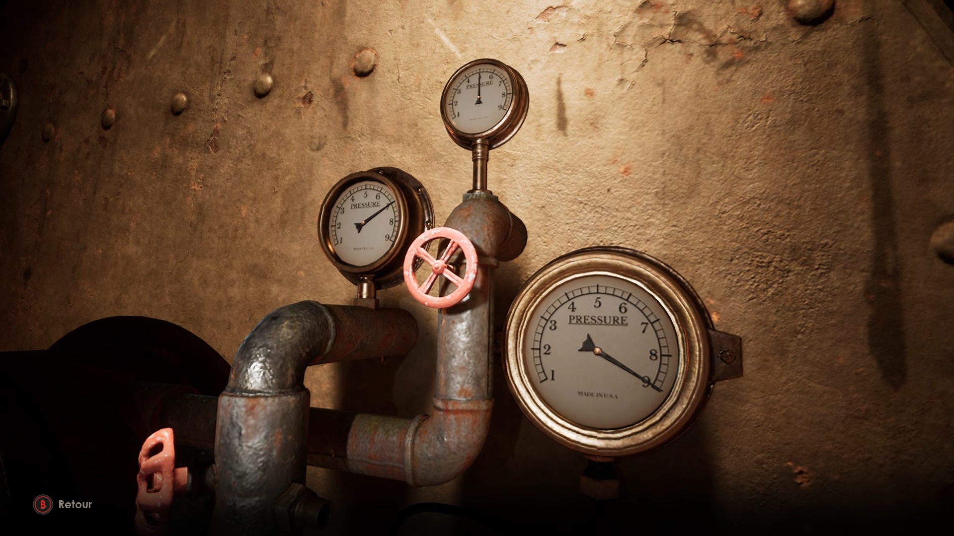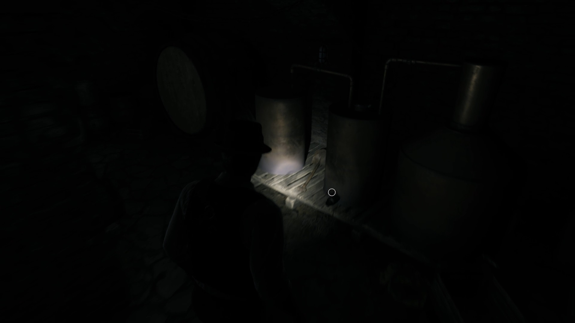 Le rez-de-chaussée est plongé dans l’obscurité. Récupérez une valve dans la cave à vin, sur une cuve, puis dirigez-vous vers le couloir de la chaufferie. Utilisez la valve sur la chaufferie et avancez jusqu’au fond pour trouver le corps de Jérémy et une pièce brisée. Ensuite, montez au deuxième étage dans le hall d’escalier pour déverrouiller la porte d’un couloir.