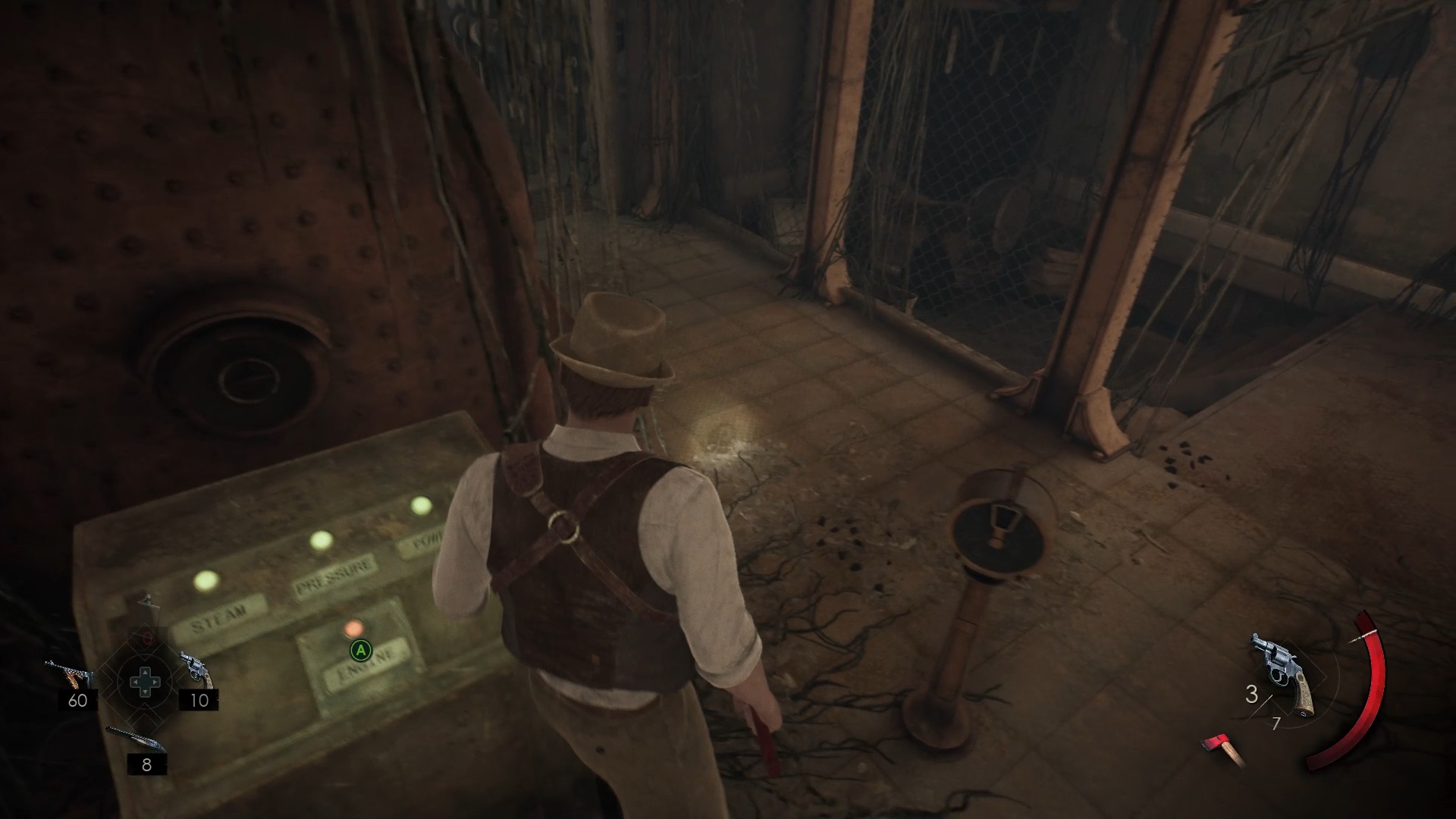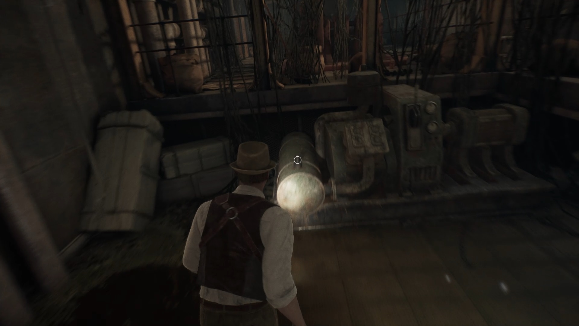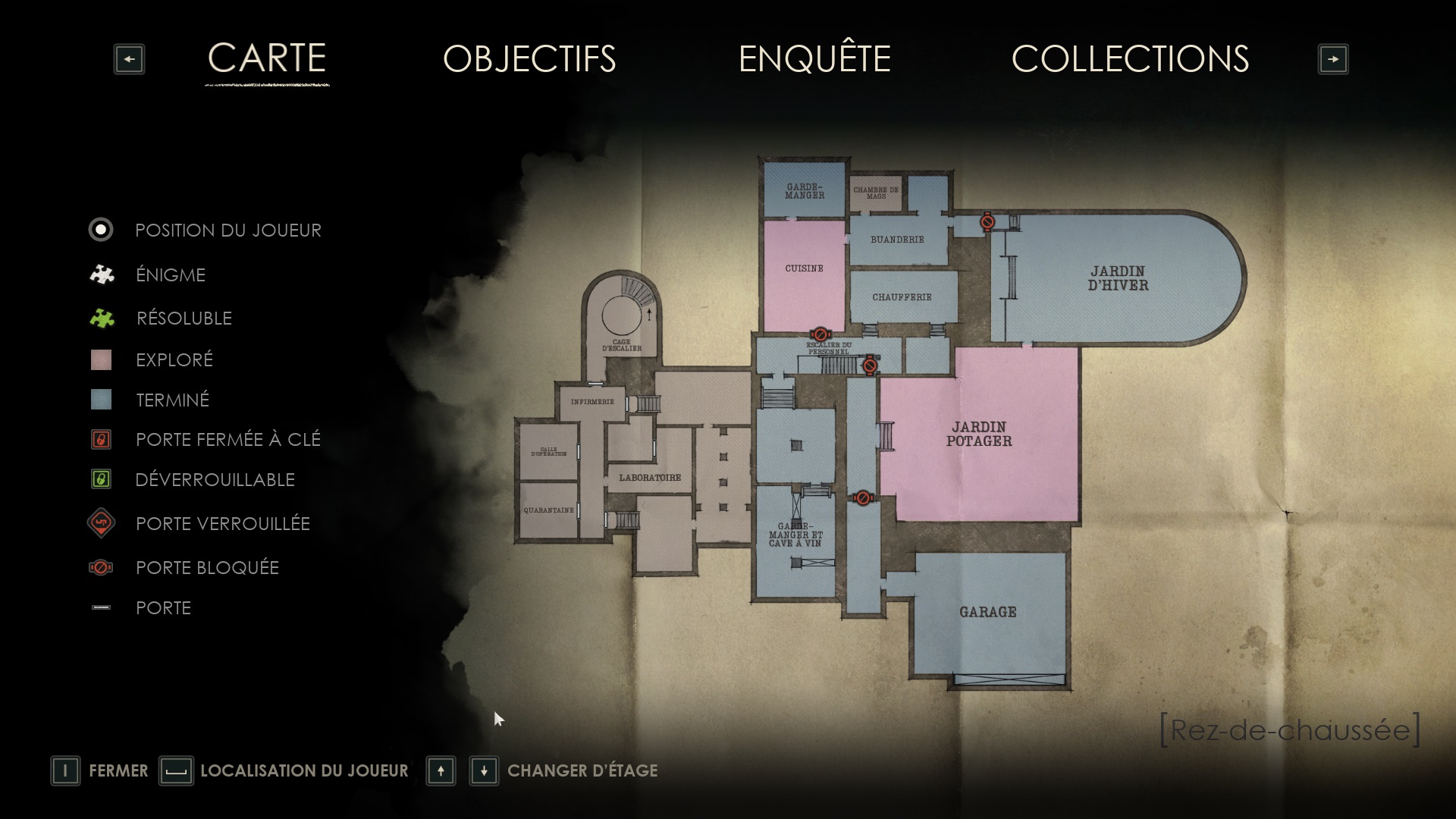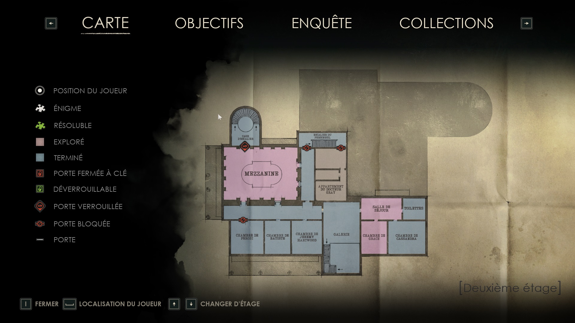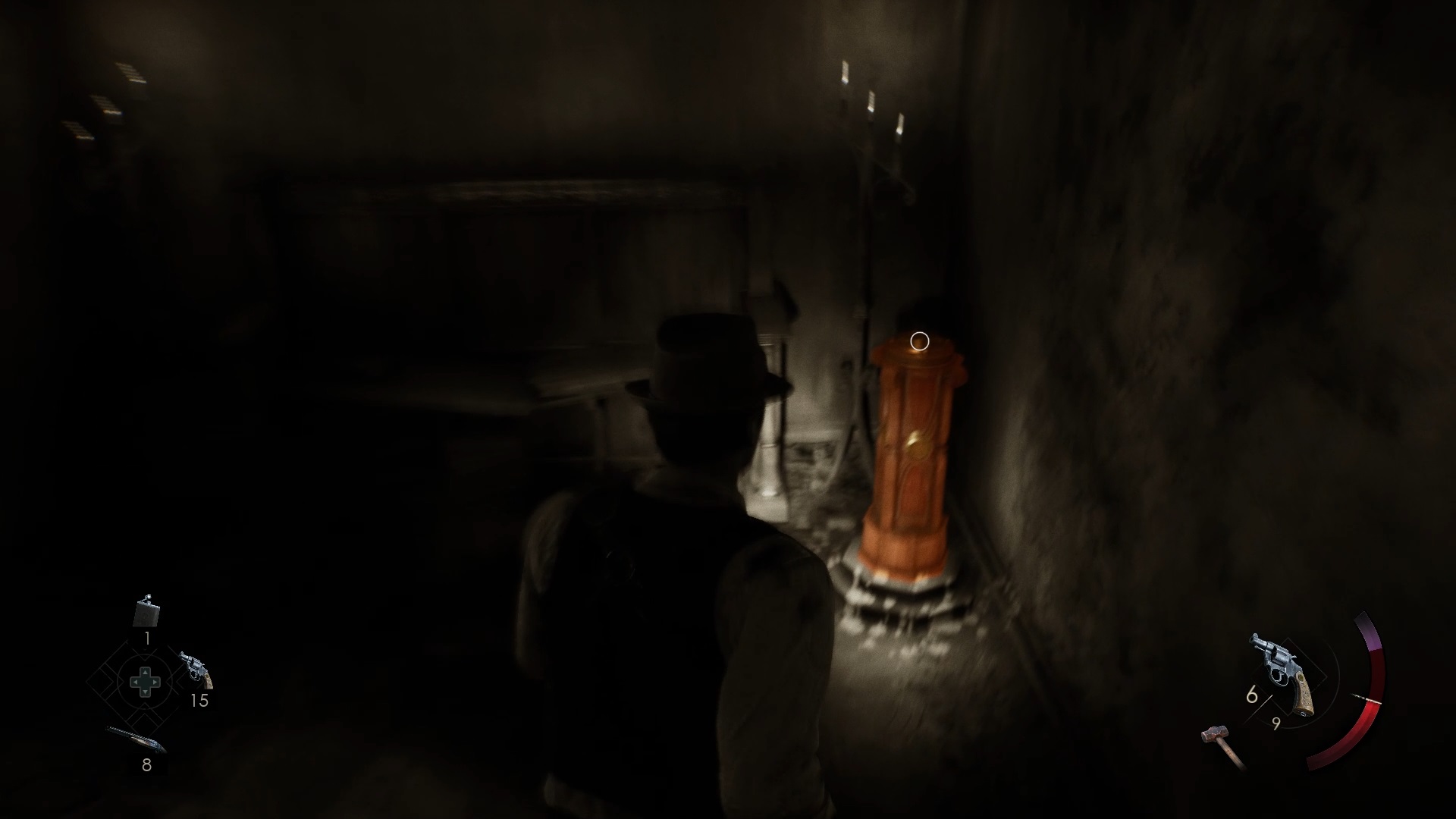 Le rez-de-chaussée est plongé dans l’obscurité. Récupérez une valve dans la cave à vin, sur une cuve, puis dirigez-vous vers le couloir de la chaufferie. Utilisez la valve sur la chaufferie et avancez jusqu’au fond pour trouver le corps de Jérémy et une pièce brisée. Ensuite, montez au deuxième étage dans le hall d’escalier pour déverrouiller la porte d’un couloir.