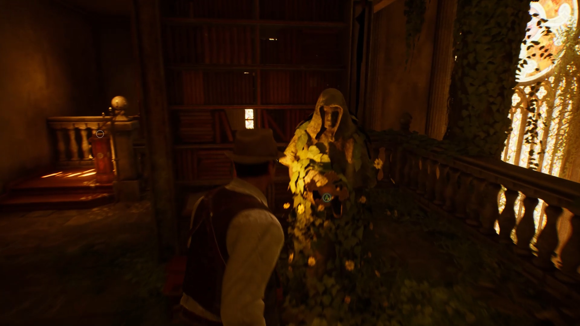 Après la cinématique, passez la double porte pour trouver une faille. Plongez à l’intérieur pour atteindre une bibliothèque. Montez grâce aux escaliers pour trouver une statue avec une clé.
