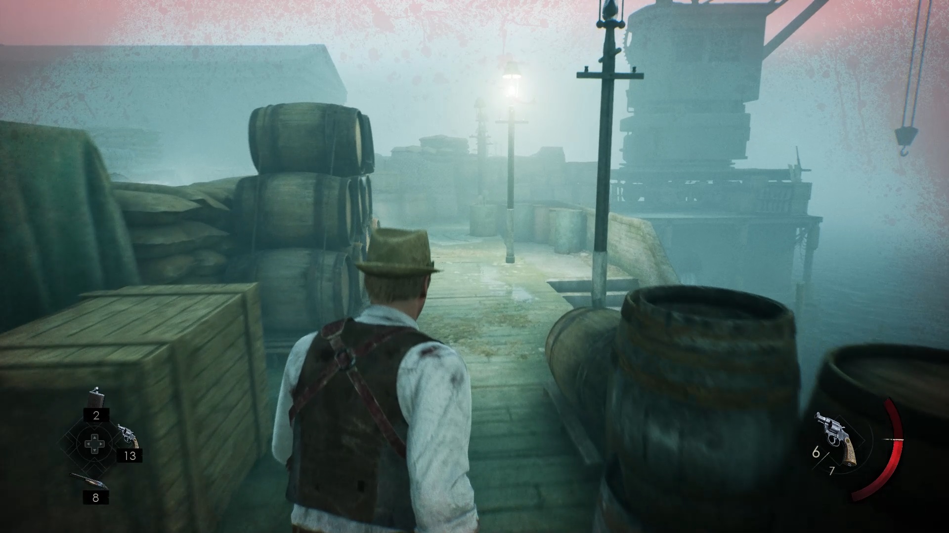 Vous avez voyagé jusqu’au port. Attention, ce lieu est rempli de monstres. Utilisez les armes à proximité pour vous défaire des ennemis. Ensuite, recherchez un camion allumé pour trouver derrière un bâtiment une échelle. Montez l’échelle et descendez à l’intérieur du bâtiment en passant par un trou. Récupérez près de la porte d’entrée la clé de la manutention.