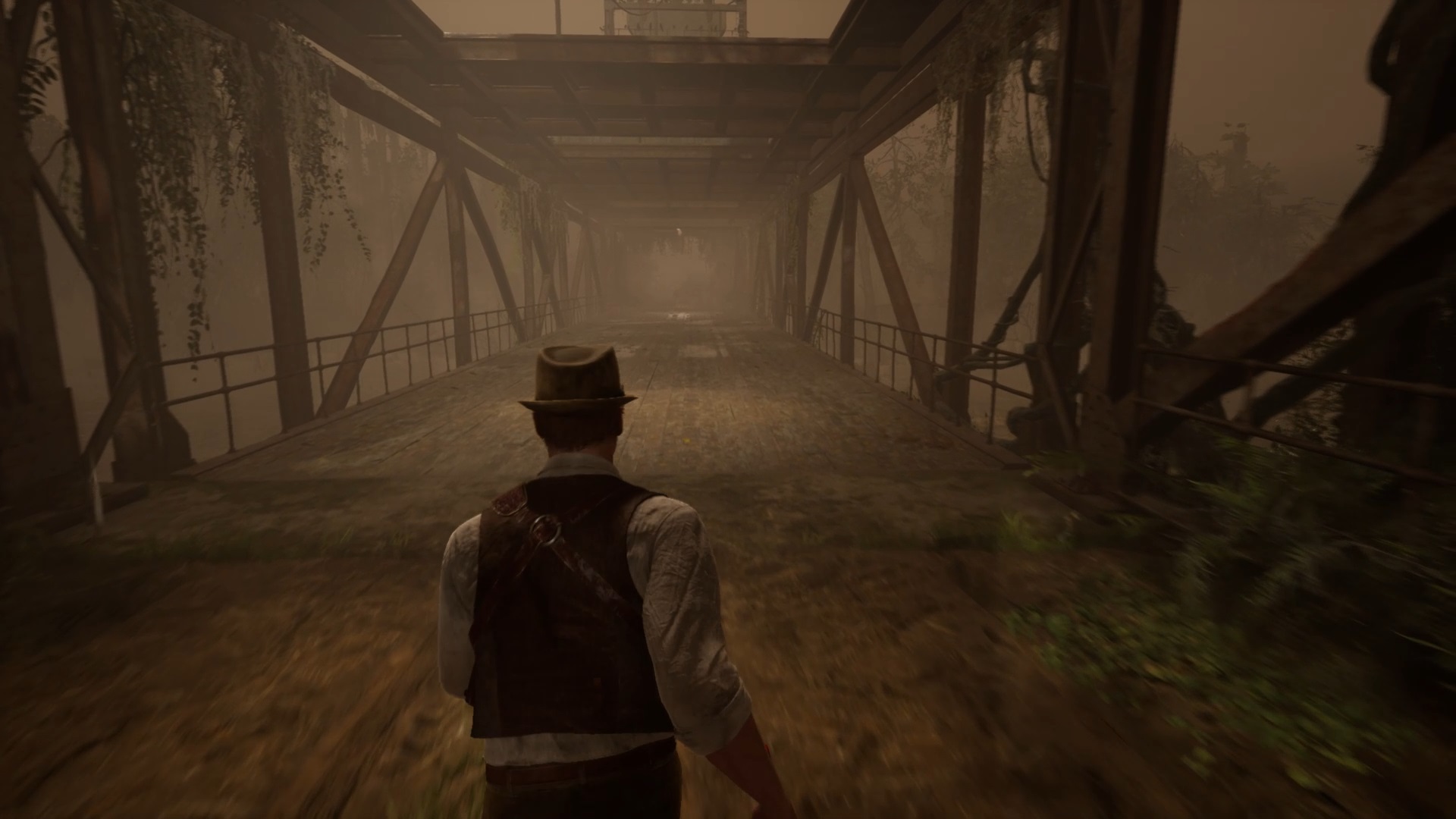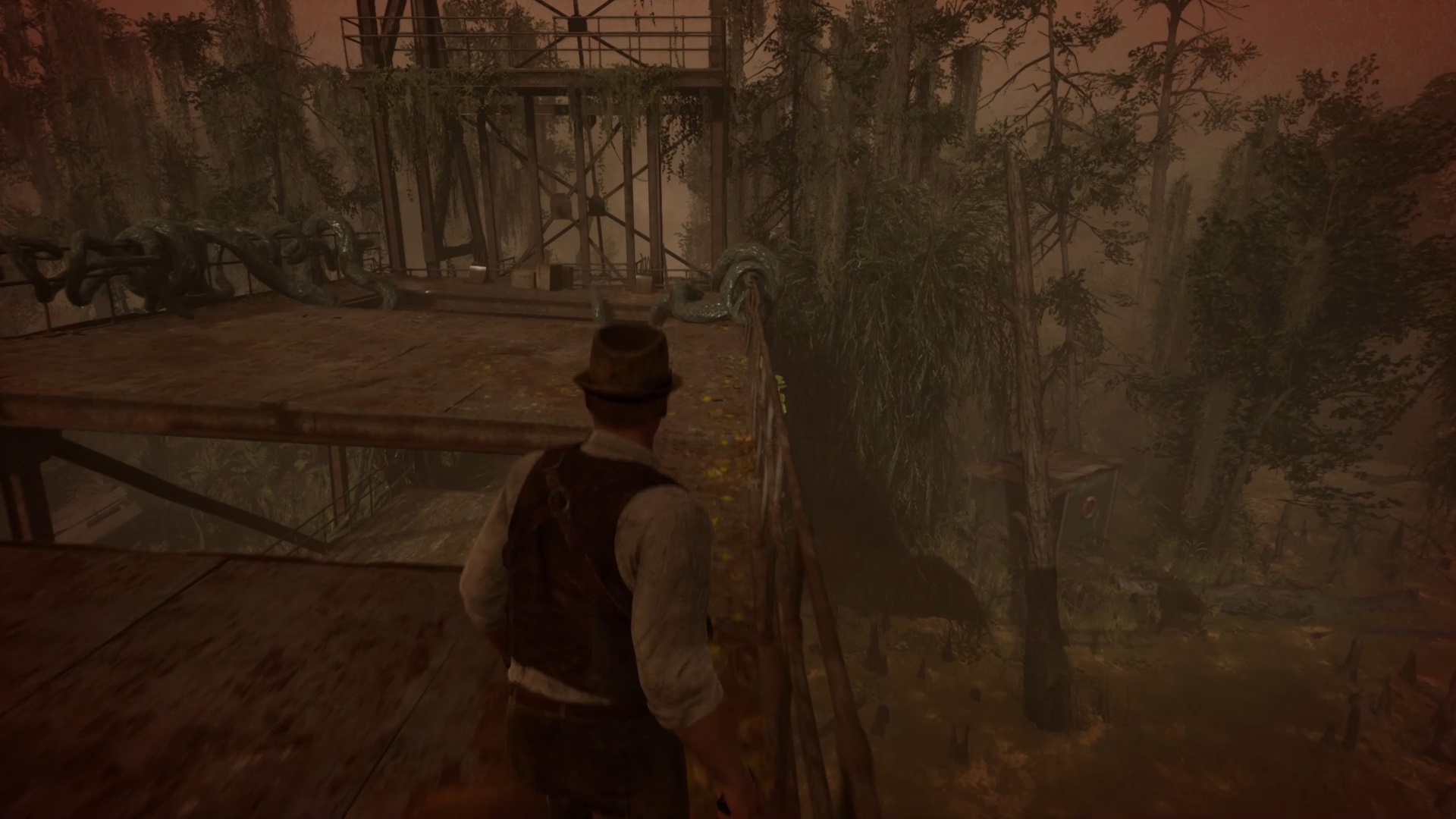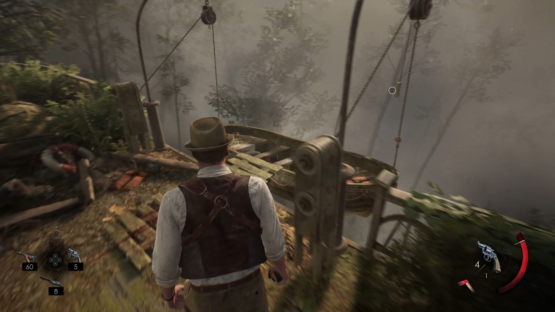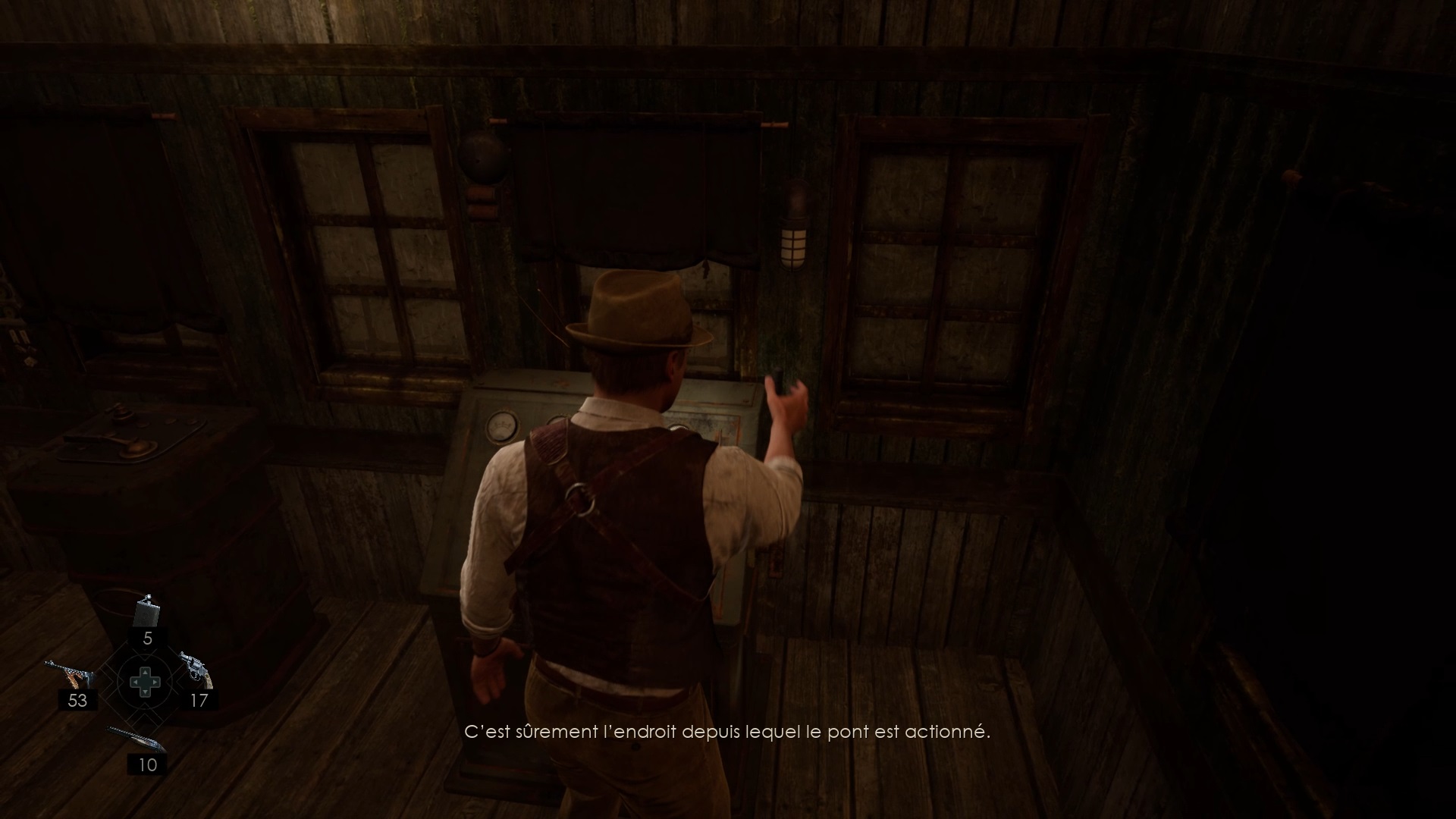 Au pont de Pearl River, faites le tour de la cabane pour trouver un chemin jusqu’au pont. Après la cinématique, montez l’escalier pour atteindre les hauteurs. Tirez le levier de la cabine pour faire apparaître des lianes autour du pont supérieur. Débarrassez le pont des lianes avec votre arme pour pouvoir réactiver le levier. Retournez ensuite au bateau du départ pour finir le souvenir.