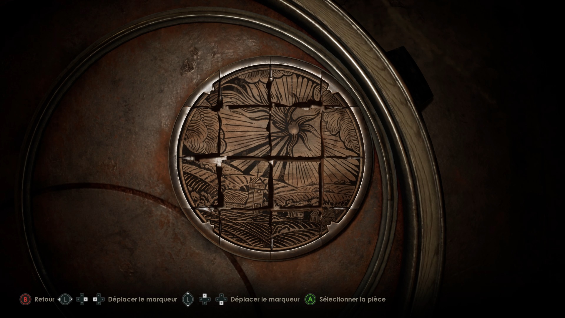 Après avoir ouvert la porte blanche dans le couloir au pied du second escalier, passez la seconde porte pour accéder au hall d’entrée, où une cinématique se déclenche. Dans la chambre, prenez le premier indice, un carreau peint. Utilisez ce carreau peint sur le puzzle situé à l’arrière. Alignez les carreaux pour former l’image ci-dessus.