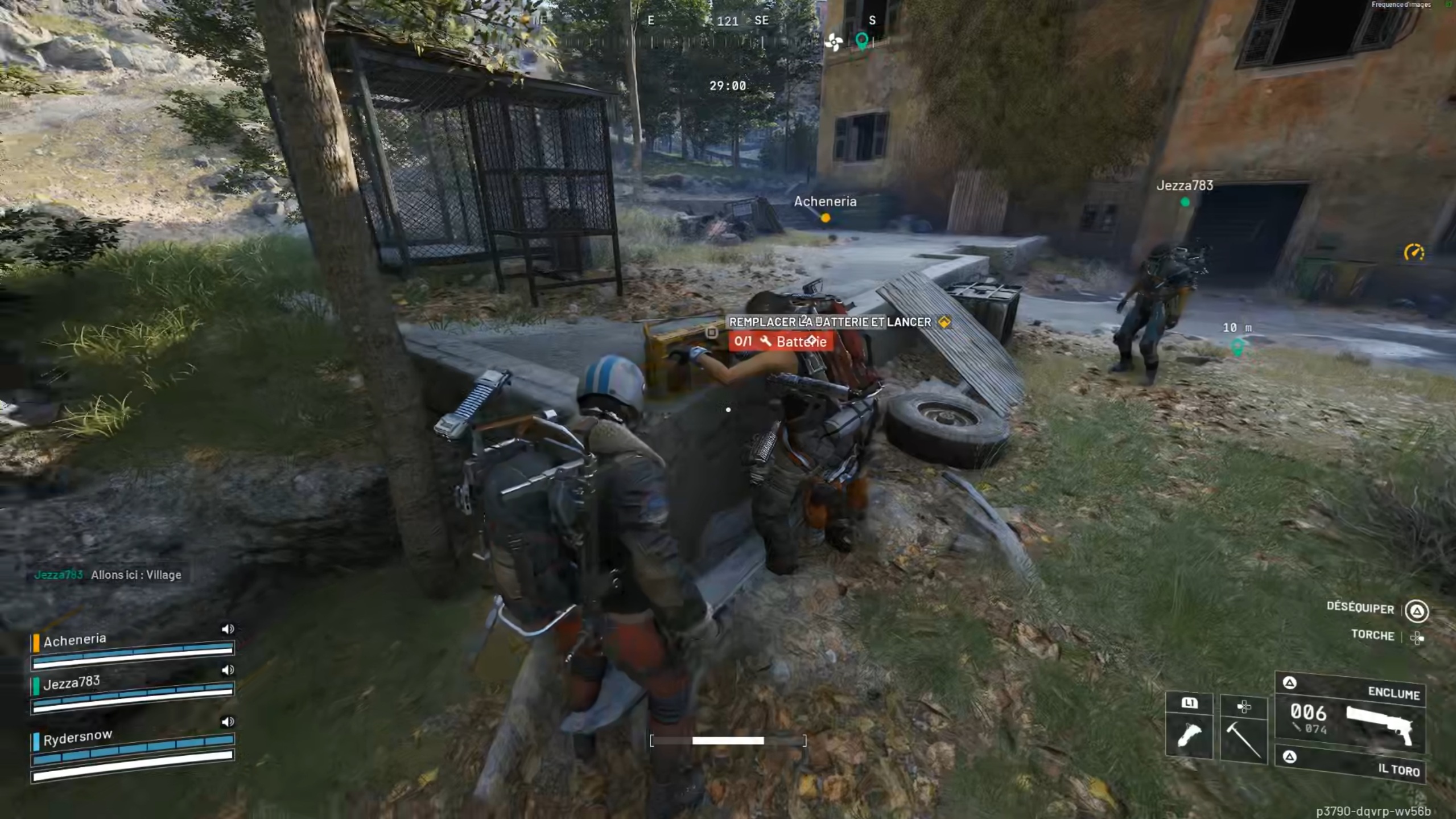 Sur place, commencez par réparer et déclencher la sirène d’urgence. Pour cela, dirigez-vous au nord du point de contrôle indiqué sur votre carte afin de repérer un bâtiment bleu, reconnaissable à son antenne allumée sur le toit. Une fois identifié, utilisez la tyrolienne reliée au toit pour atteindre le sommet, puis utilisez les câbles pour réparer le dispositif et activer la sirène d’urgence.
