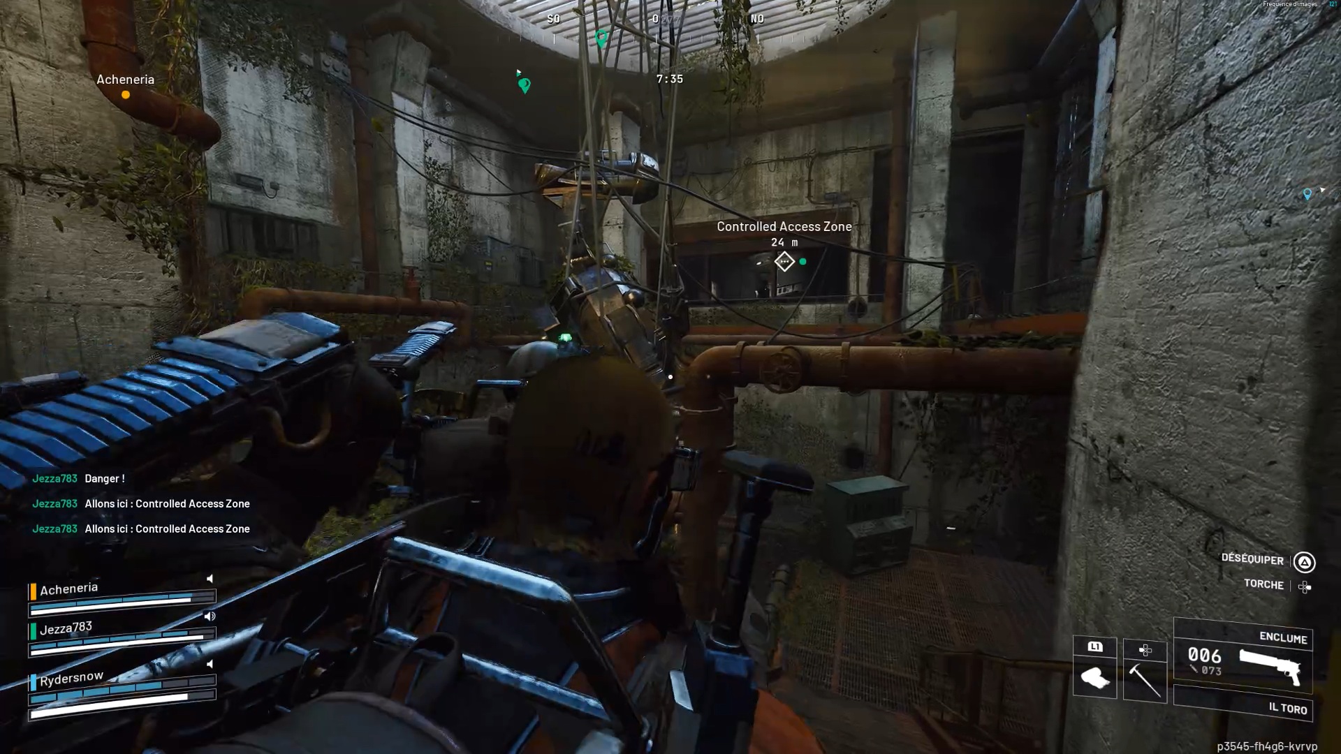 La suite de la quête « Marée montante » se déroule sur la carte du Champ de barrage. Explorez la zone du Complexe électrique pour trouver, au sud, une nouvelle zone non encore traduite intitulée « Controlled Access Zone ». Entrez dans la zone par une ouverture dans une grille. Examinez le fond du puits pour trouver une batterie. Remontez la batterie au niveau supérieur afin de l’insérer et de débloquer une salle verrouillée en face, puis prenez le tableau en photo.