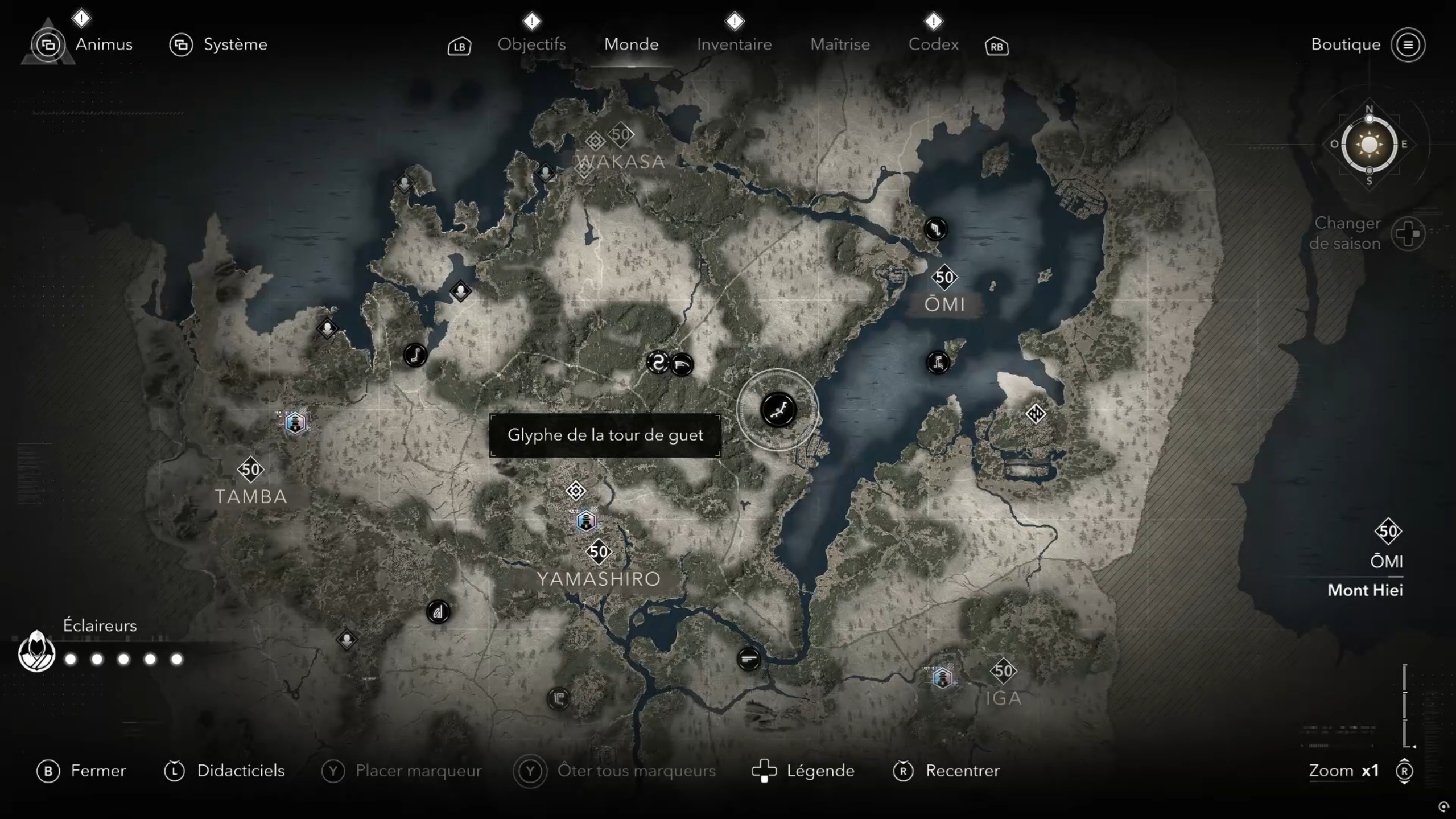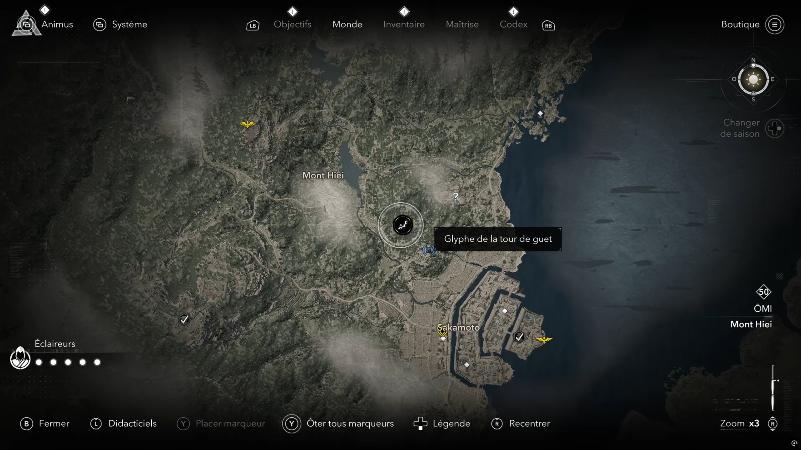 Vous trouverez le glyphe de la tour de guet à l’ouest d’Omi, au nord-ouest de Sakamoto.