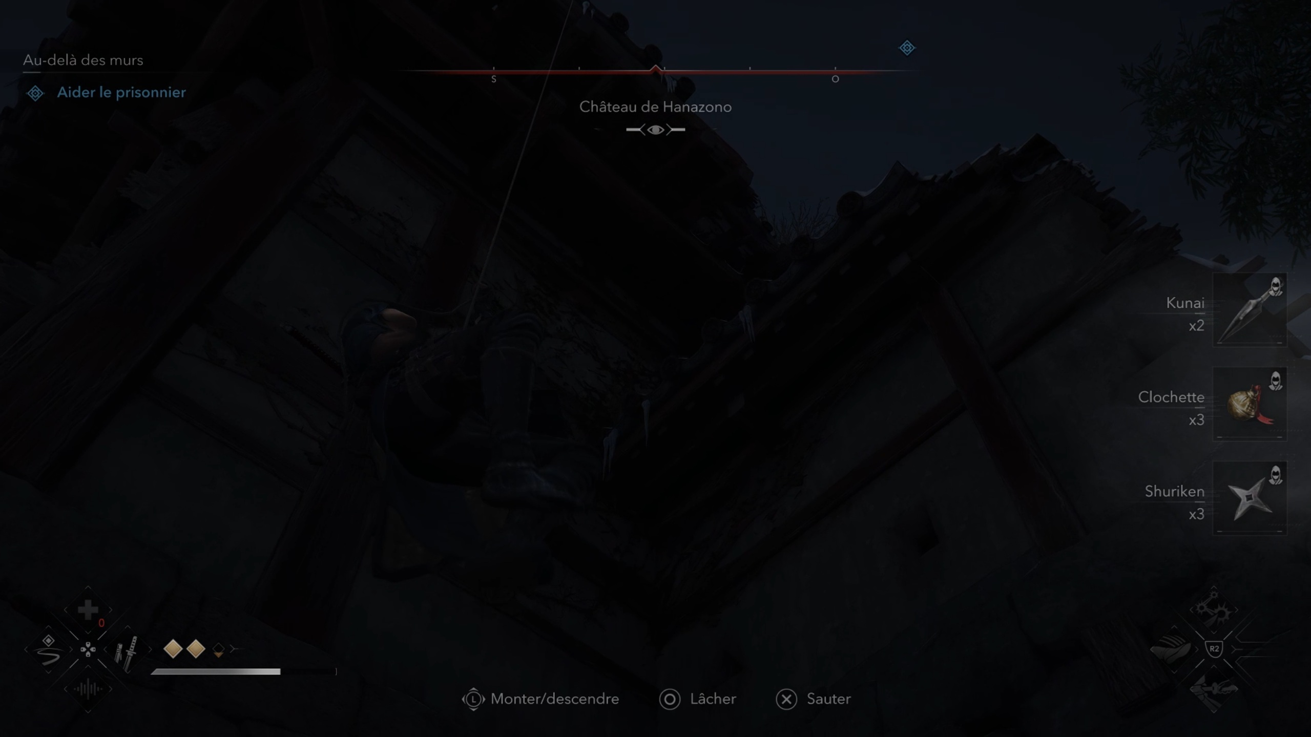 Acceptez de l’aider pour pénétrer à l’intérieur du château. Engouffrez-vous ensuite dans une faille pour trouver une ouverture par laquelle passer. De l’autre côté, utilisez un kunai sur les explosifs afin de dégager un nouveau passage. Revenez sur vos pas pour rejoindre ce passage, puis utilisez un coup fort pour briser les cristaux qui vous empêchent d’avancer.