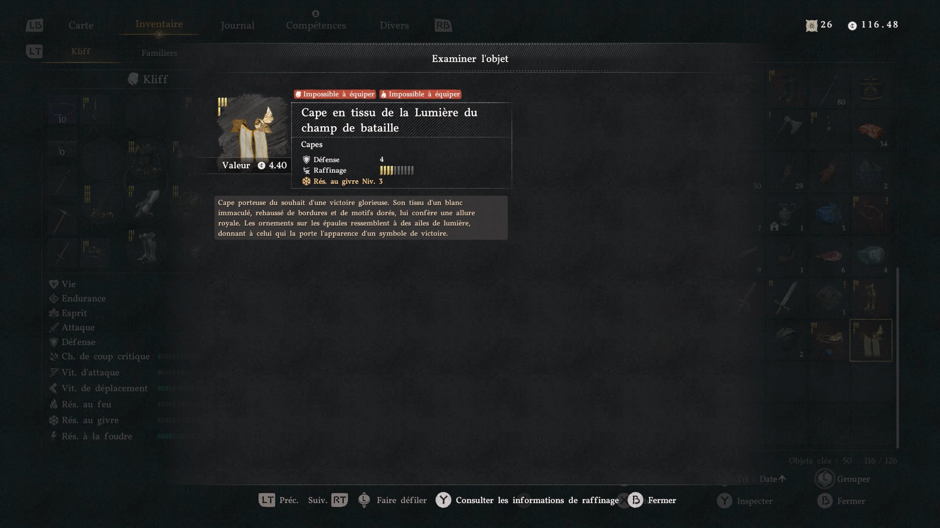 Où se situe la cape en tissu de la Lumière du champ de bataille ?
