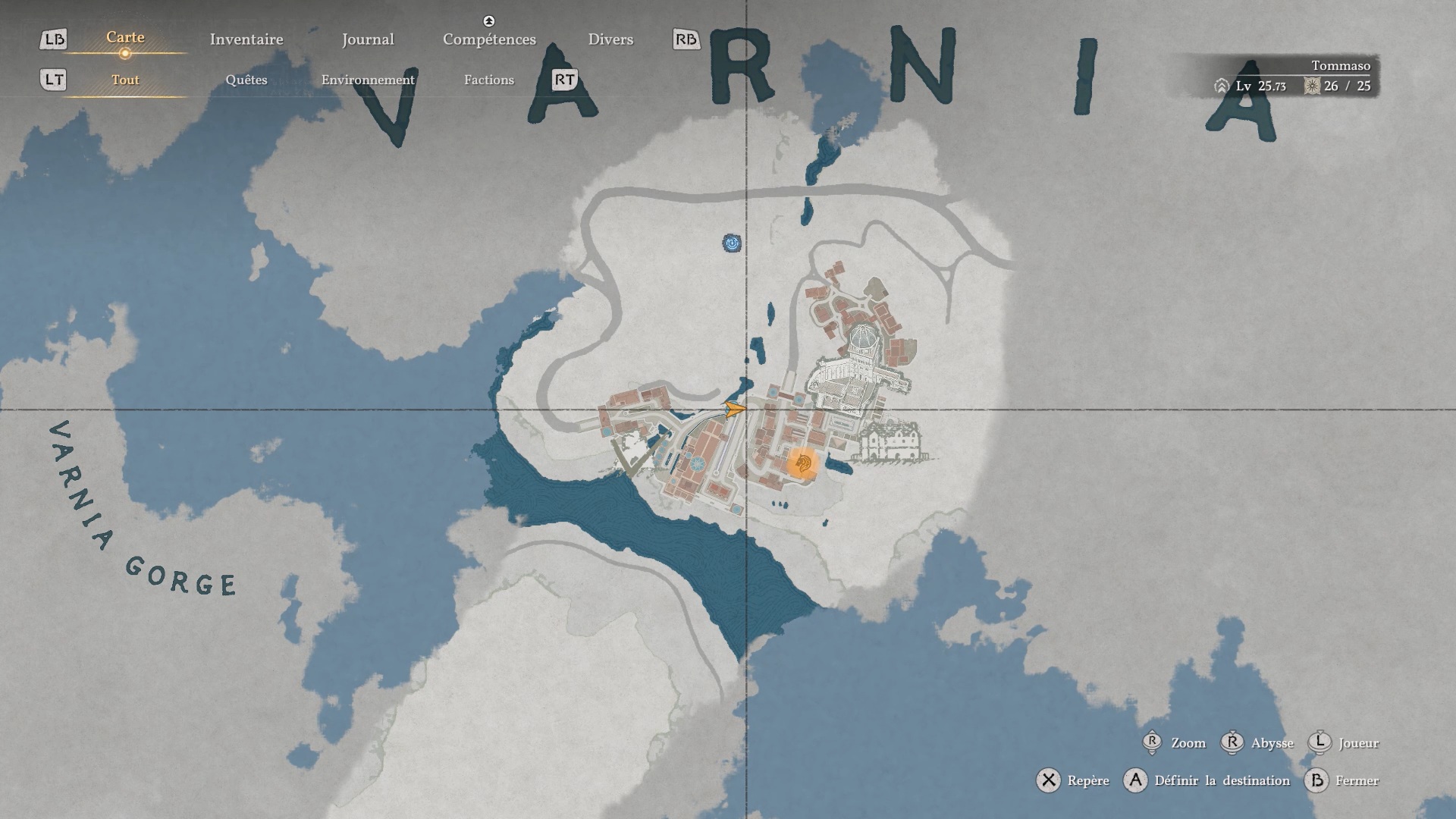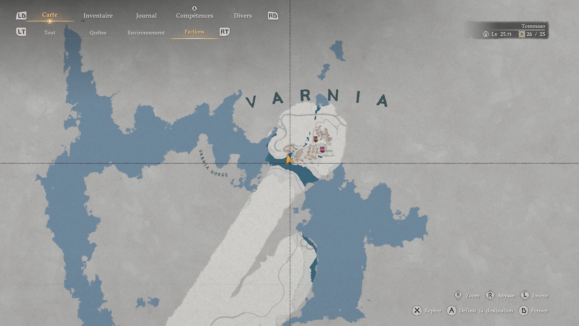 La cape en tissu de la lumière du champ de bataille se situe dans la « Grotte du Soleil », derrière une cascade au sud de la ville de « Varnia ». À l’entrée de la ville, repérez la cascade, avec une statuette composée de trois pierres à ses pieds. Une fois devant, approchez-vous de l’eau et utilisez la compétence « Perforation » pour traverser le mur d’eau. Vous accéderez alors à une grotte cachée, où se trouve le coffre contenant cette cape.
