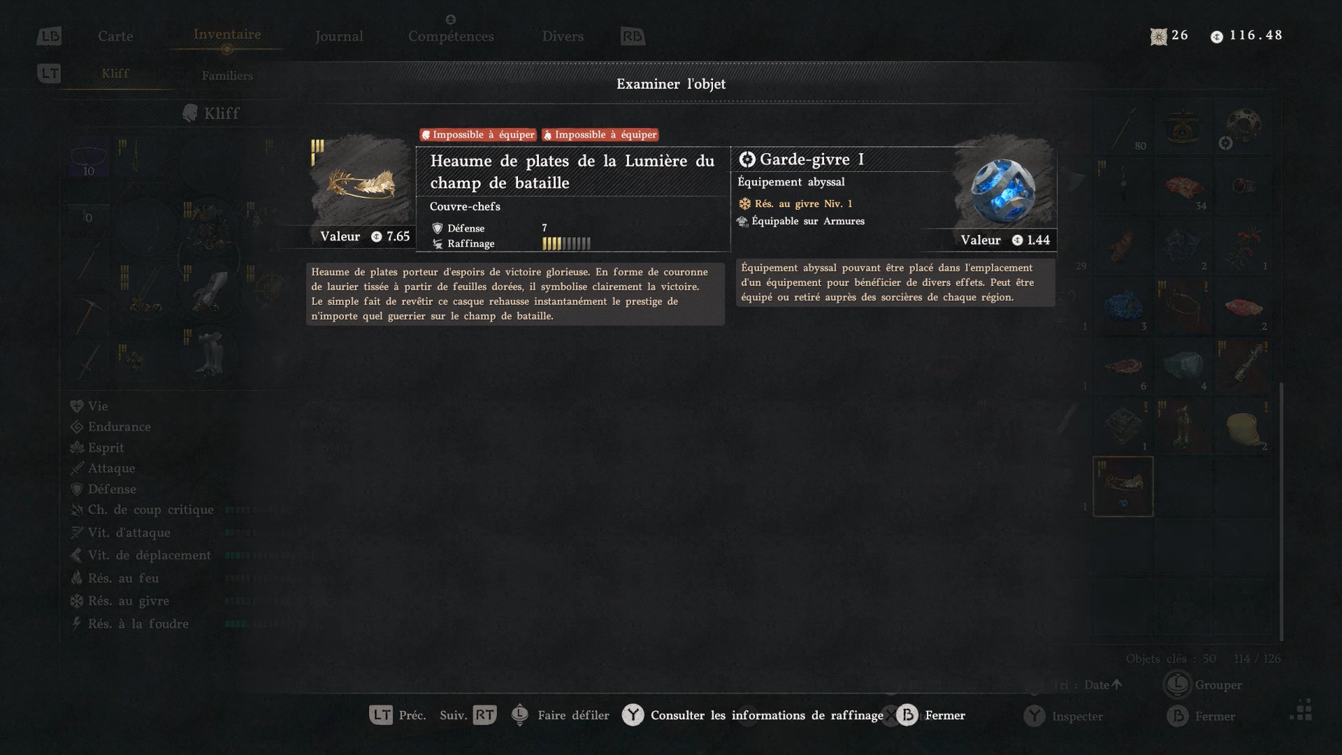 Où se situe le heaume de plates de la Lumière du champ de bataille ?
