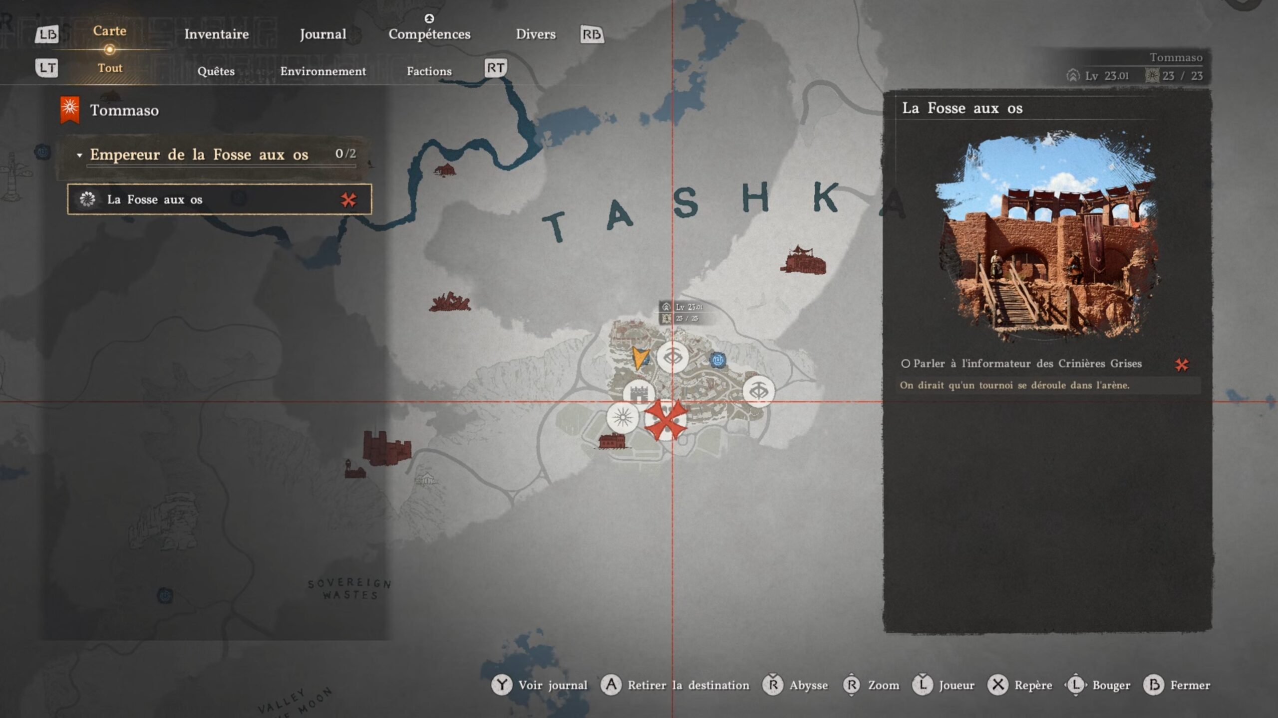 Pour obtenir les gants de plates de Dieu guerrier, vous devez terminer la quête « La fosse aux Os » dans la région de Tommaso. Cette région se situe au nord-est de la carte, sous la mention « Tashkalp ». Parlez au Crinière grise pour lancer la quête, puis dirigez-vous vers l’arène afin de débuter les combats. Une fois les deux premiers adversaires vaincus, vous terminez la quête et enchaînez avec « Duel avec l’empereur » pour le combat final. Vous devrez vaincre Muskan, le dernier adversaire, afin d’obtenir l’équipement.