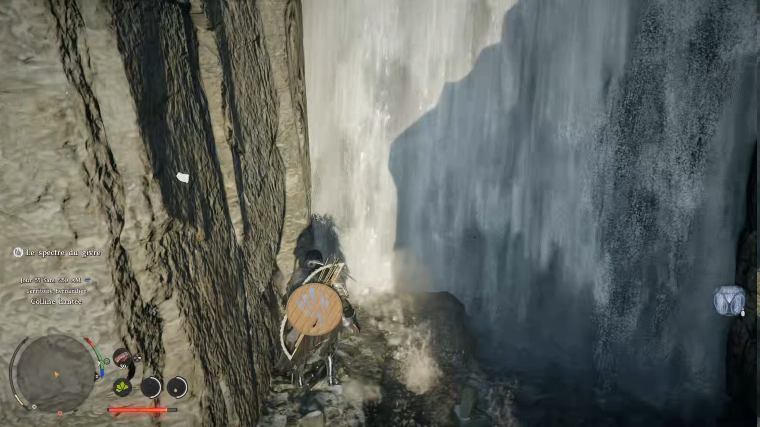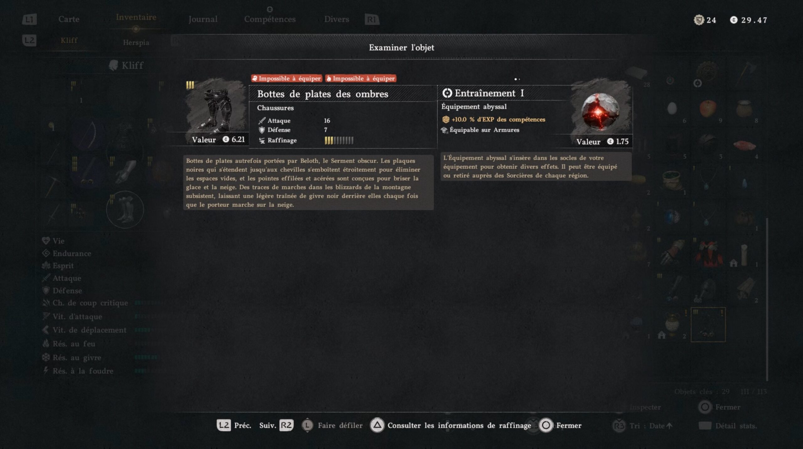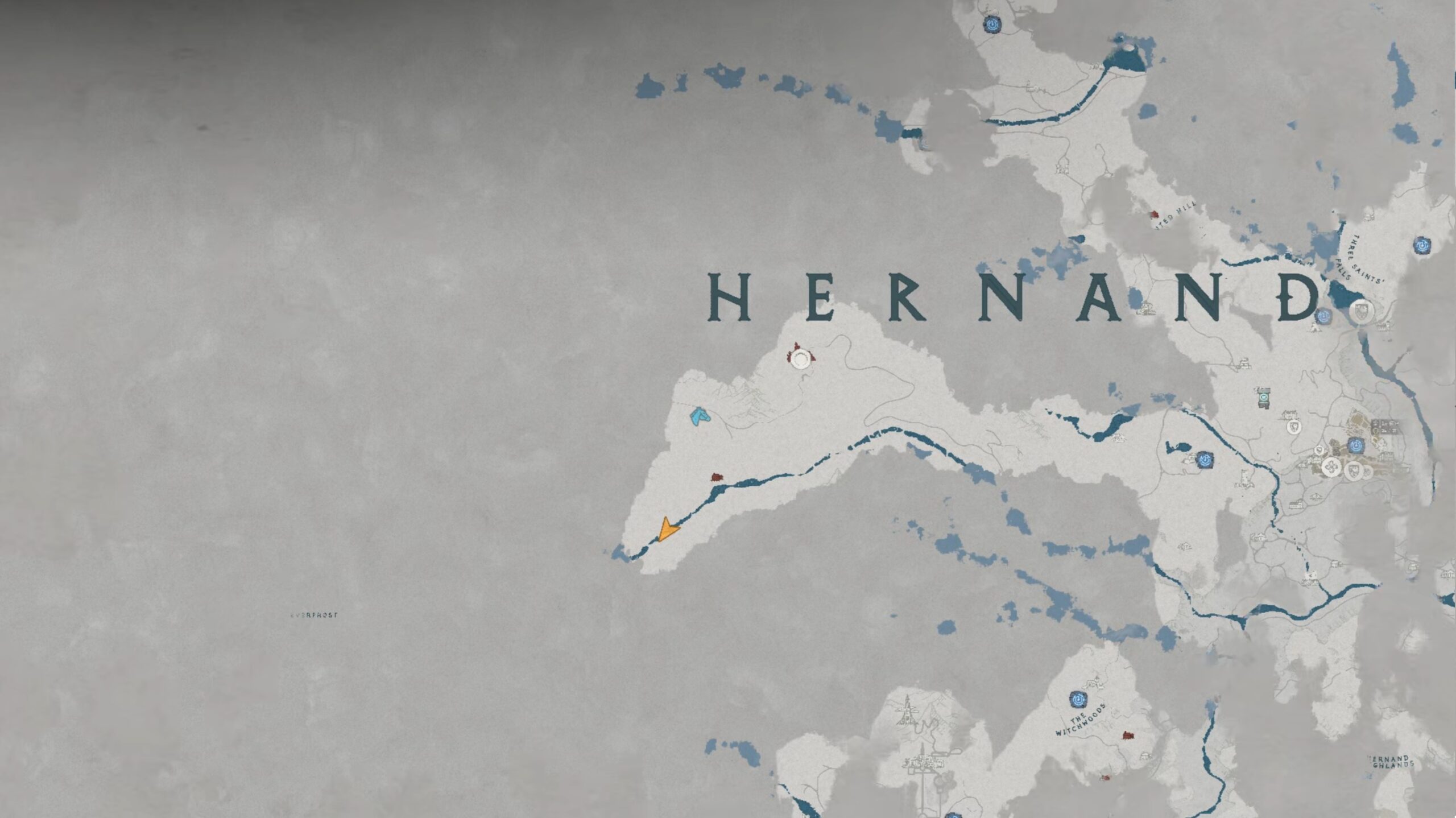 Les bottes de plates des Ombres se situent derrière une cascade au sud-ouest de la région « Hernand ». L’emplacement se trouve à gauche sous la lettre « H » du nom de la région, au nord-ouest de « The Witchwoods ». Une fois devant la cascade, approchez-vous de l’eau et utilisez le coup « Perforation » pour traverser le mur d’eau. Vous accédez alors à une grotte cachée derrière la cascade, où se trouve le coffre contenant ces bottes.