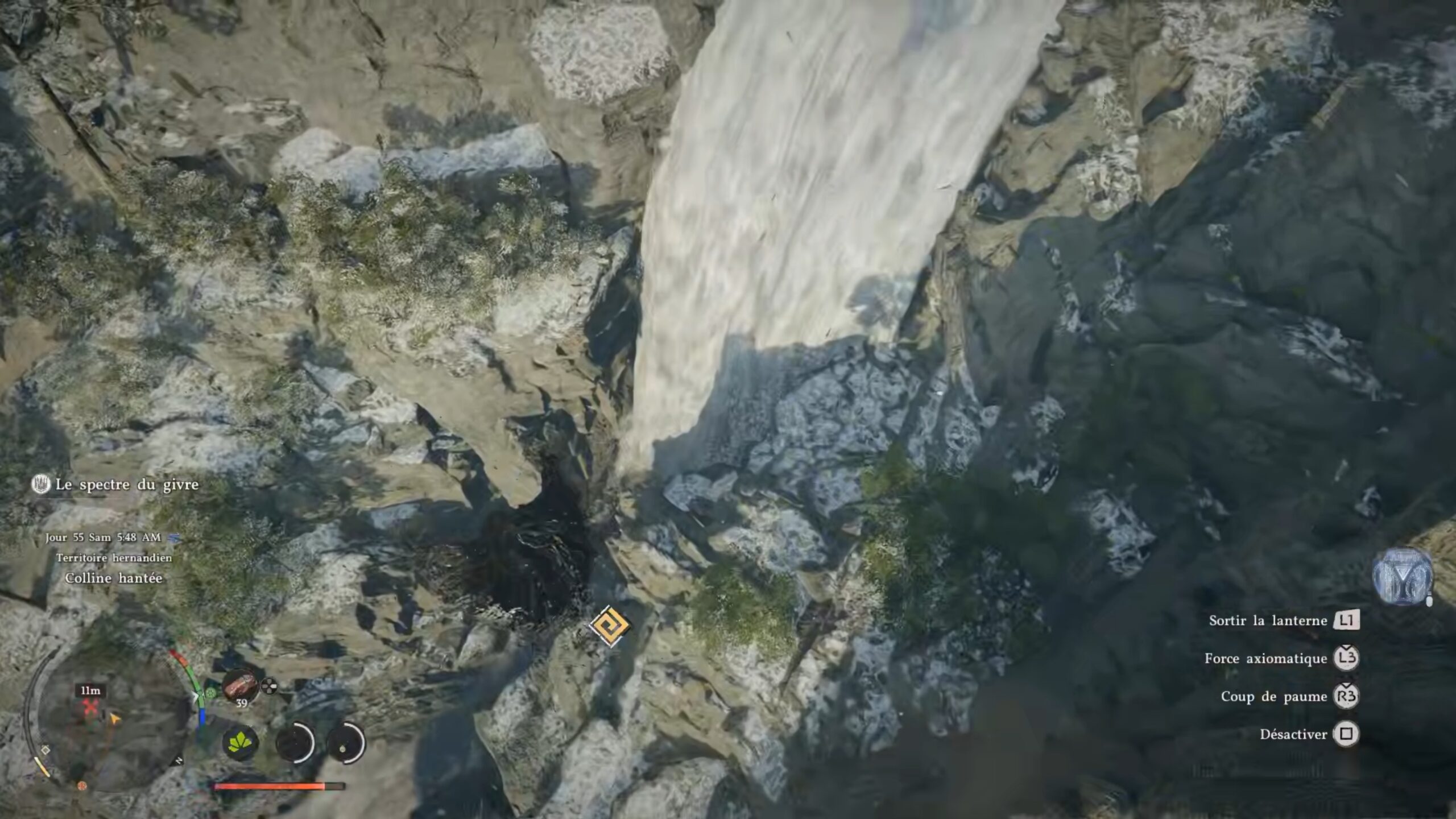 Les bottes de plates du Royaume déchu se situent derrière une cascade au sud de la région « Hernand ». L’emplacement se trouve au-dessus de la lettre « N » du nom de la région, à l’ouest de « Haunted Hill ». Une fois devant la cascade, approchez-vous de l’eau et utilisez le coup « Perforation » pour traverser le mur d’eau. Vous accédez alors à une grotte cachée derrière la cascade, où se trouve le coffre contenant ces bottes.