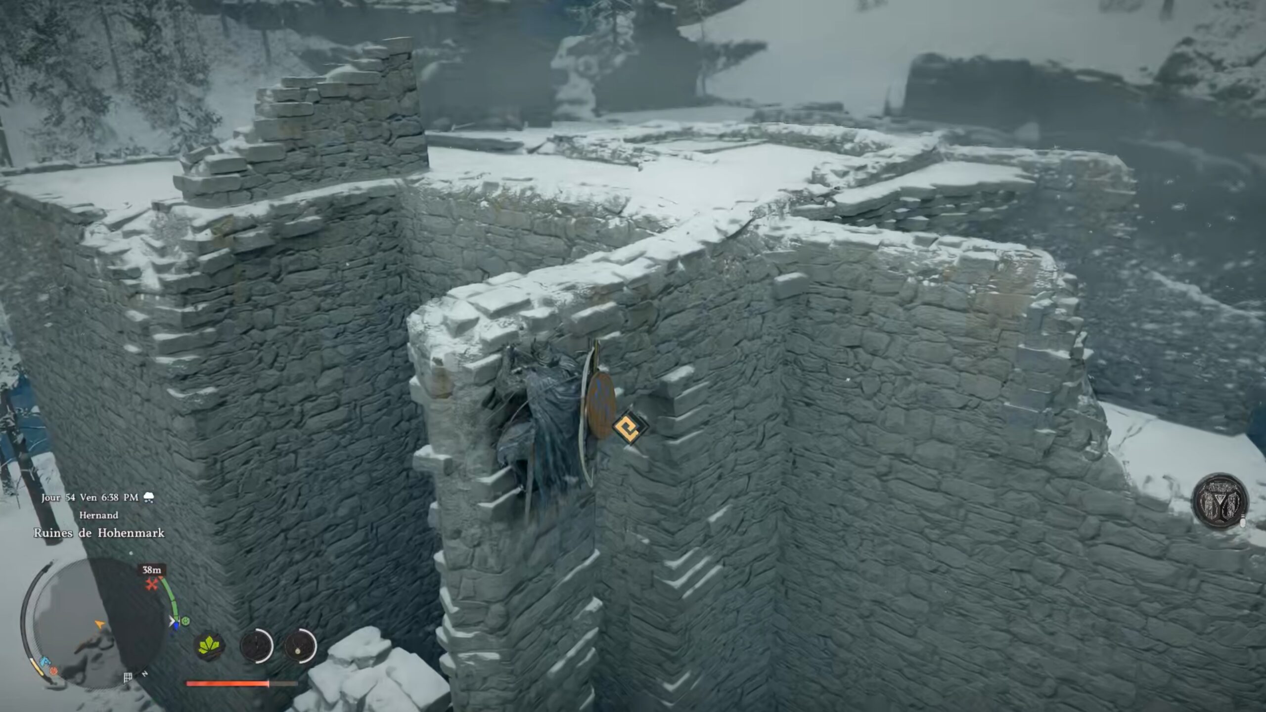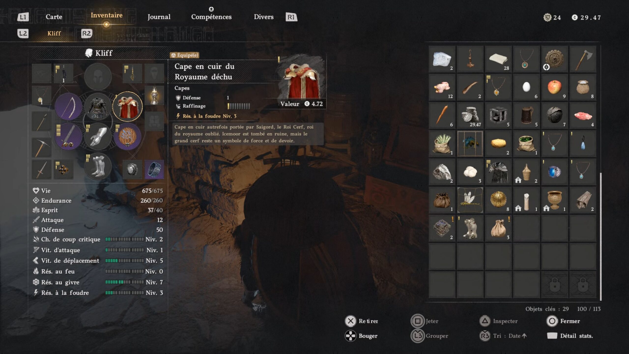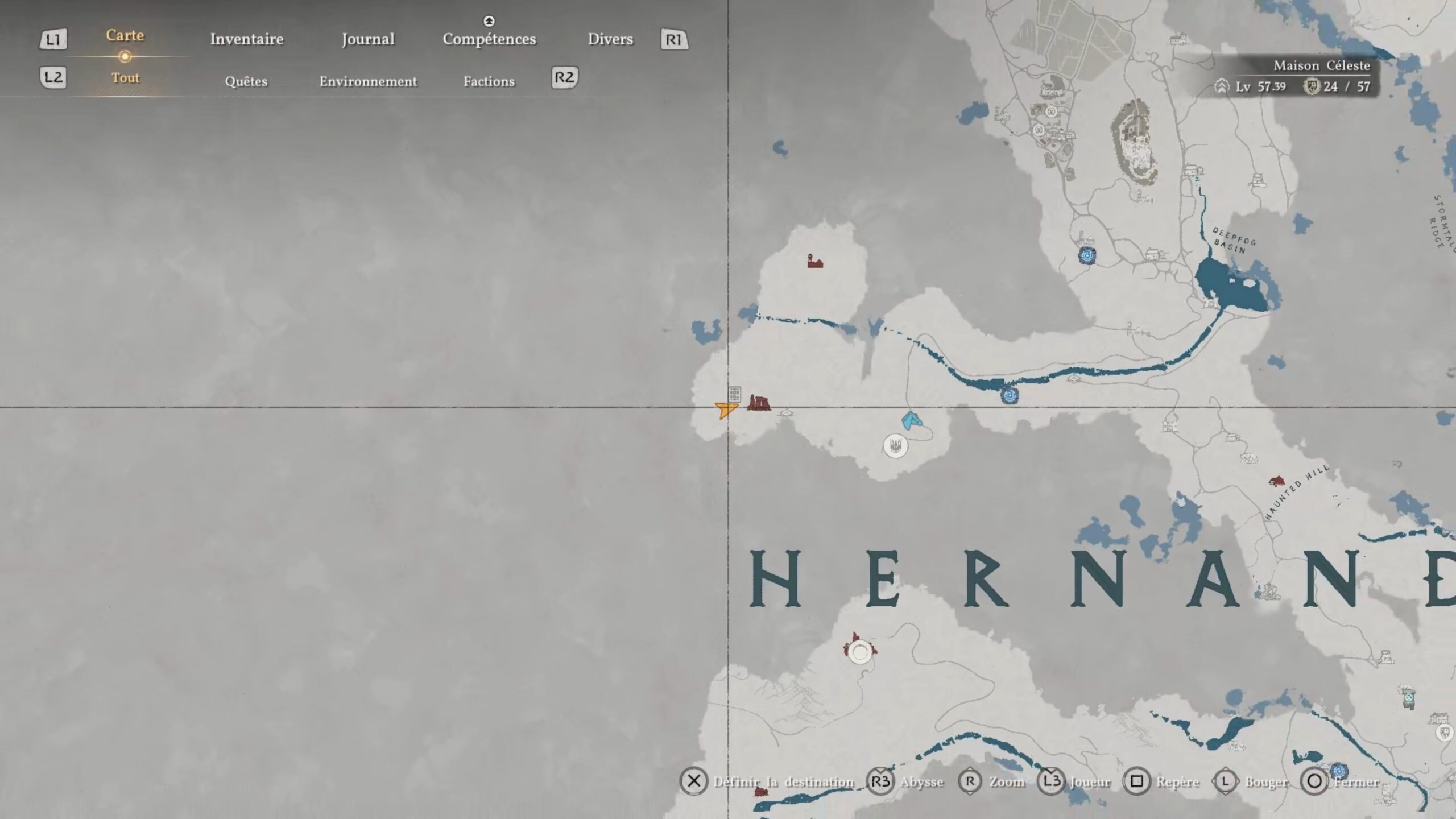 La cape en cuir du Royaume déchu se situe dans un coffre au nord des « Ruines du château de Glacelande », au centre de la région d’Hernand. L’emplacement se trouve au-dessus de la lettre « R » du nom de la région, à l’ouest de « Haunted Hill ». Dirigez-vous vers le centre-nord des ruines pour trouver un mur avec un trou. Accroupissez-vous pour vous y engager. Vous serez bloqué par des planches : utilisez le coup de paume pour libérer le passage et atteindre le coffre contenant l’équipement.