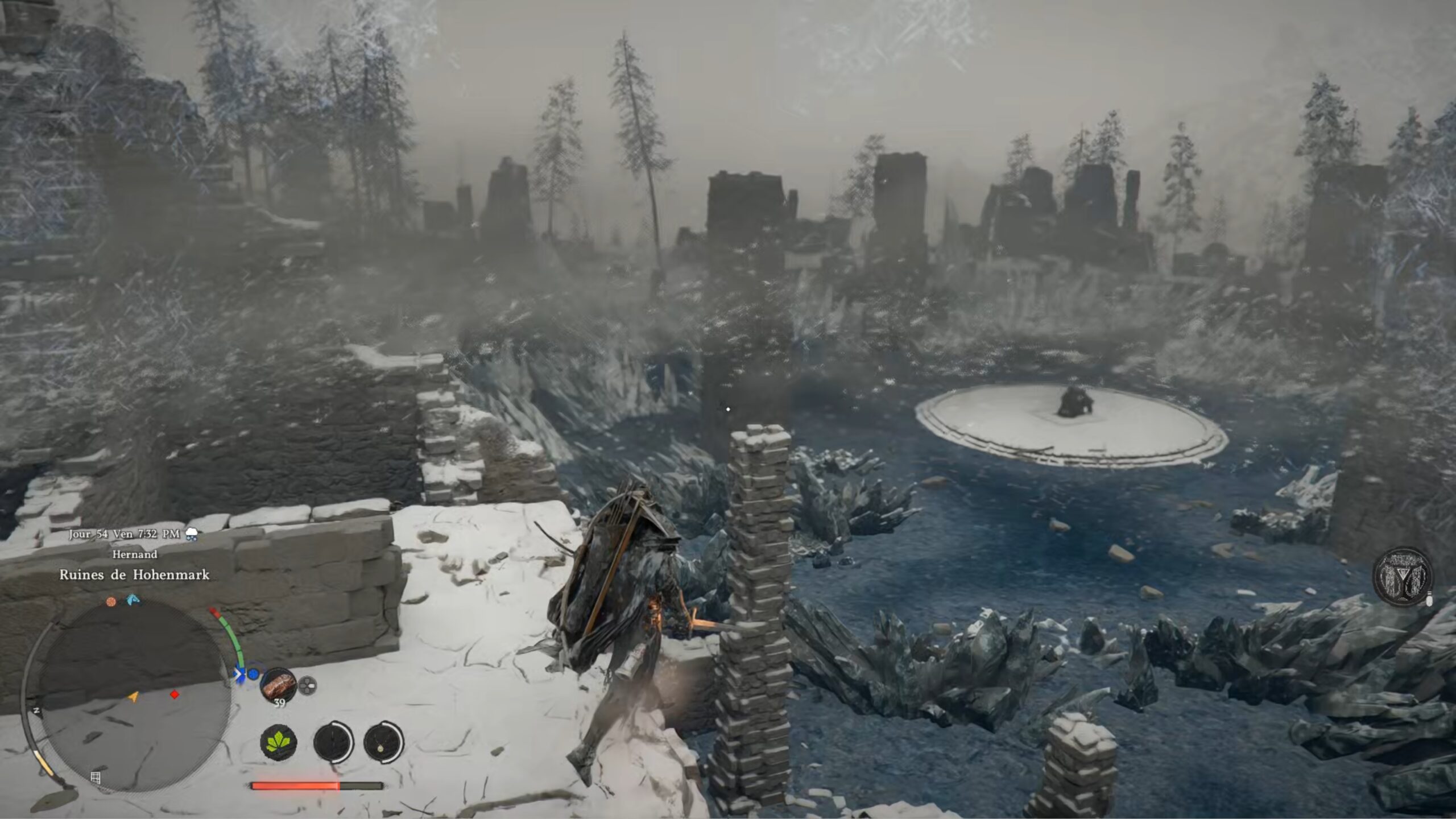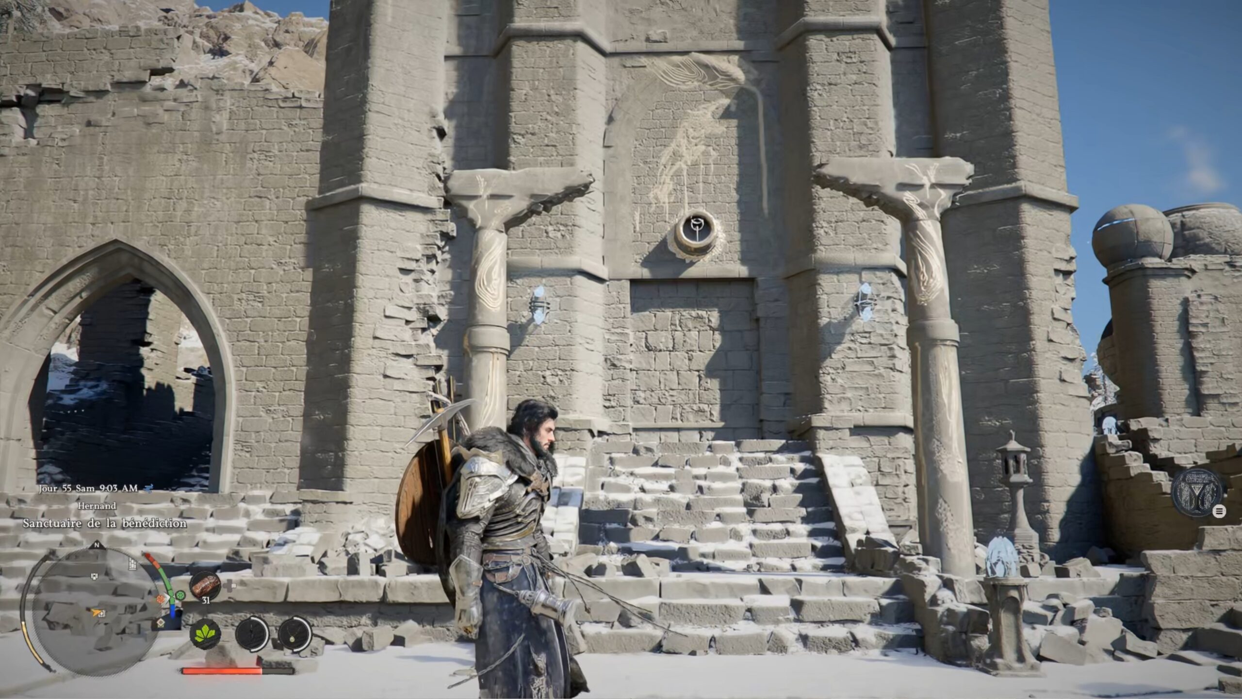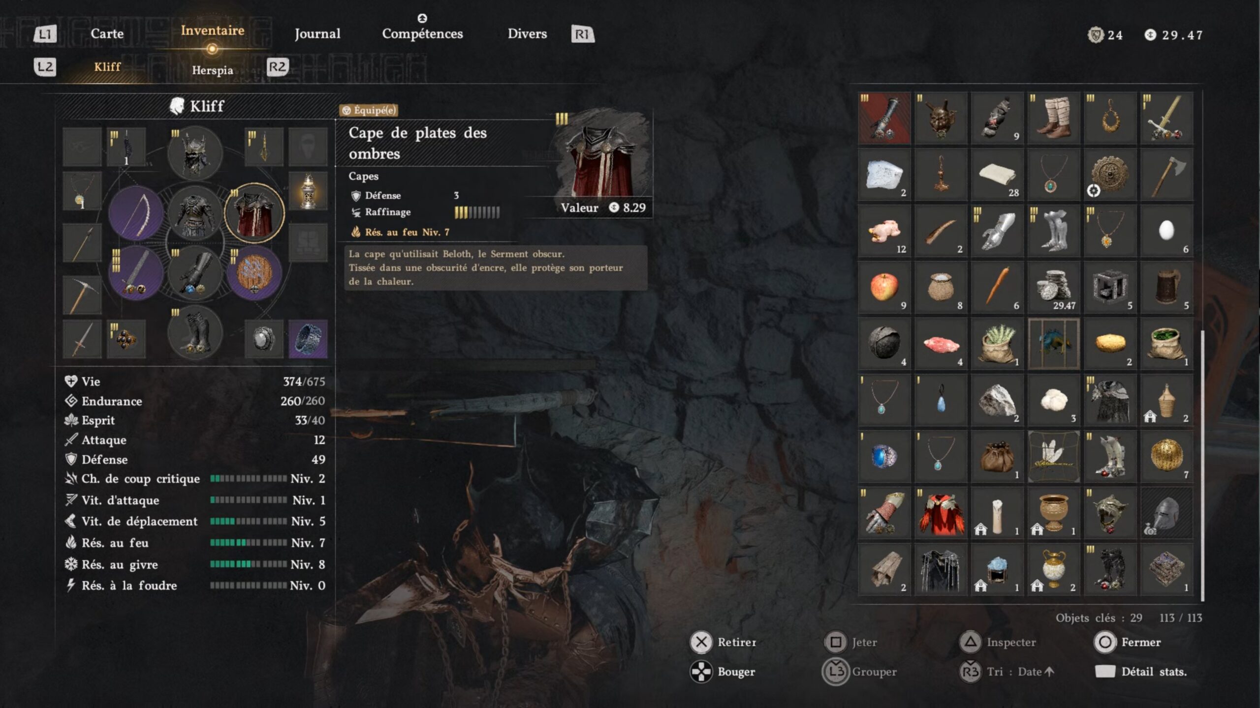 La cape de plates des Ombres se situe dans un coffre au centre de la région « Hernand ». L’emplacement se trouve au-dessus de la lettre « H » du nom de la région, au niveau des « Ruines de Hohenmark ». Dirigez-vous vers l’ouest des ruines, en direction du bâtiment le plus élevé et le mieux conservé de la zone. Sur son toit, vous trouverez une dalle au sol à l’aspect distinct, composée de briques. Accroupissez-vous, puis utilisez le coup de paume pour la briser. Il ne vous reste plus qu’à récupérer le coffre situé au fond des ruines.