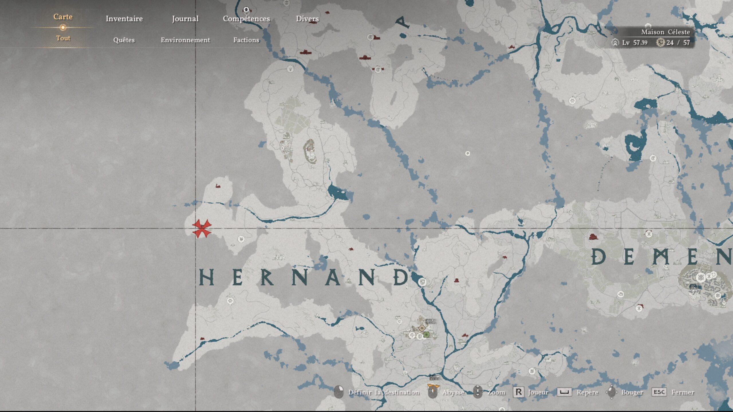 L’armure de plates des Ombres se situe dans un coffre au centre de la région « Hernand ». L’emplacement se trouve au-dessus de la lettre « H » du nom de la région, au niveau de la « Tour de guet de la Montagne de l’Hiver ». Dirigez-vous au sud-ouest des tours pour trouver une grille scellée avec un flambeau à côté. Allumez le flambeau pour ouvrir le passage et accéder au coffre contenant l’armure.