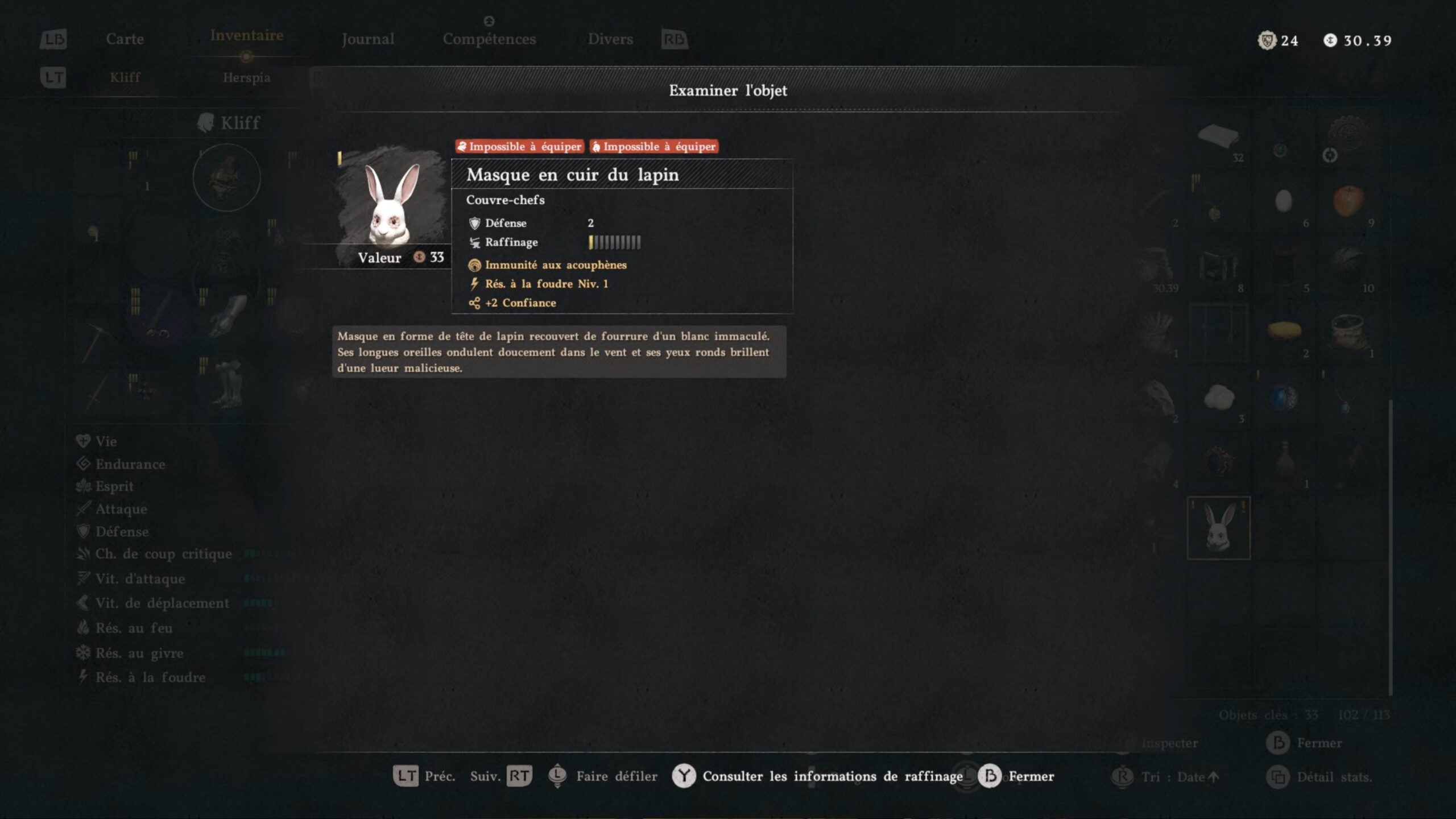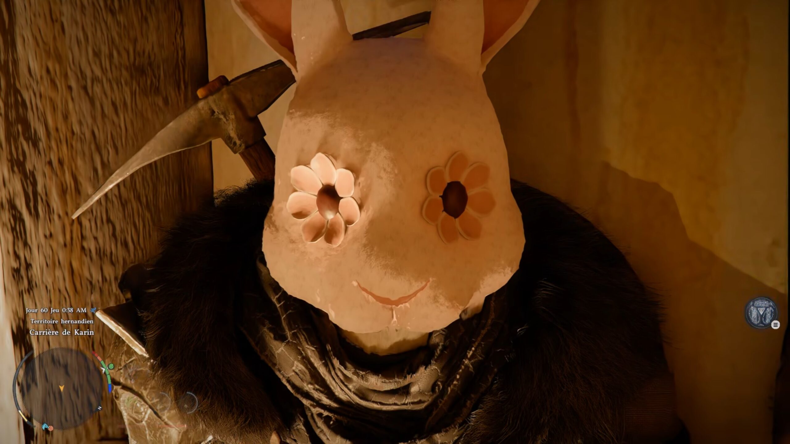 Le masque en cuir du lapin est situé dans le chantier de la « Carrière de Karin », à l’est de la région « Hernand », au nord de « Rocca’s Hill »