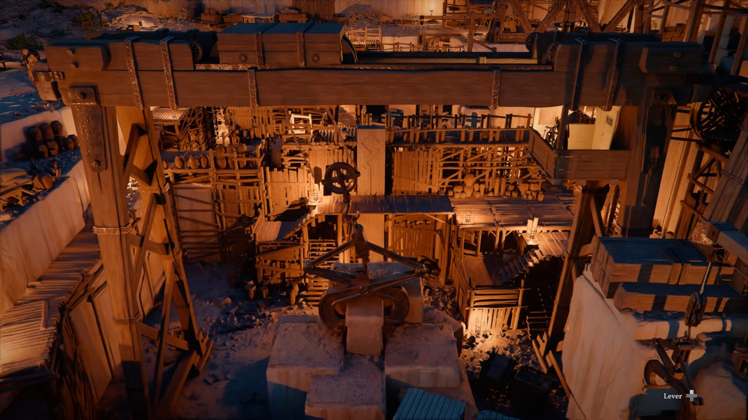 Dans la carrière, rendez-vous dans la tour de contrôle de la grue. Vous trouverez une échelle en bas à gauche de la grue pour monter dans la tour. Une fois aux commandes, déplacez le petit bloc de pierre au centre grâce à la grue. Une fois le bloc déplacé, descendez dans le trou créé afin d’obtenir le coffre contenant le masque.