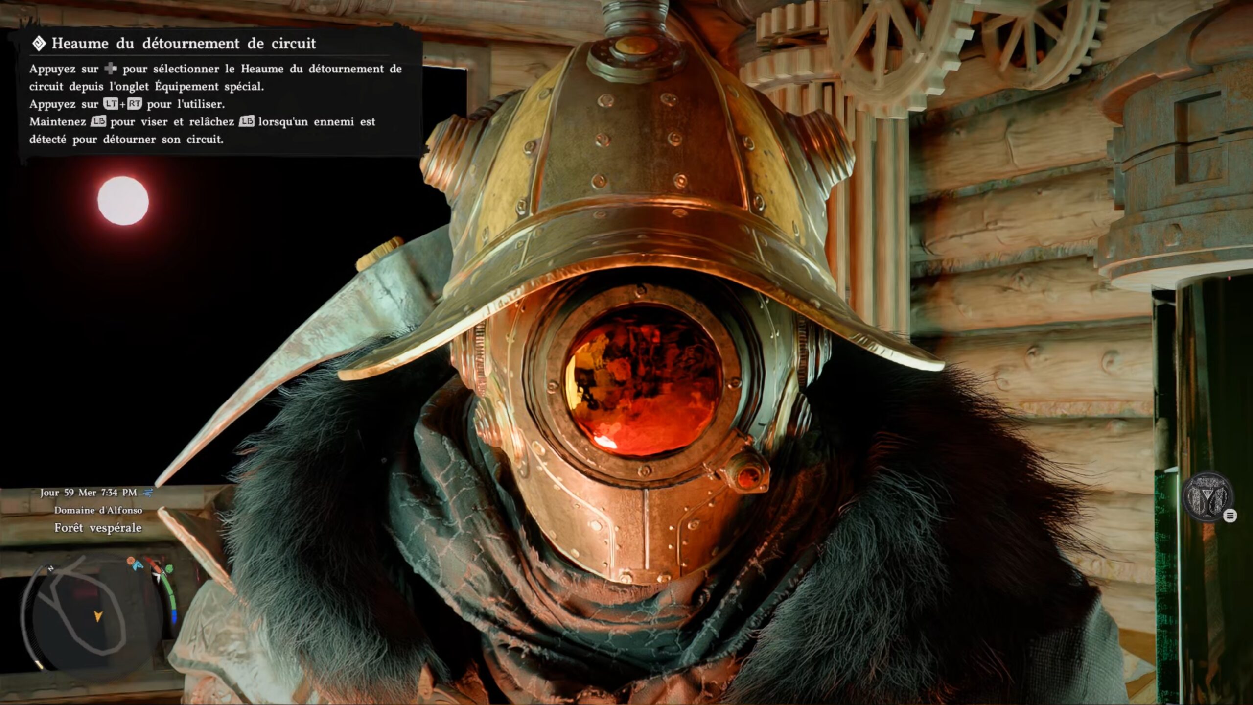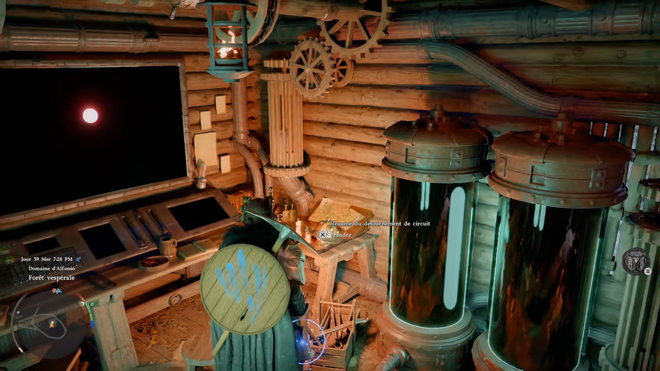 Le heaume du tourment de circuit se trouve dans la « Cabane aux machines », au sud de la région « Hernand ». La cabane est située à l’ouest de la ville de Hernand. Entrez dans la cabane au centre pour trouver le heaume posé sur un bureau.