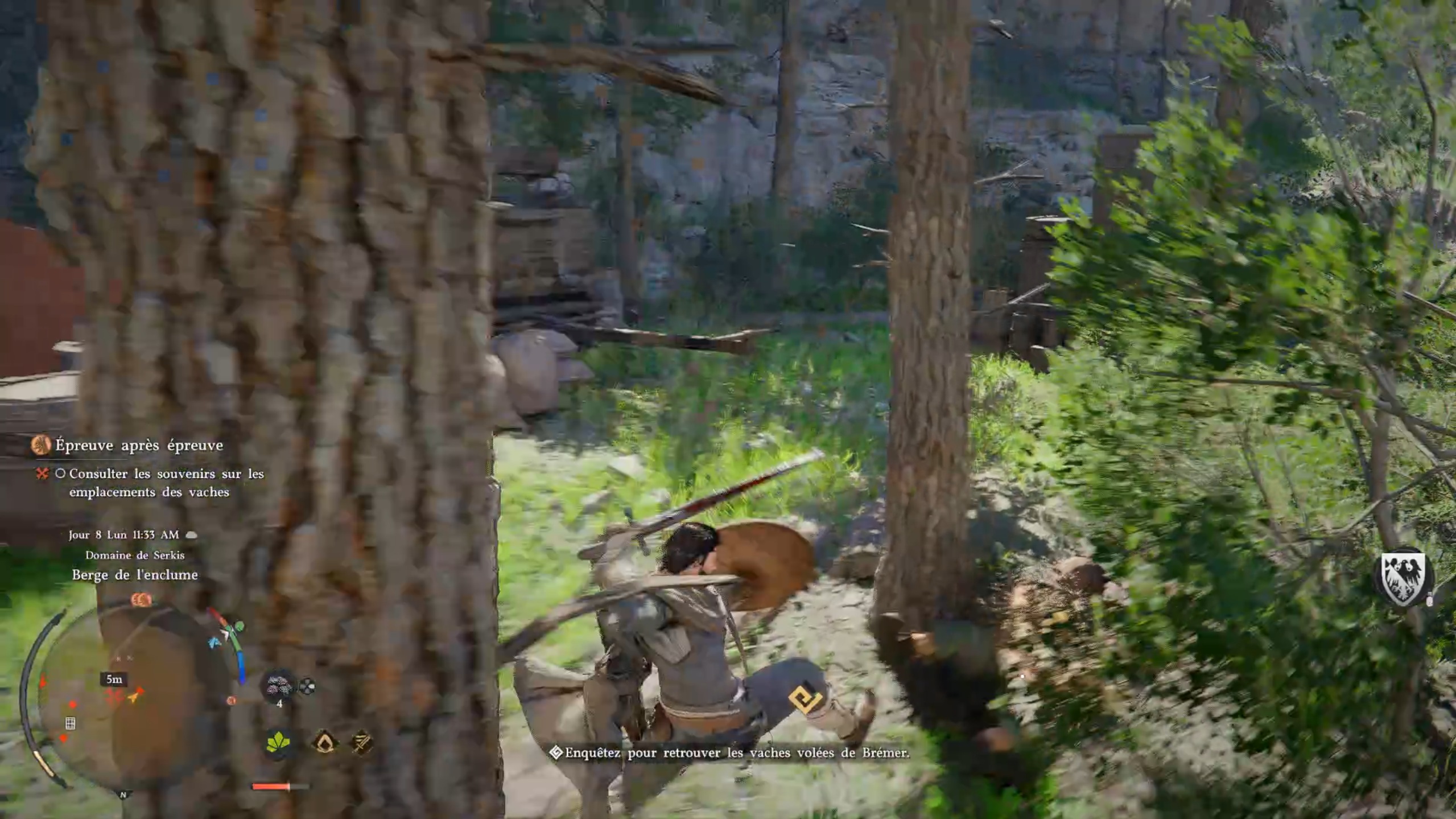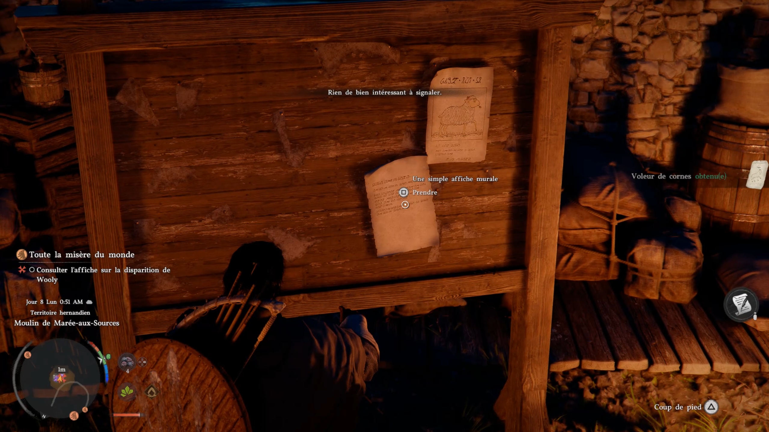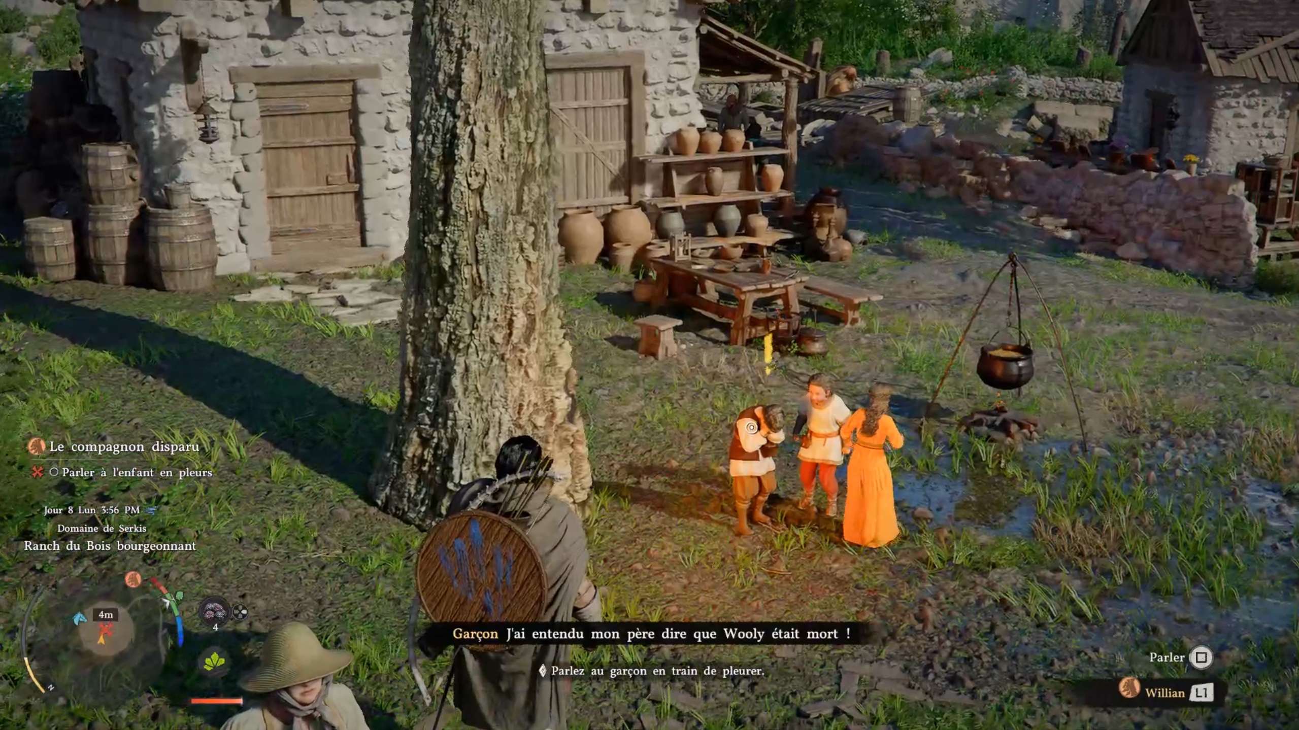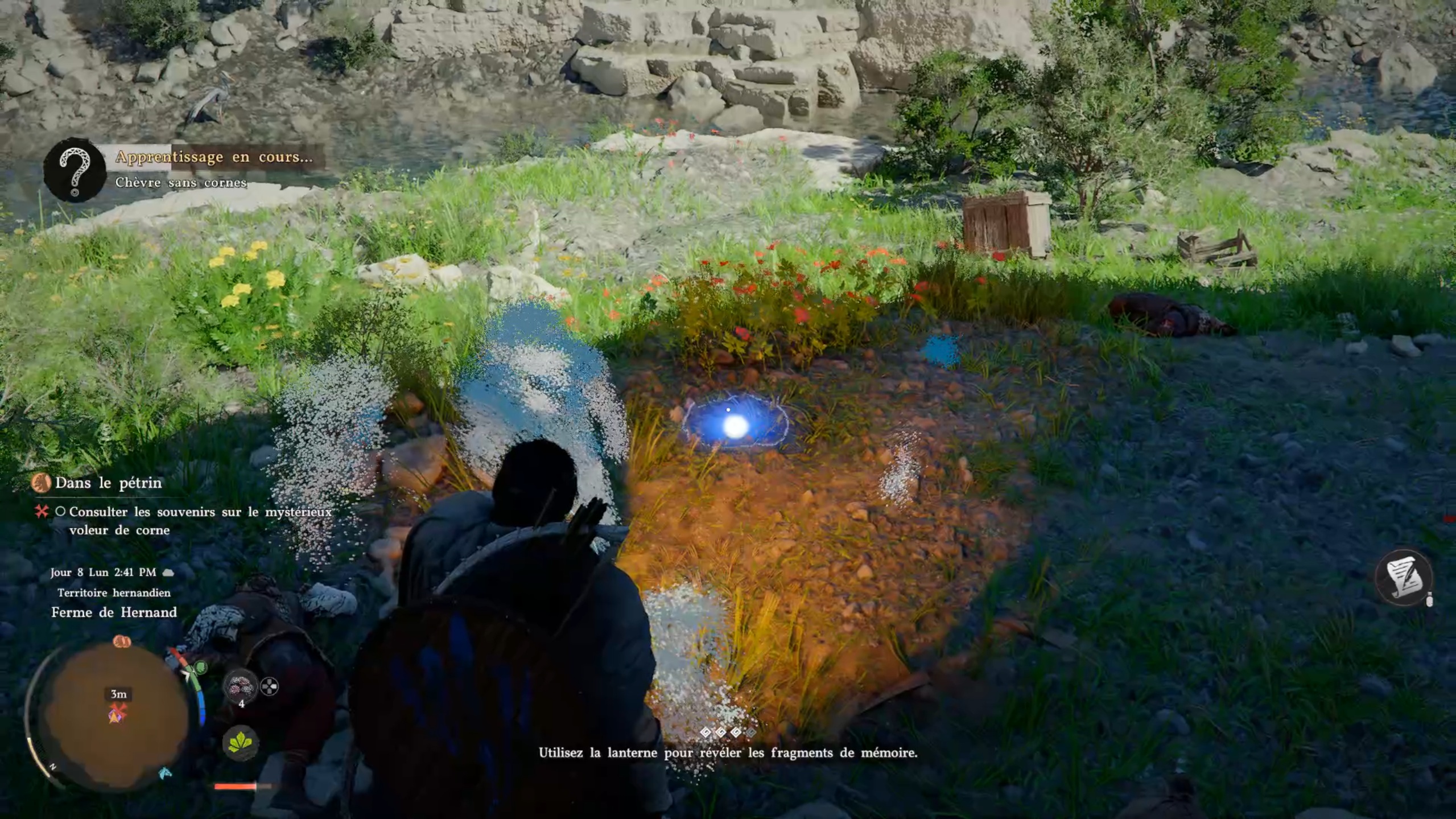 Rejoignez le marqueur pour rencontrer un enfant. Vous obtenez alors la mission de retrouver un mouton. Parlez aux témoins à proximité pour obtenir une zone à investiguer. Sur place, éliminez les menaces, puis interagissez avec le mouton dans l’enclos. Ramenez l’animal à l’enfant pour terminer la quête.