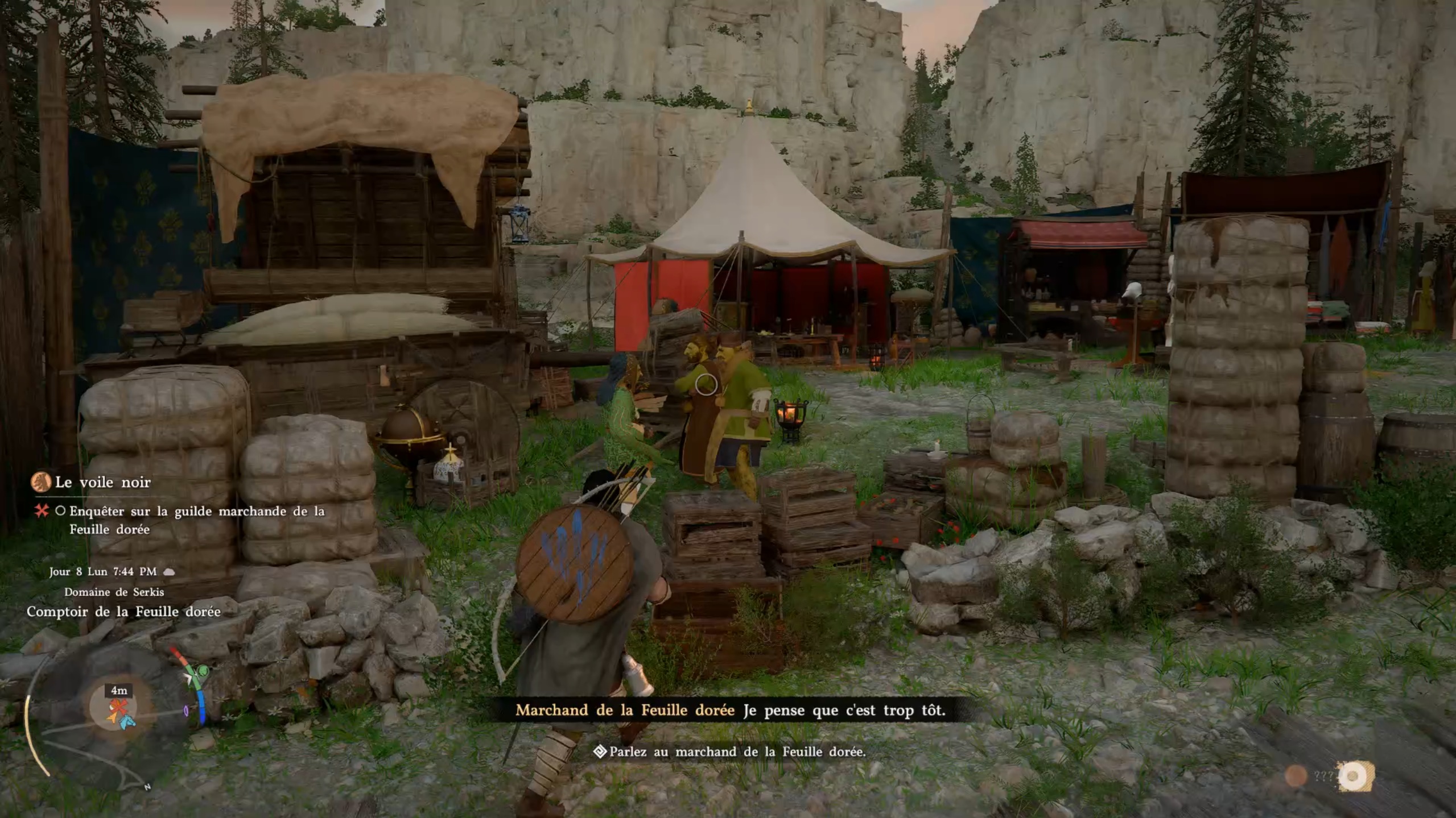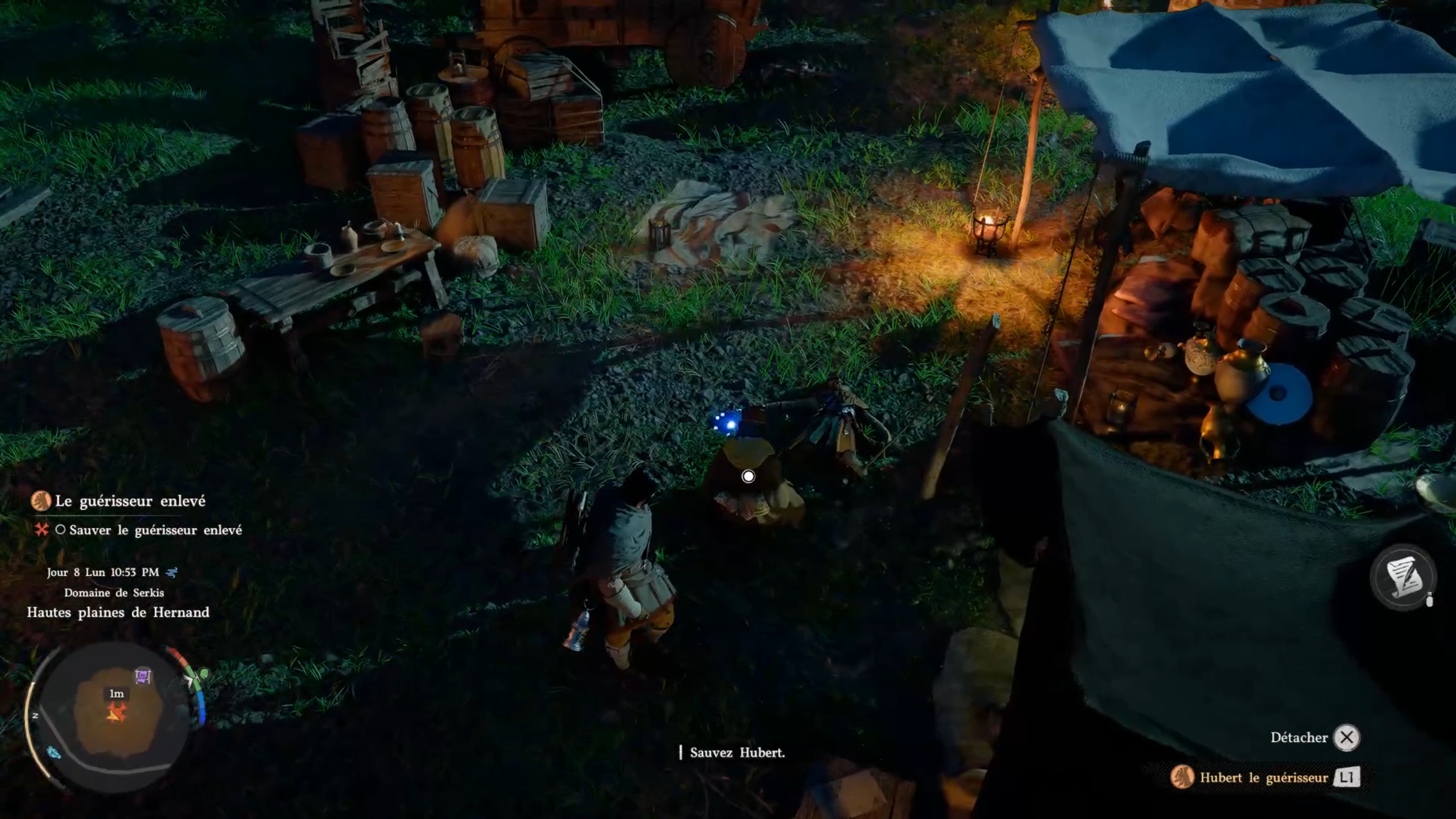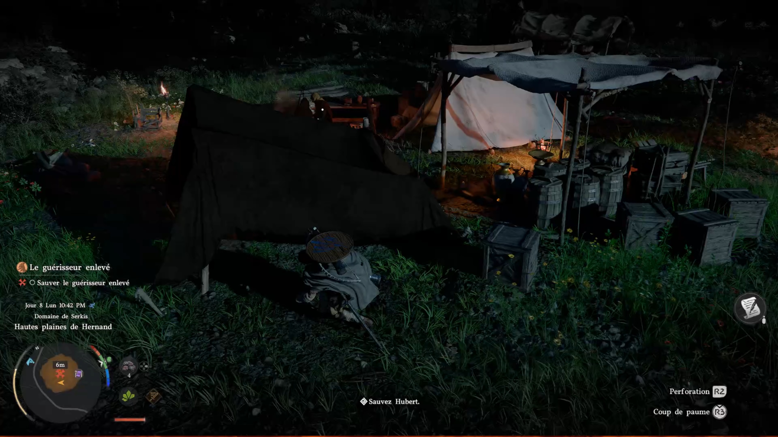 Dans cette nouvelle quête rejoignez la position marqué sur votre carte pour trouver un camp. Sur place éliminez les menaces puis libérer Hubert pour finir la quête.