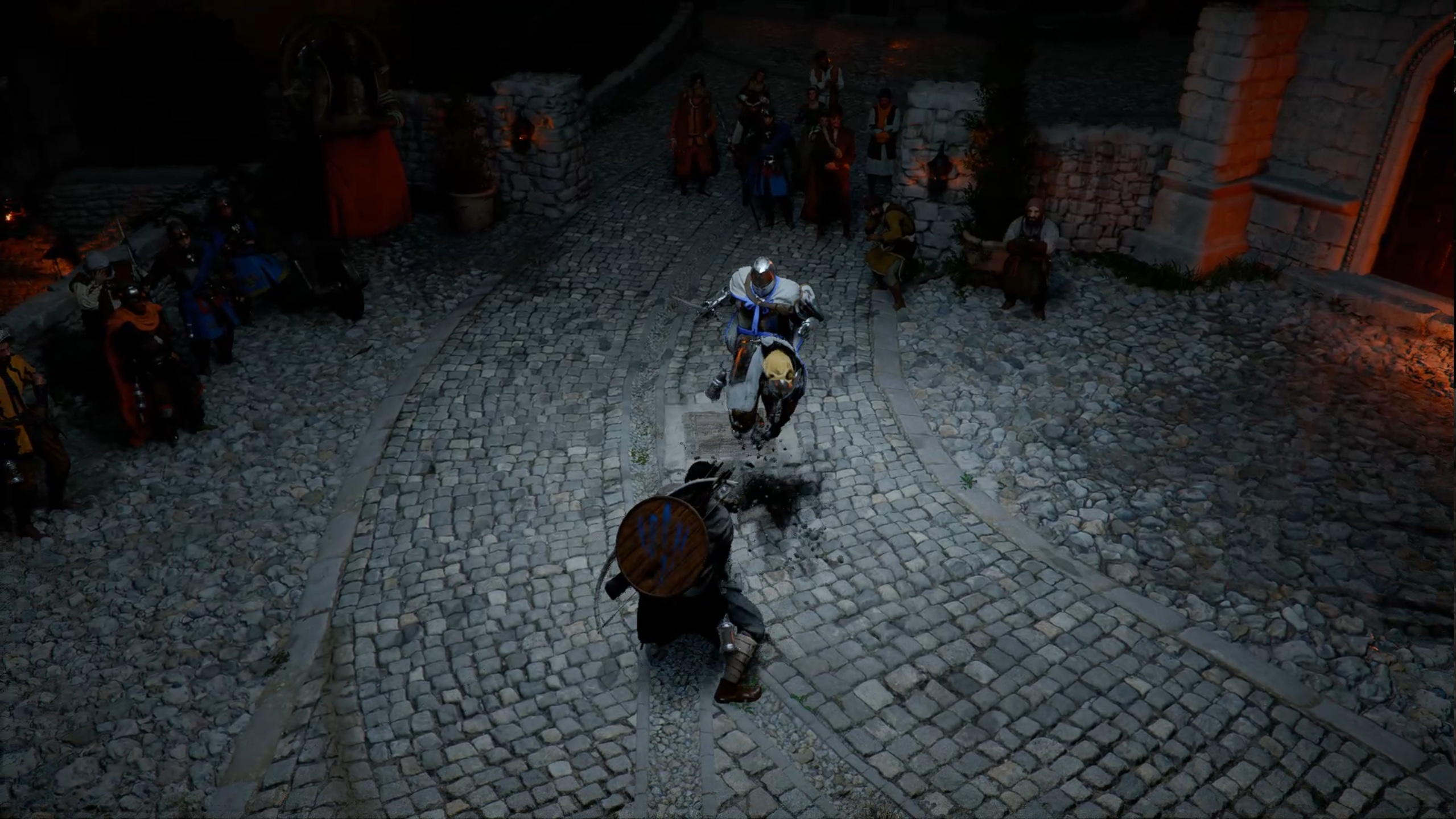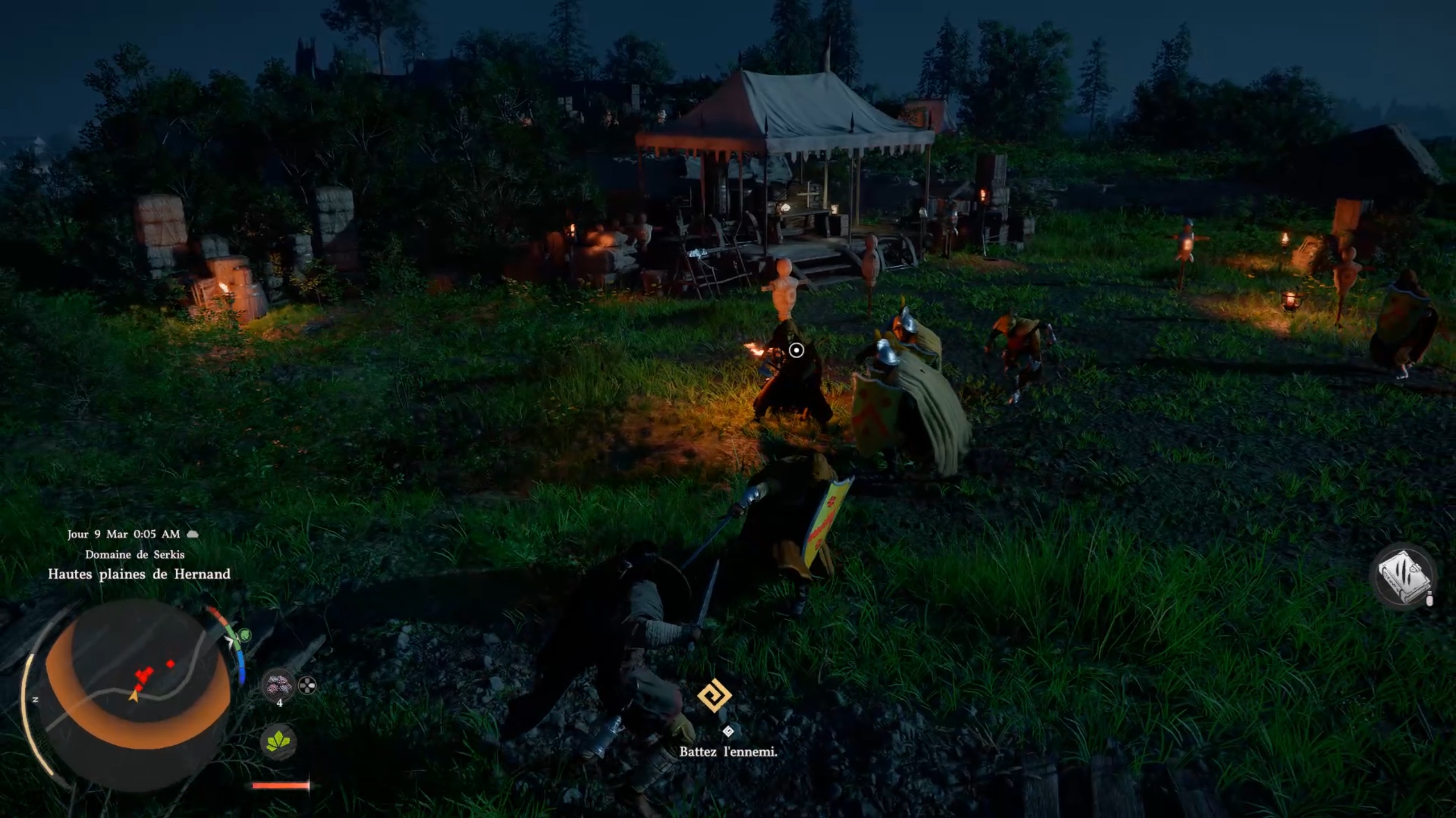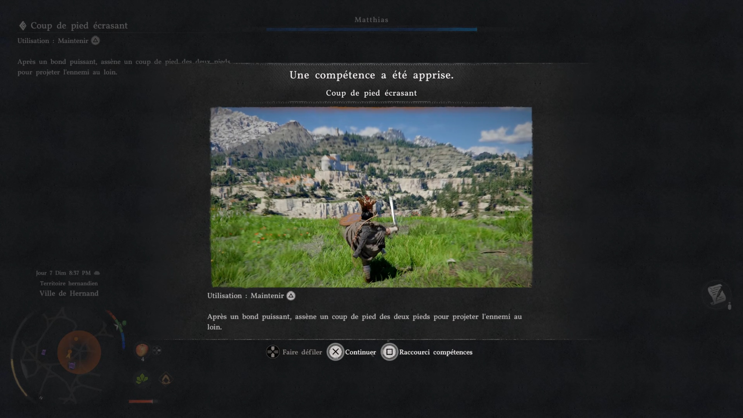 Rejoignez ensuite la place de Hernand pour retrouver un groupe et déclencher votre premier combat de boss. Lors de cet affrontement, vous affrontez Mathias. Utilisez à bon escient le coup de pied écrasant pour projeter Mathias et le rendre vulnérable. Privilégiez ensuite les attaques lourdes pour le frapper. Vous devriez facilement parvenir à le vaincre.